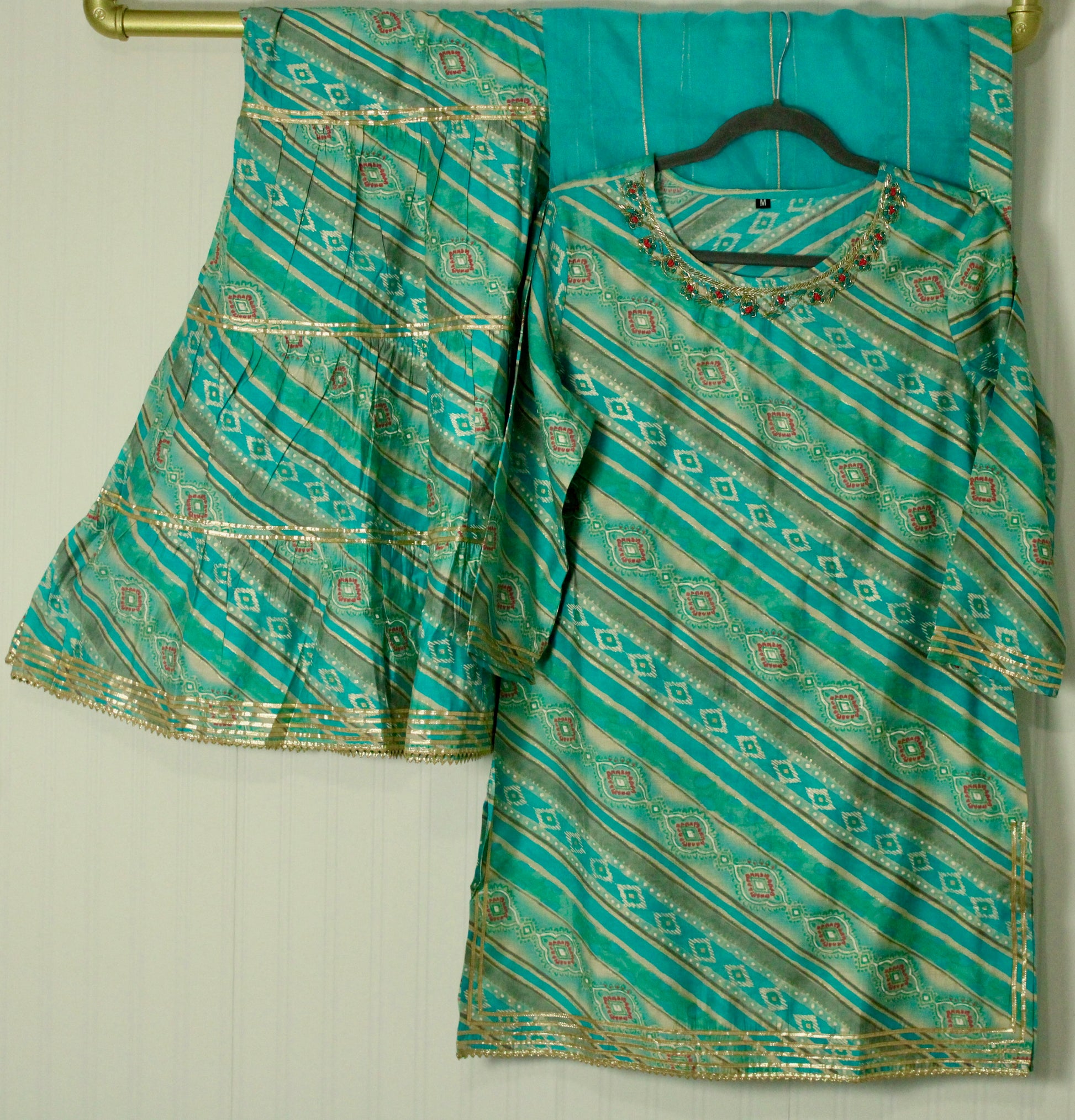 - Trousers: Muslin Gold Printed Gota Work