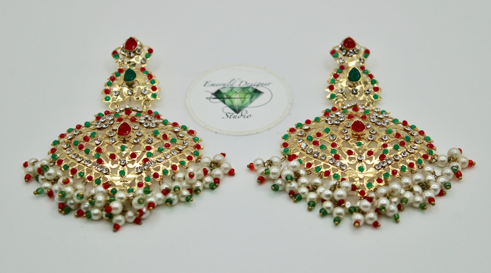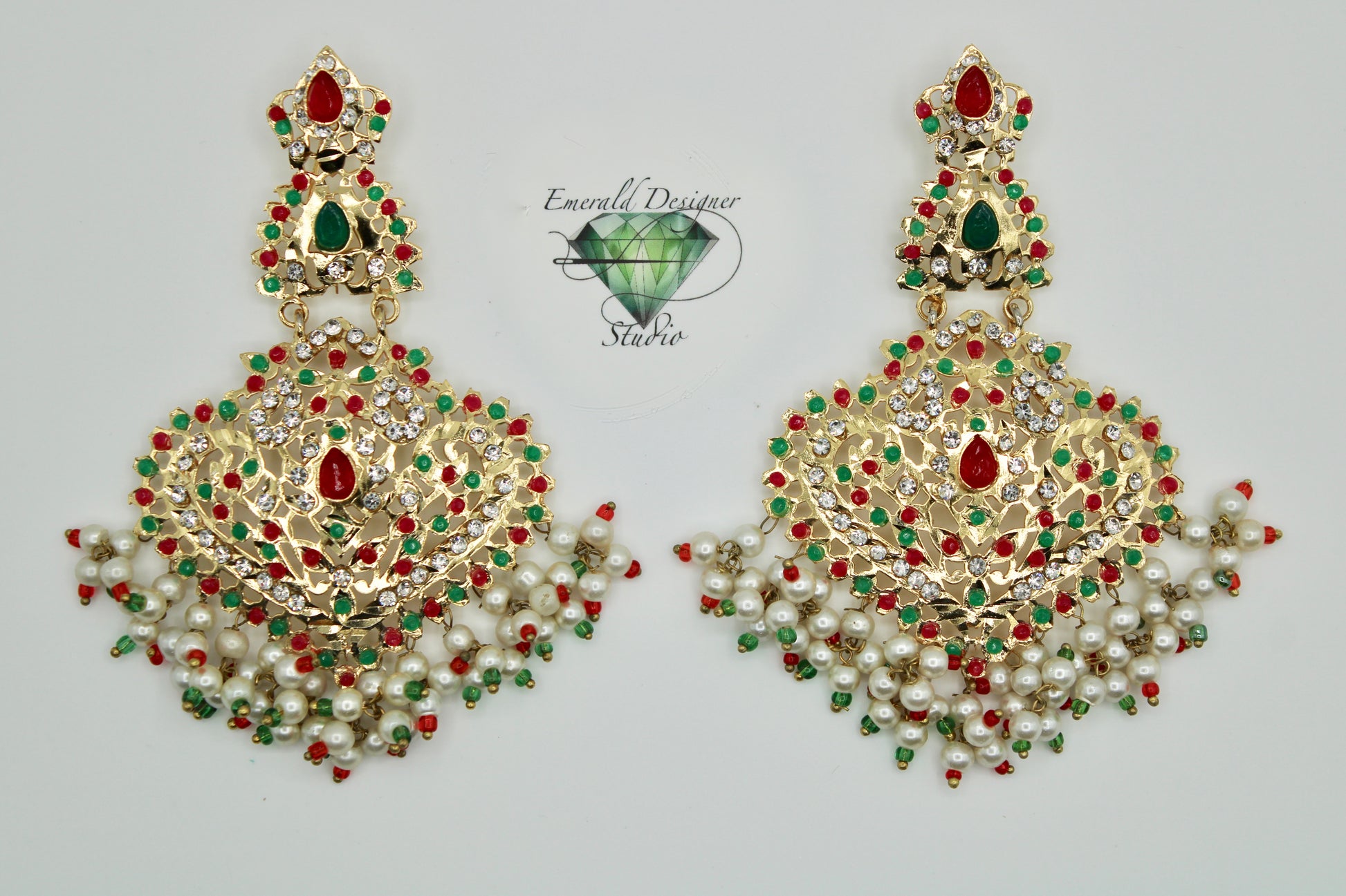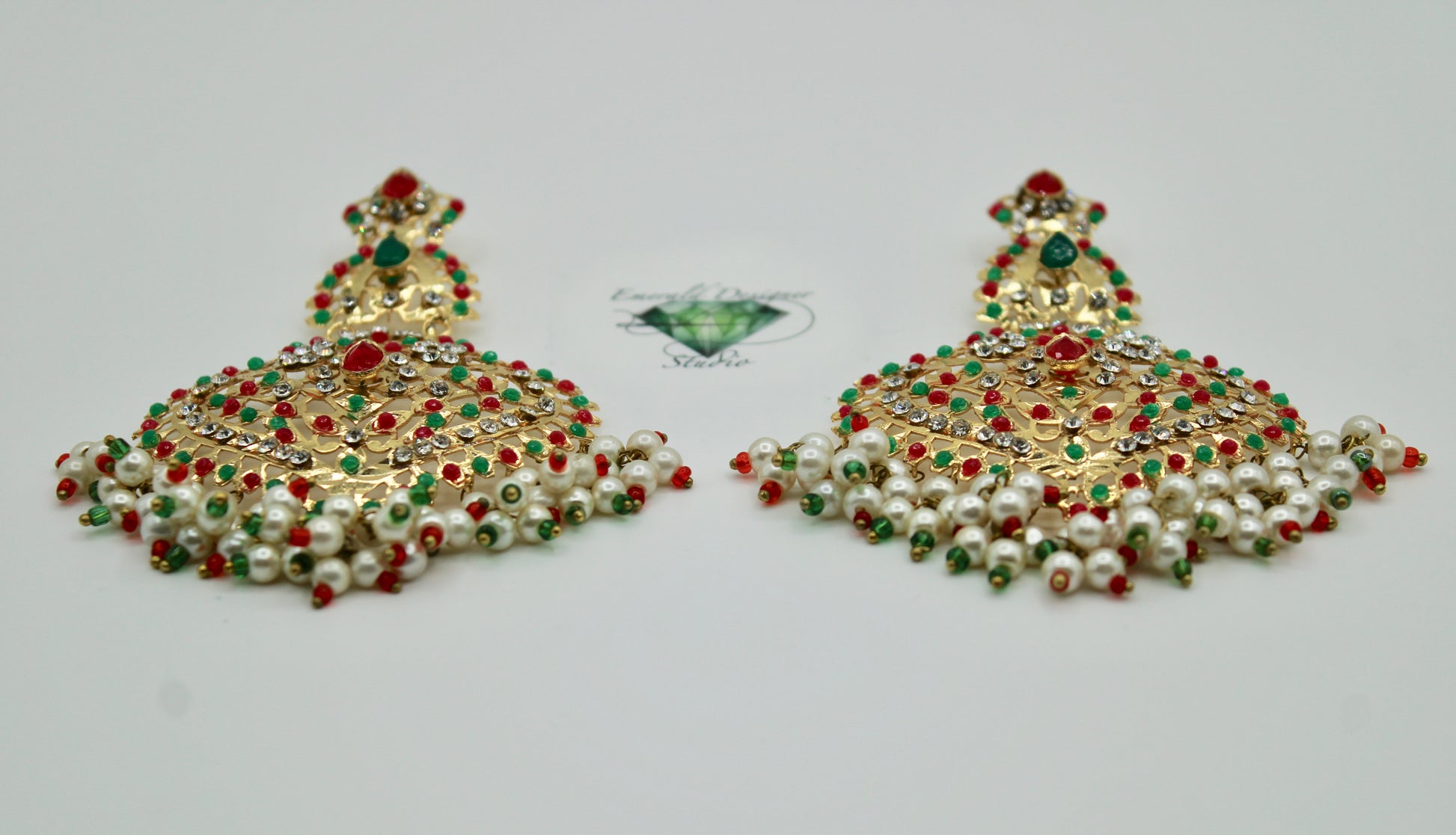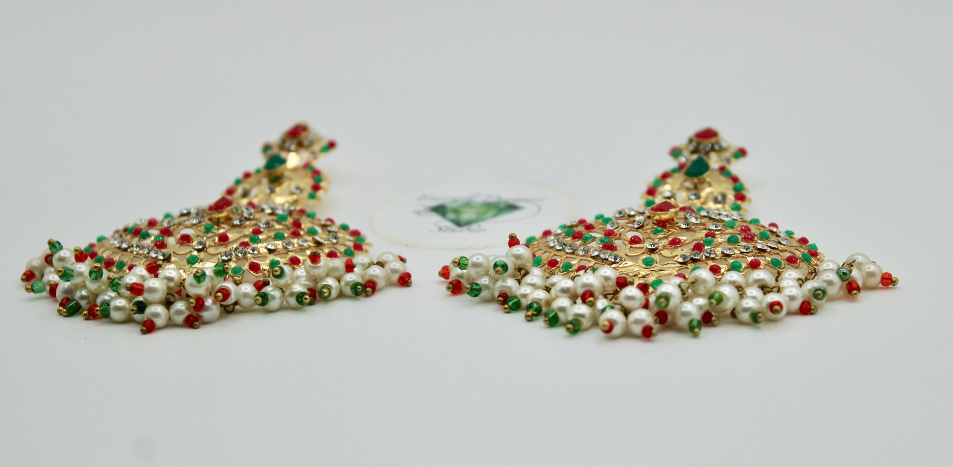 These gorgeous Hyderabadi earrings are complete with nauratan stone detailing throughout. They are the perfect accessory to dress up any look!