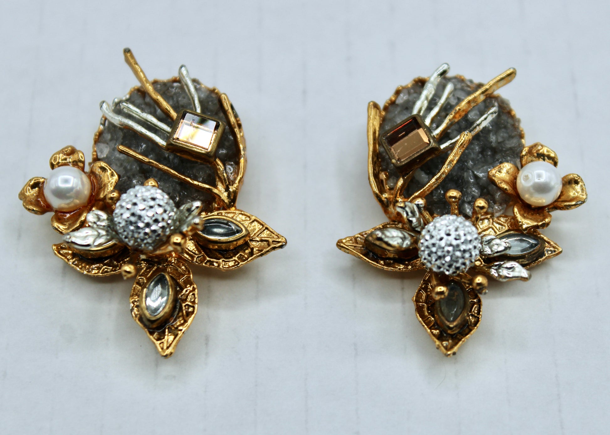 These unique Turkish crushed stone earrings are handmade and complete with floral accents and gold appliqué detailing throughout. They are suitable for all ages and can be easily paired with both Eastern and Western looks.