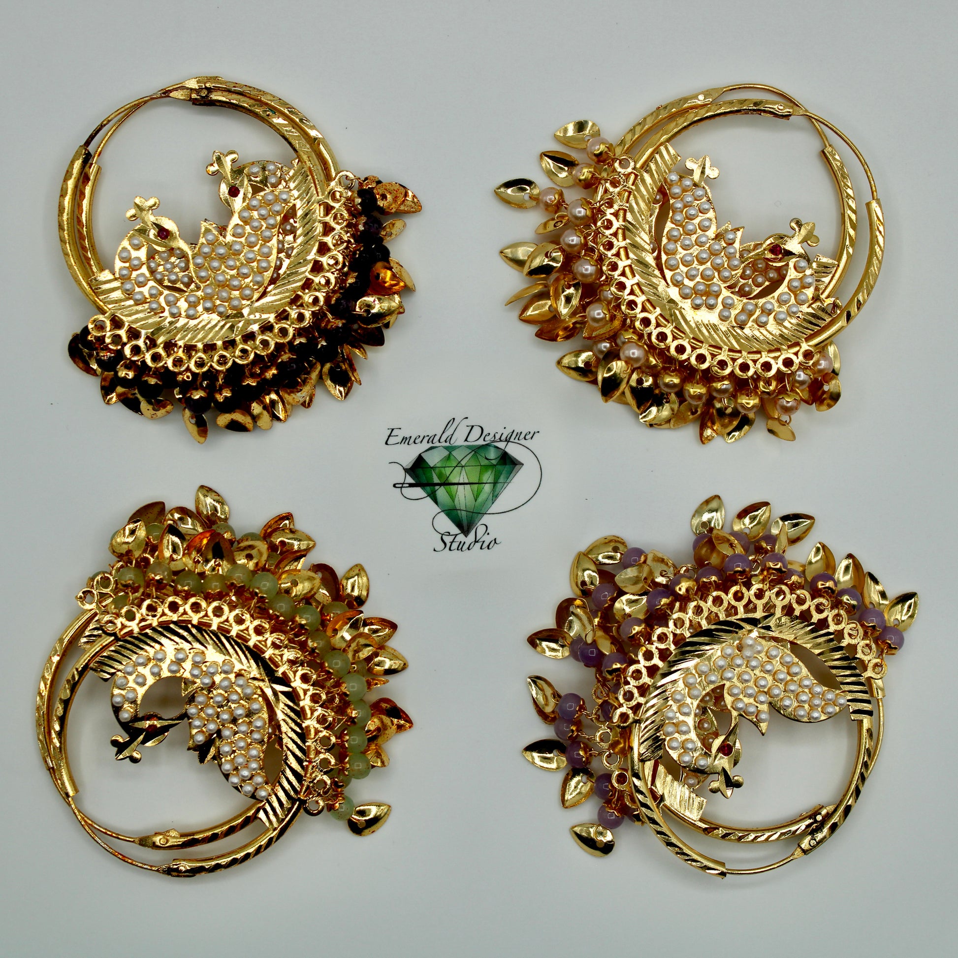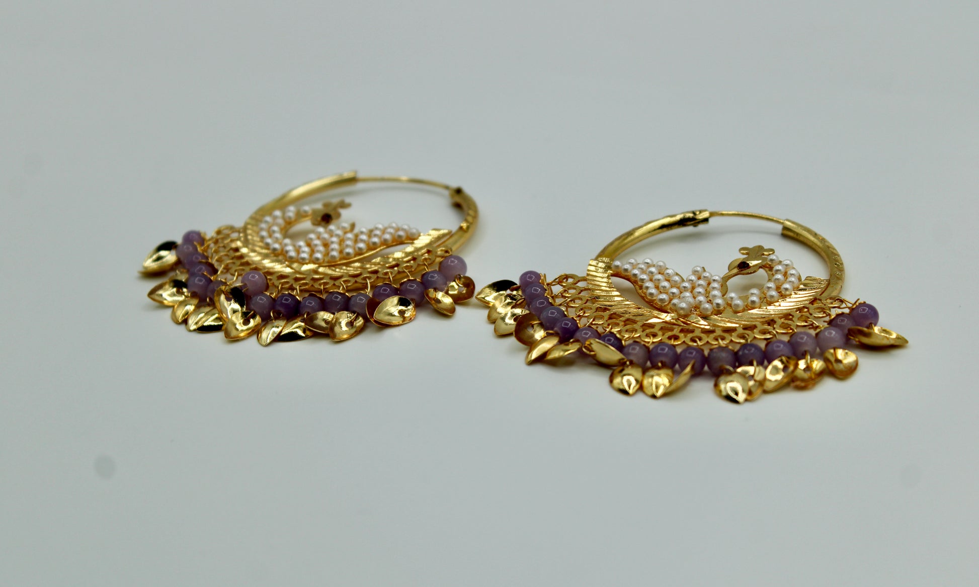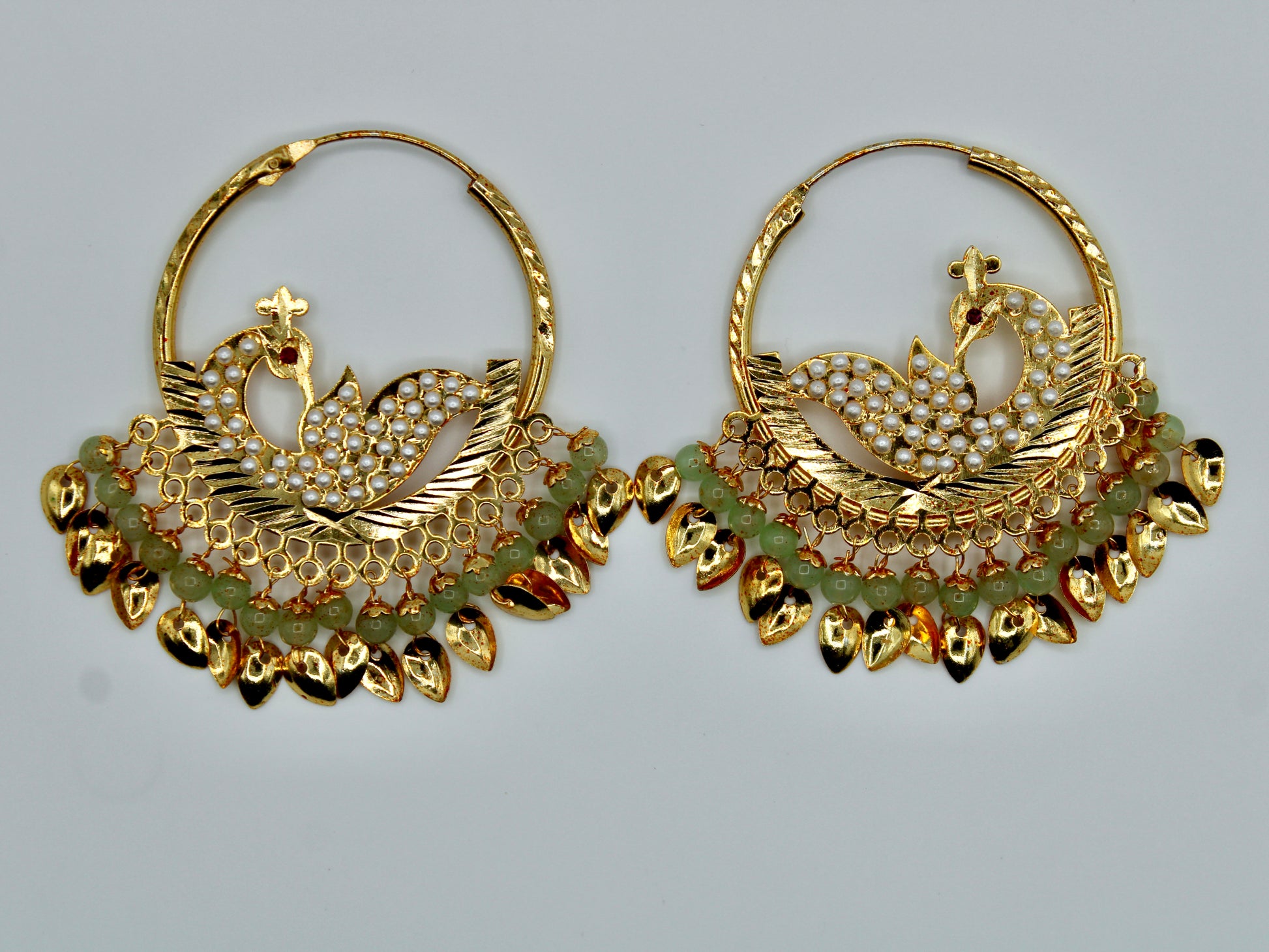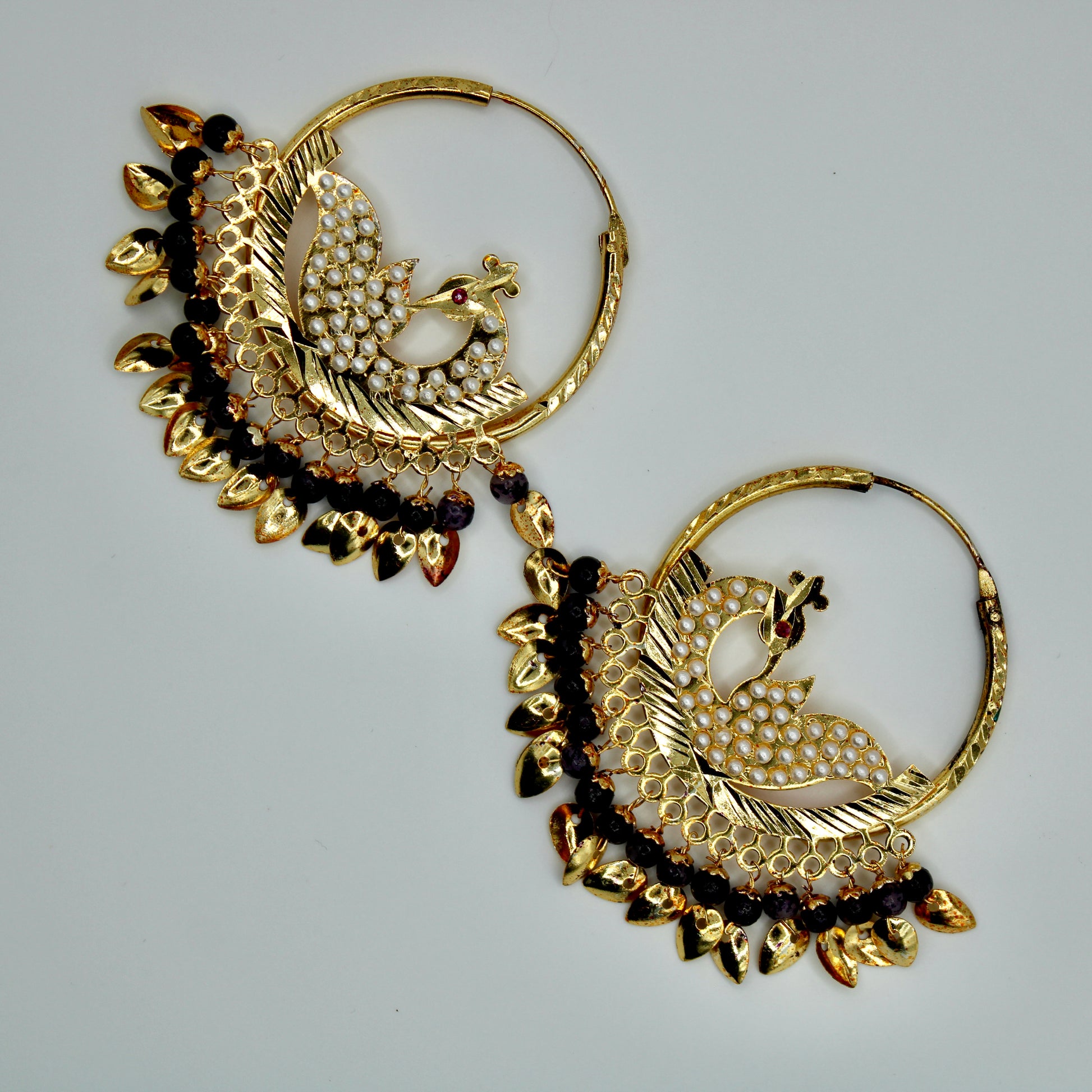 These dainty baali earrings are light-weight and complete with faux pearl detailing on intricate patterns, along with crystals and golden appliqués. They are suitable for all ages and occasions.