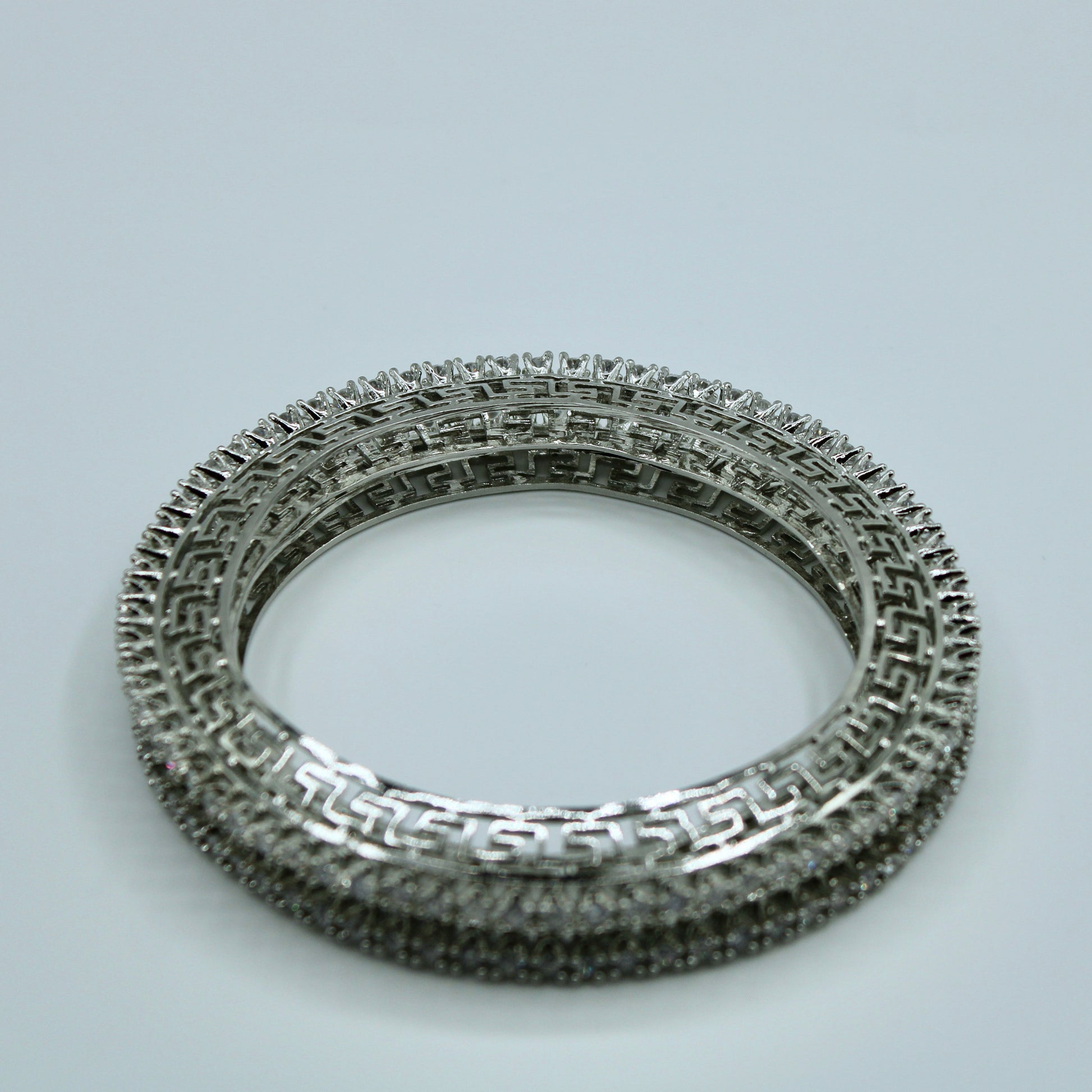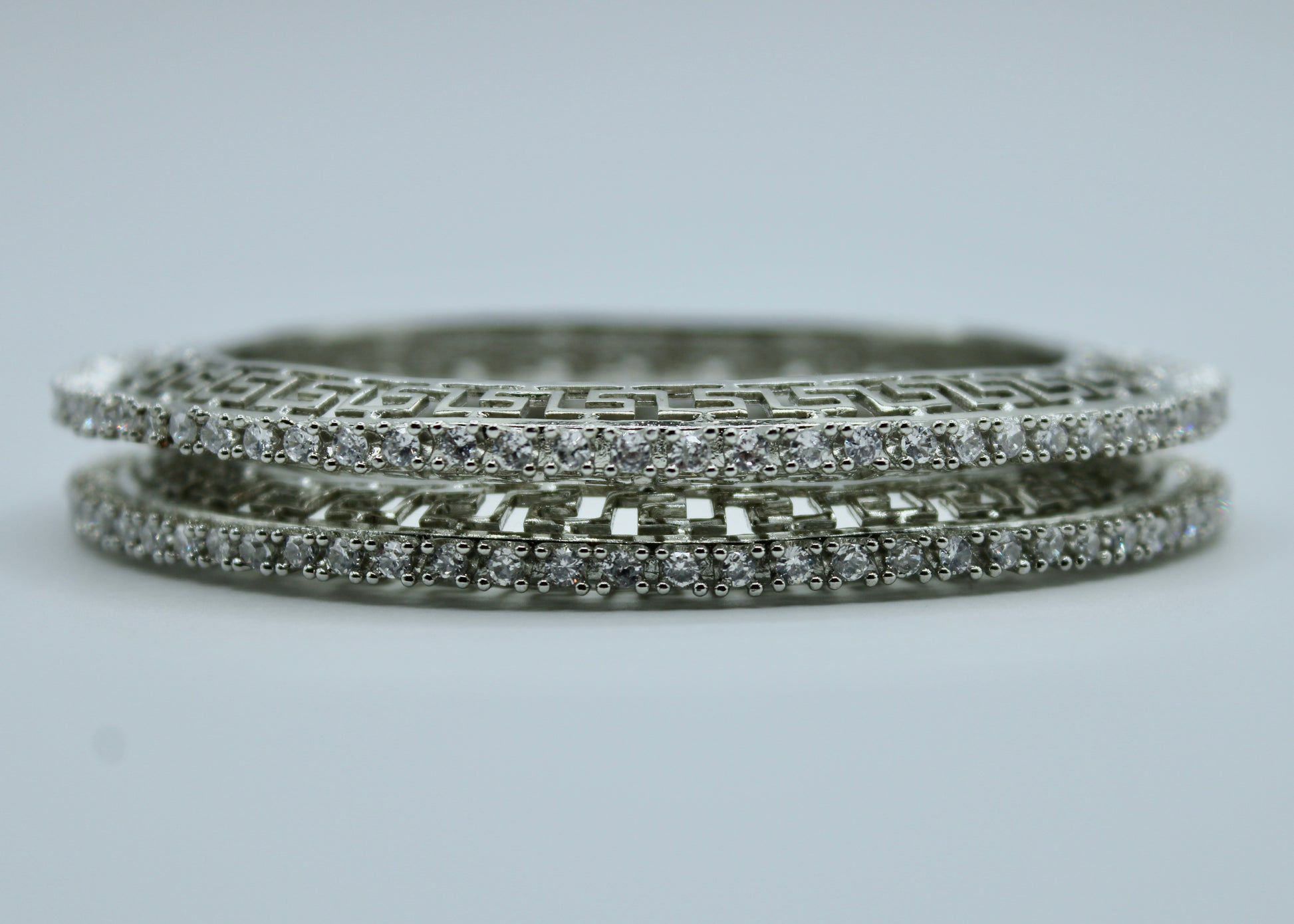 This dazzling bangle set is studded with cubic zirconia throughout, it is suitable for all ages and occasions and can be paired with both Eastern and Western looks. This design is sold in pairs.