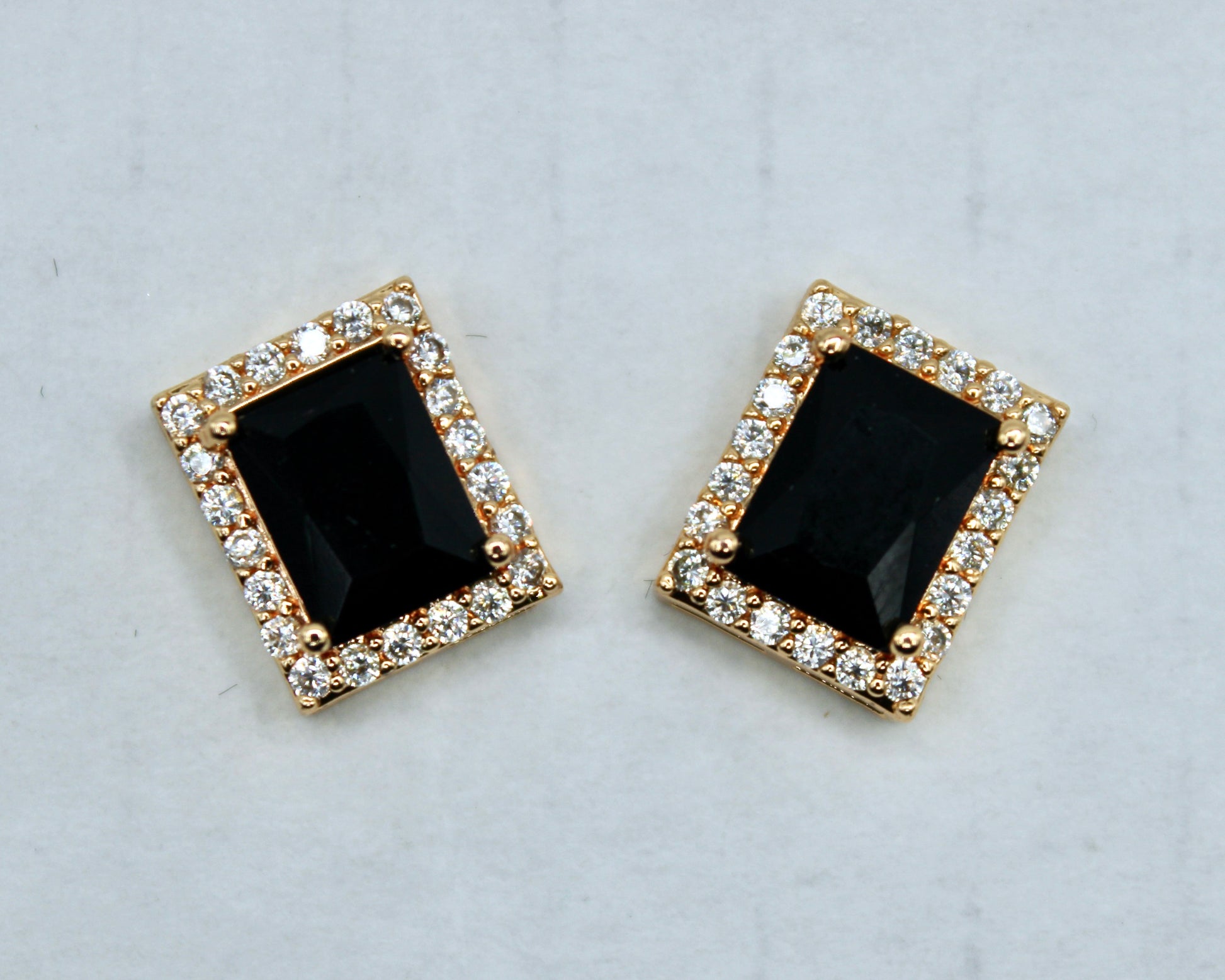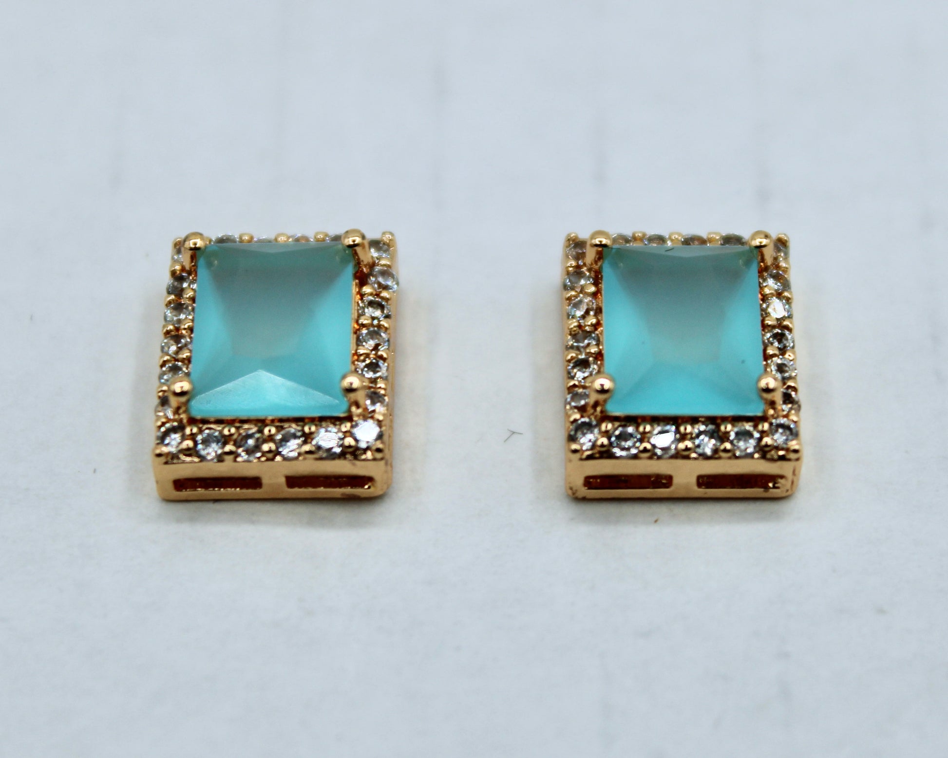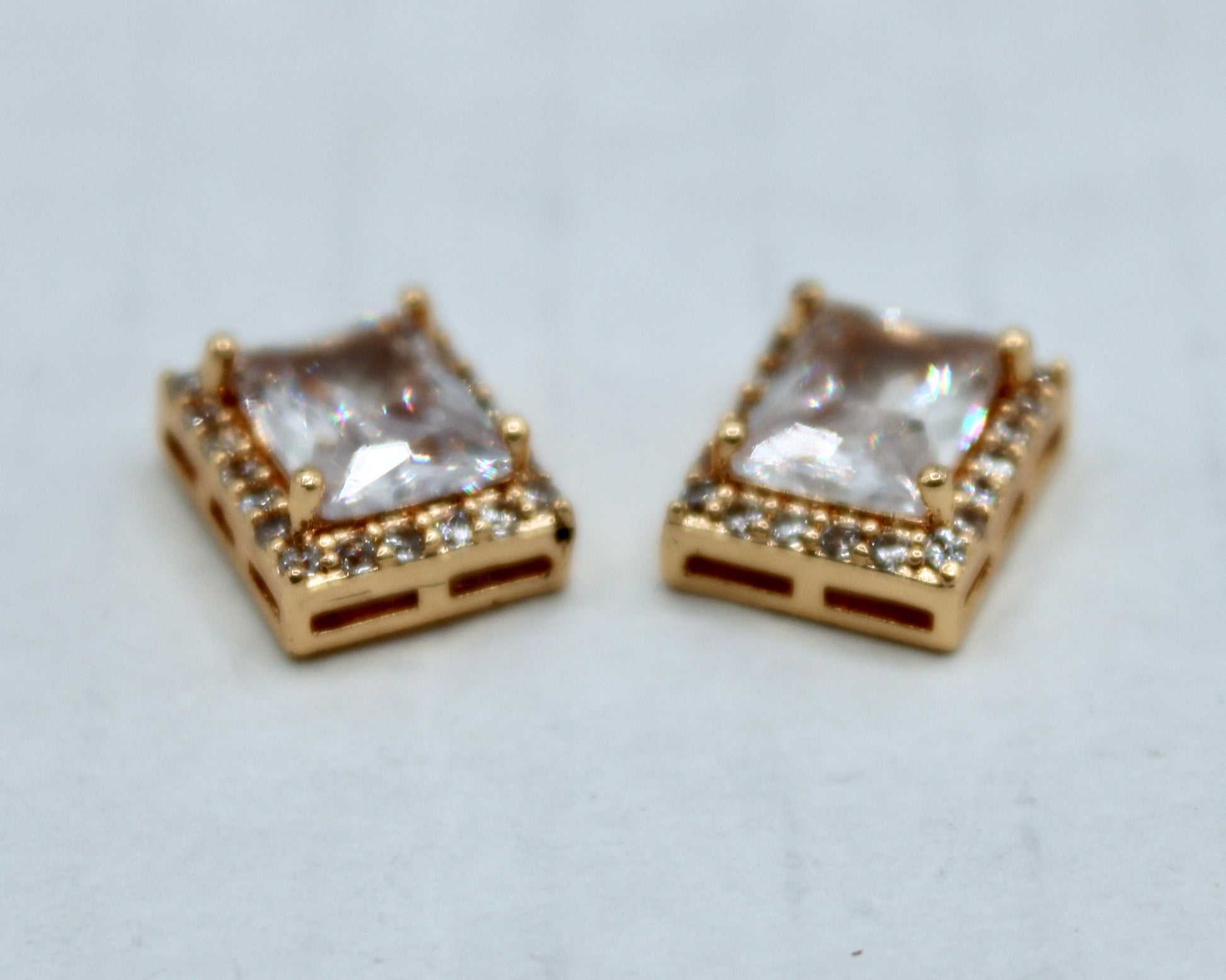 These elegant studs are studded with cubic zirconia stones around a centred princess-cut stone. They are suitable for all ages and occasions, and are available in four colours.