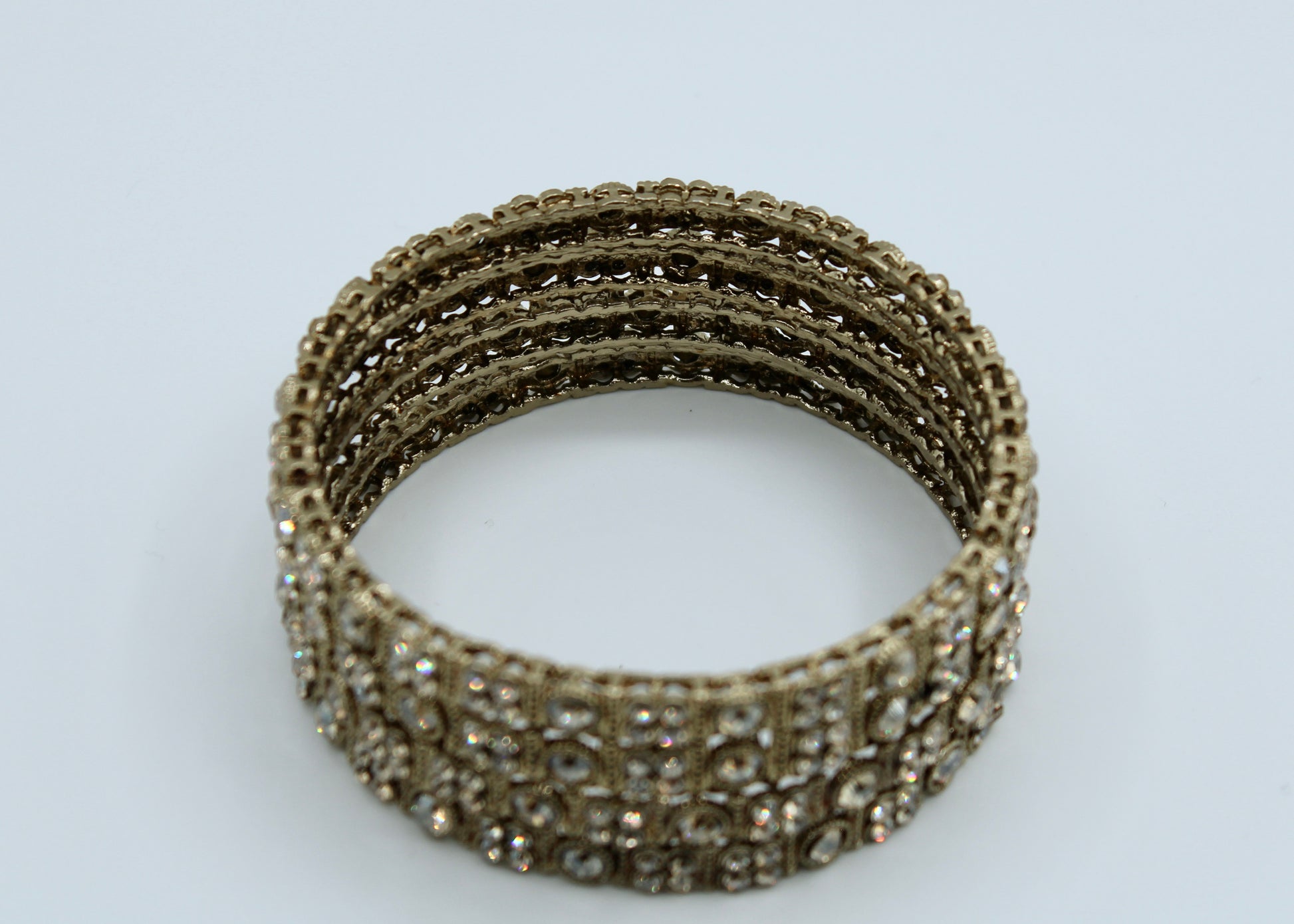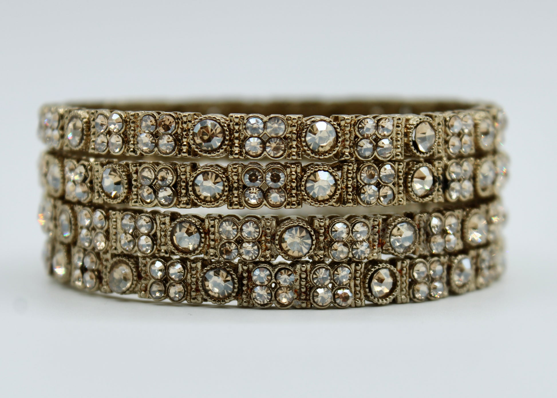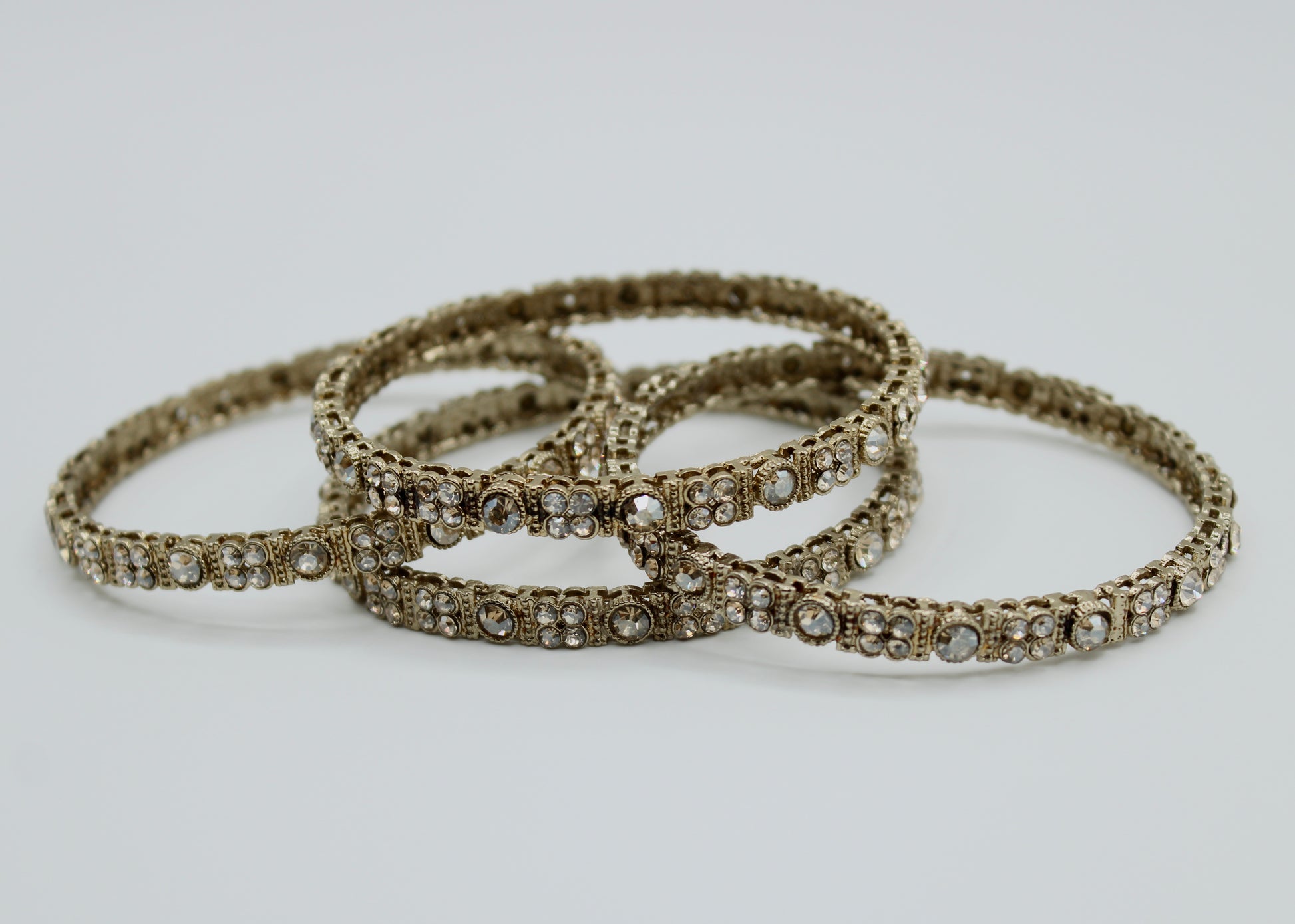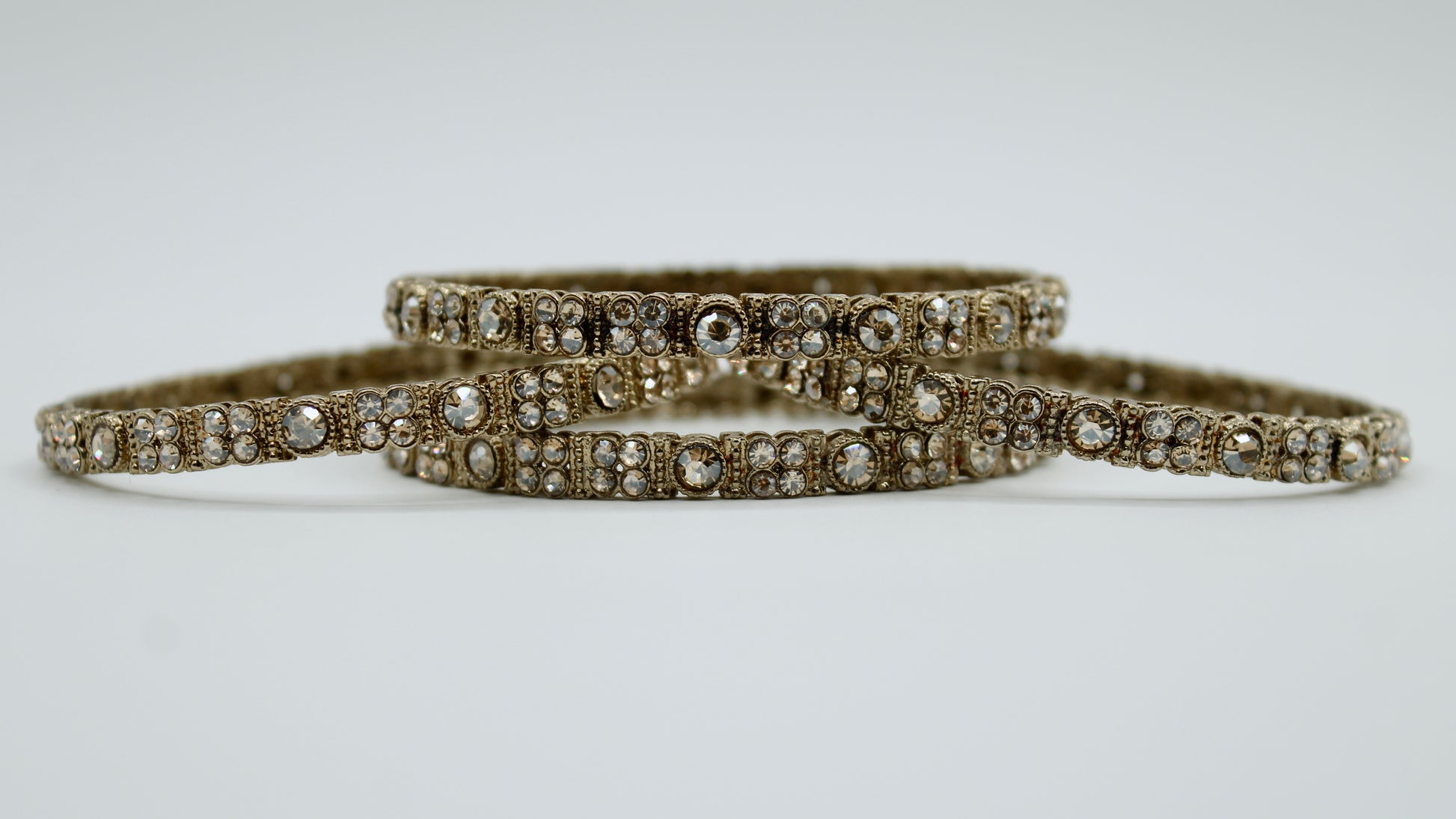 This traditional bangle set is complete with diamante and appliqué detailing throughout. This classy set can be paired with both Eastern and Western looks and is suitable for all ages. This design is sold in pairs.