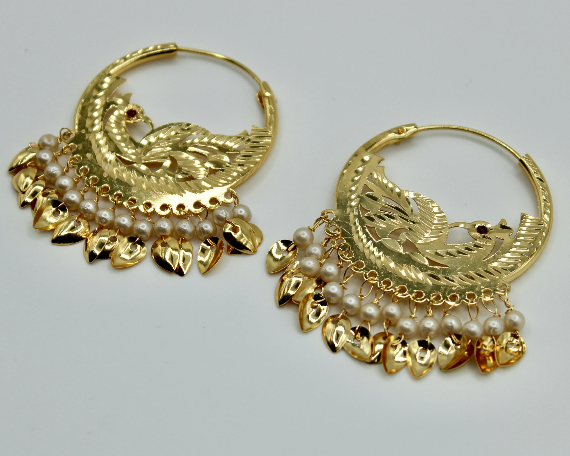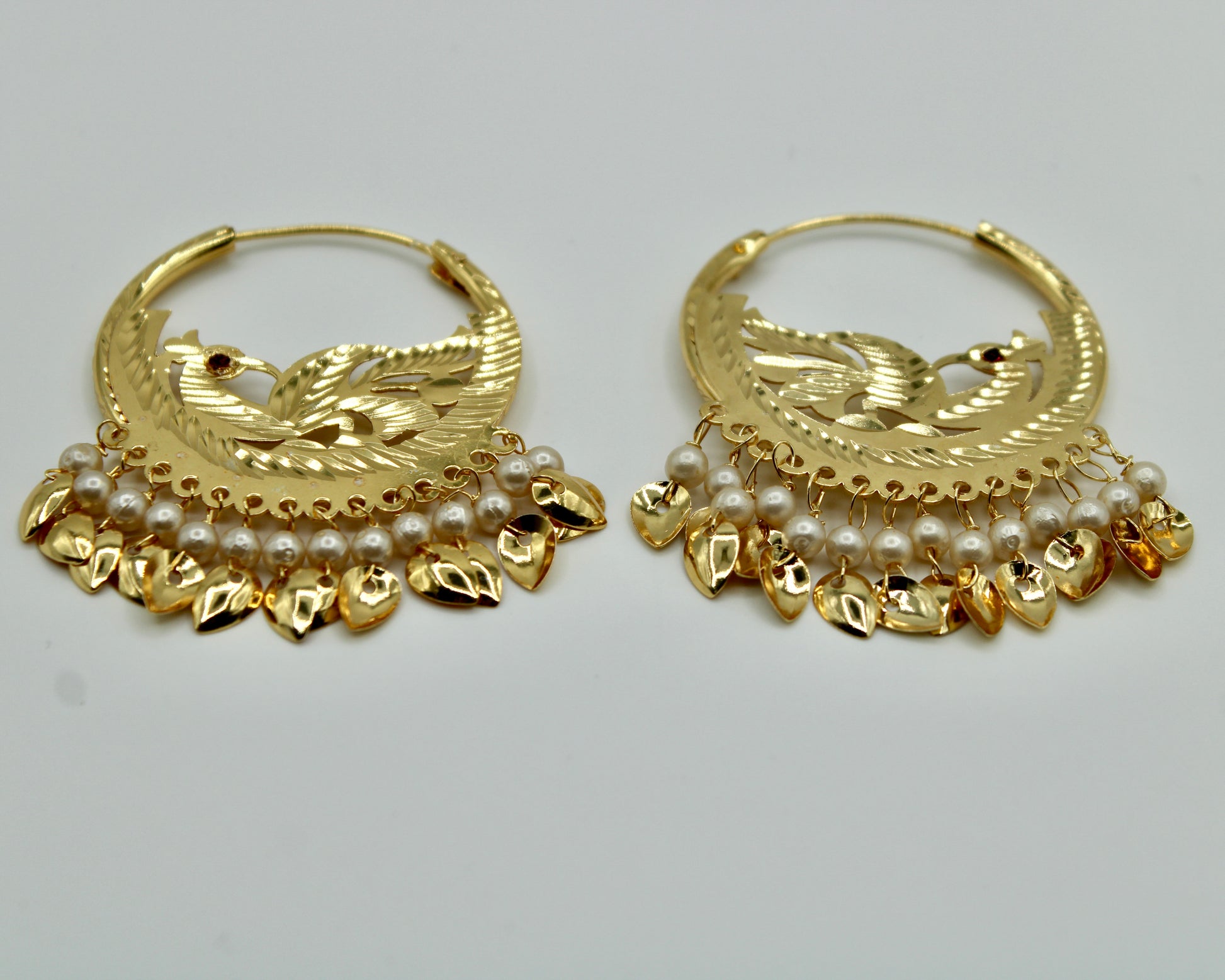 These beautiful baali earrings are light-weight and complete with faux pearl detailing on intricate patterns, along with golden appliqués. They are suitable for all ages and occasions.
