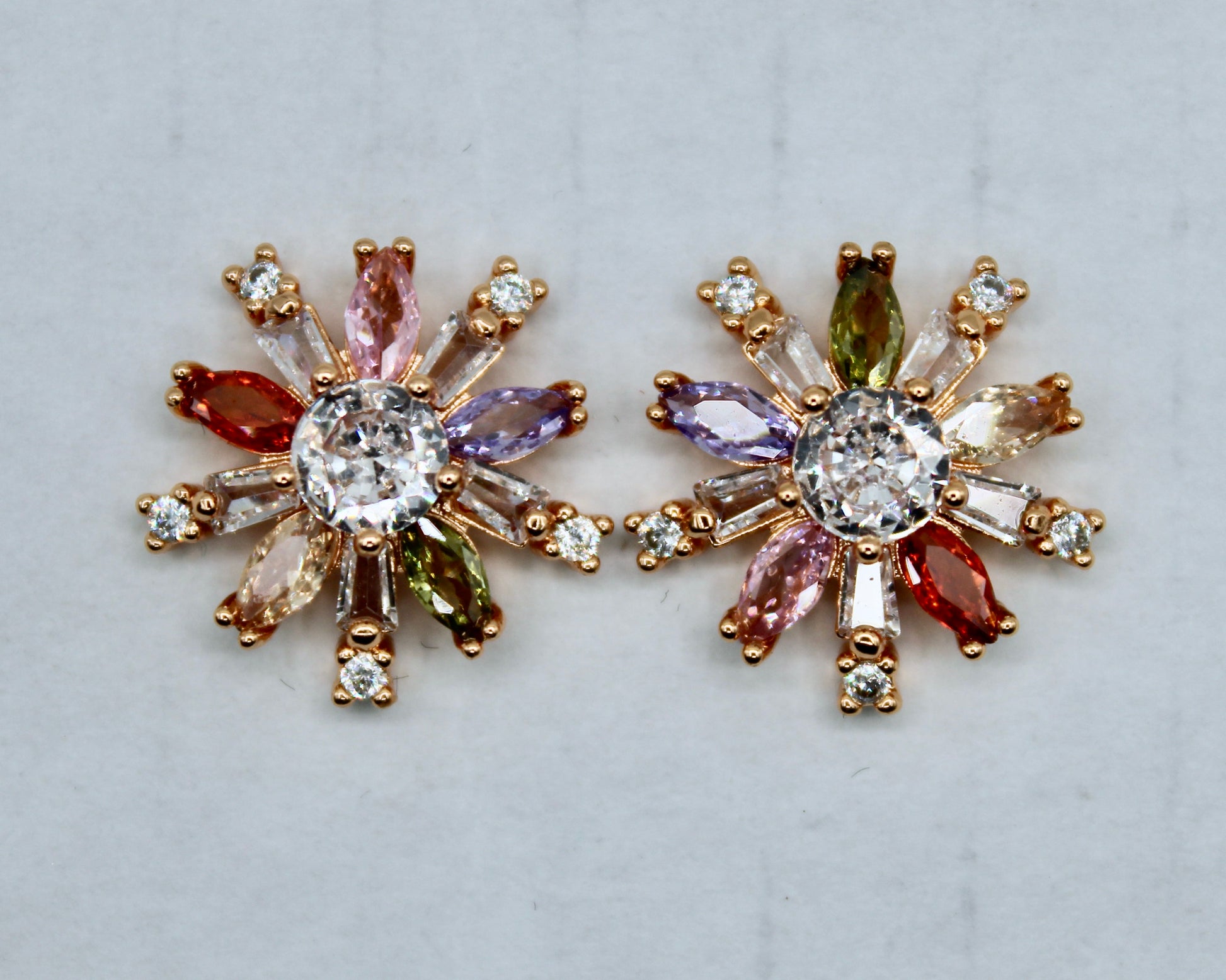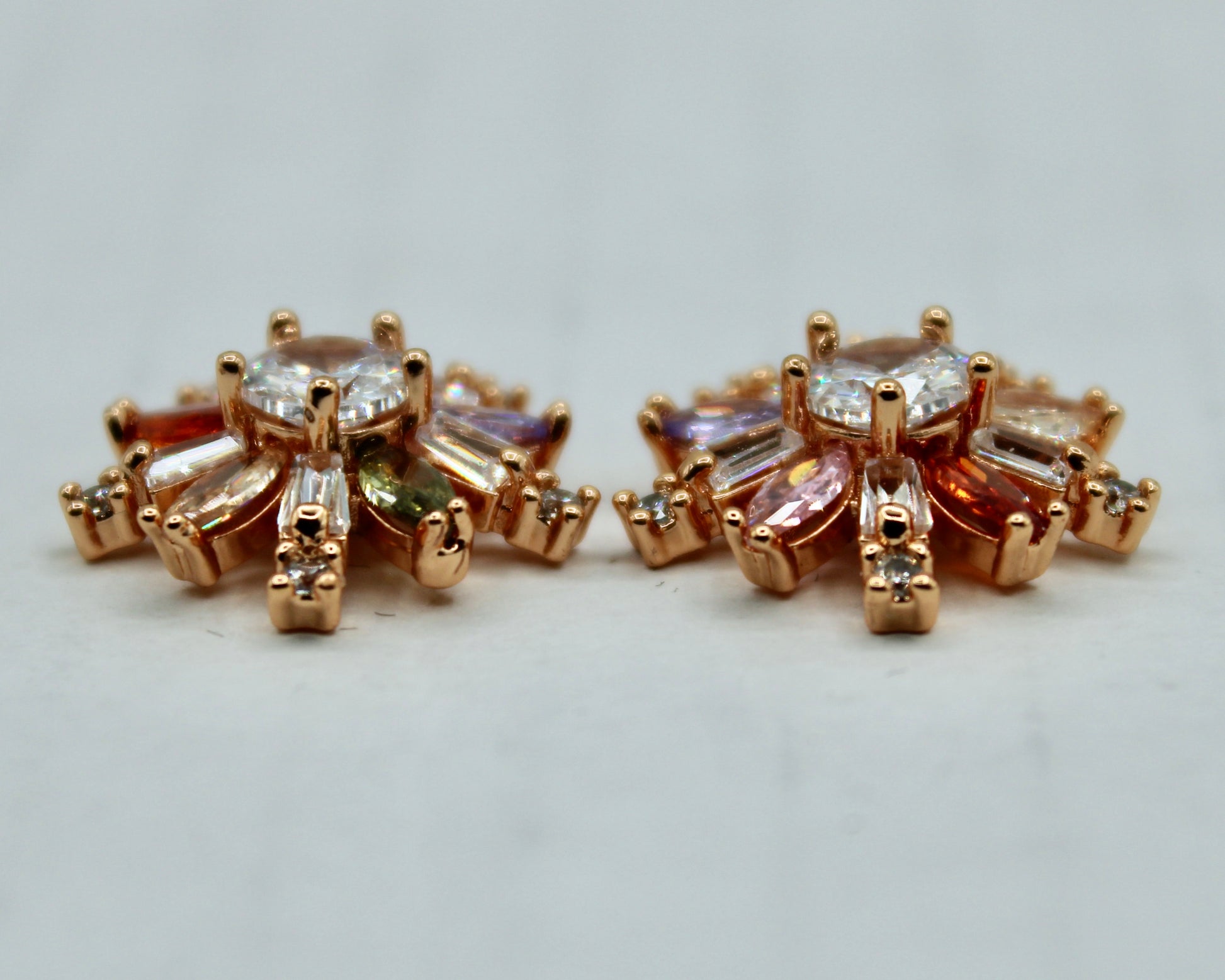 These classy floral studs are complete with multicoloured cubic zirconia stones. They are suitable for all ages and occasions.