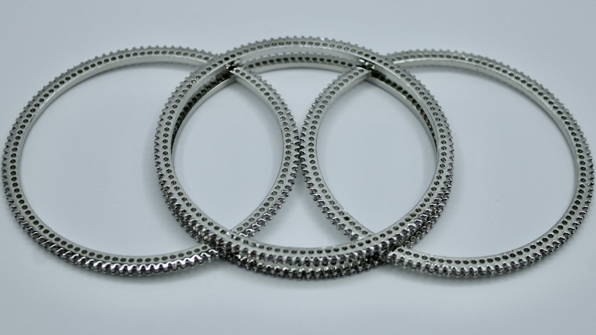 This timeless bangle set is complete with studded American Diamonds throughout and can be easily paired with both Eastern and Western looks. This design is sold in sets of four.