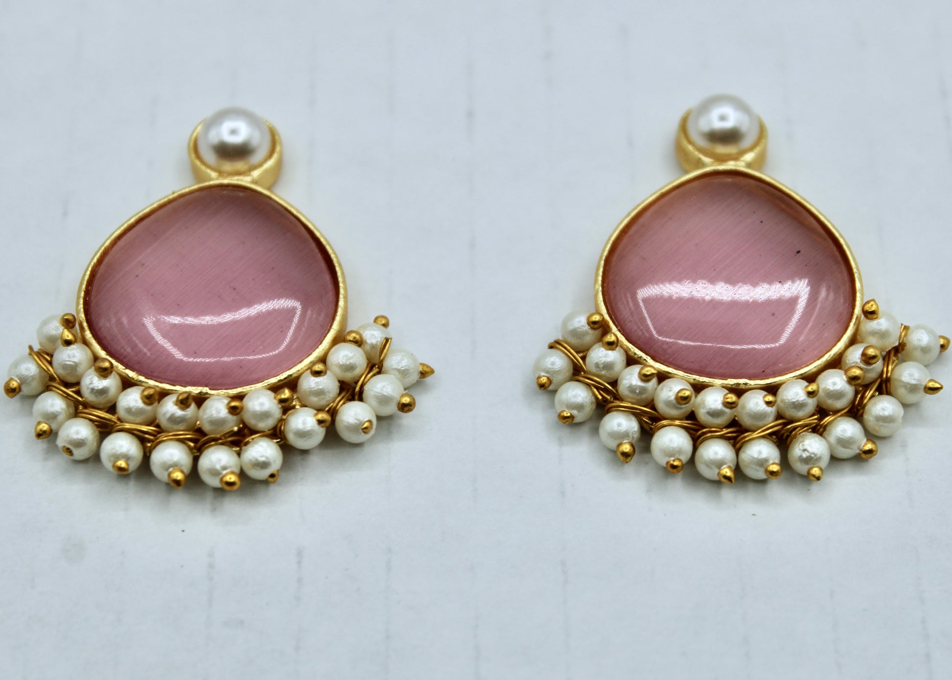 These traditional faux pearl studs are complete with a centred acrylic stone with gajra detailing. They are suitable for all ages and occasions, and are available in three colours.