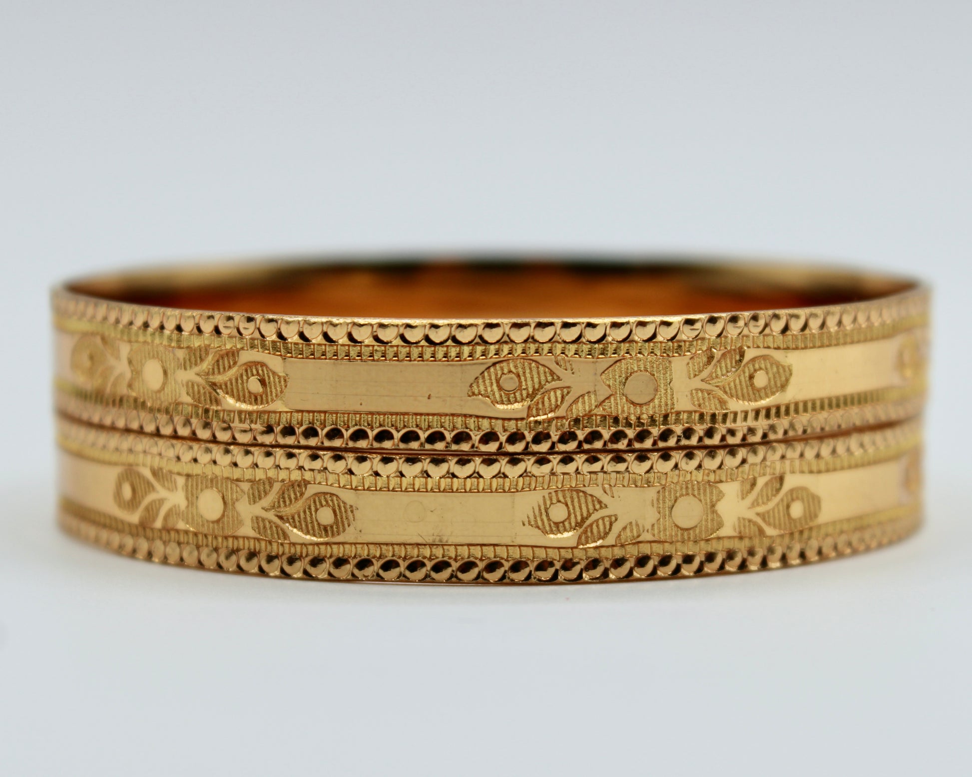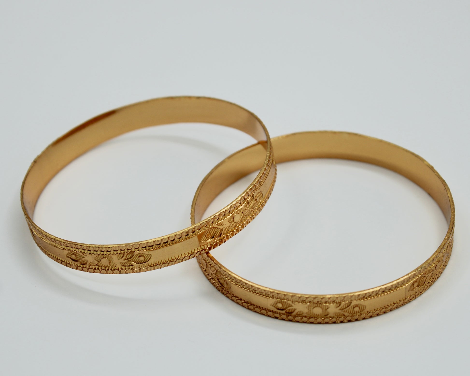 This traditional kada set is made to imitate gold. It can easily be paired with both Eastern and Western looks and is suitable for all ages. This design is sold in pairs.