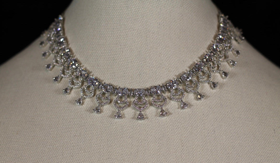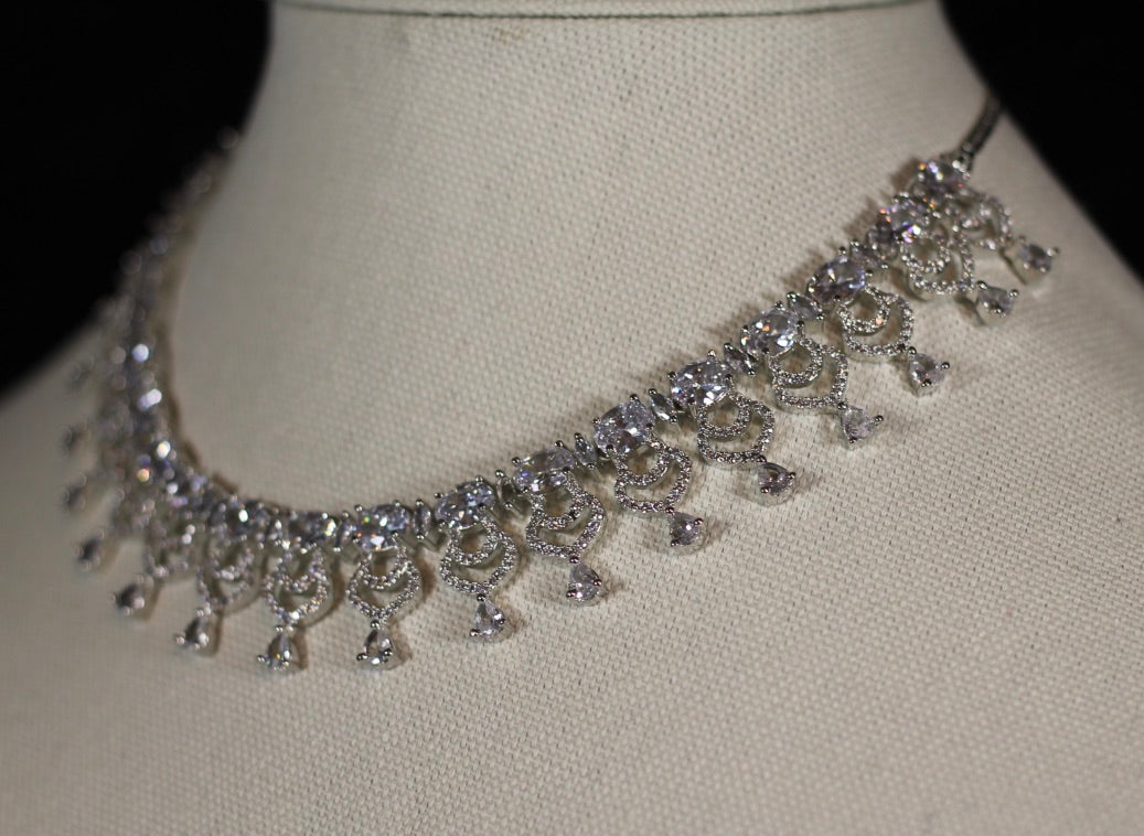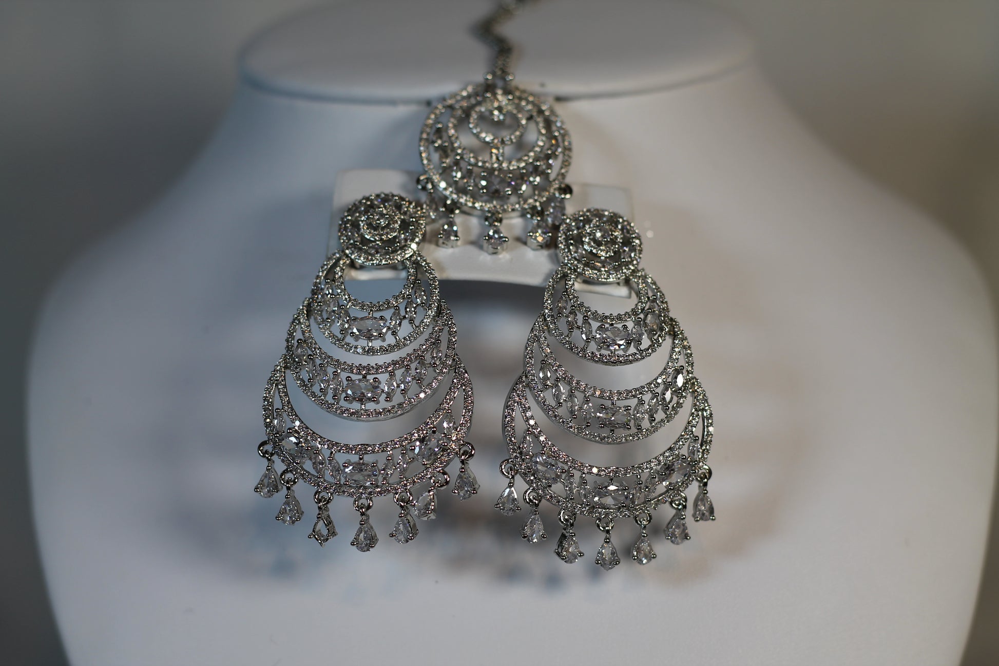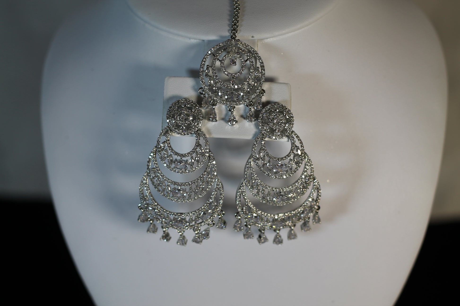 یہ شاندار ہار سیٹ کیوبک زرکونیا کے ساتھ بنایا گیا ہے اور اس میں ٹیکا اور خوبصورت چاند بالی کی بالیاں ہیں۔ مصنوعات کی زندگی بھر میں اضافہ کرنے کے لیے پیتل سے بنا ہے۔