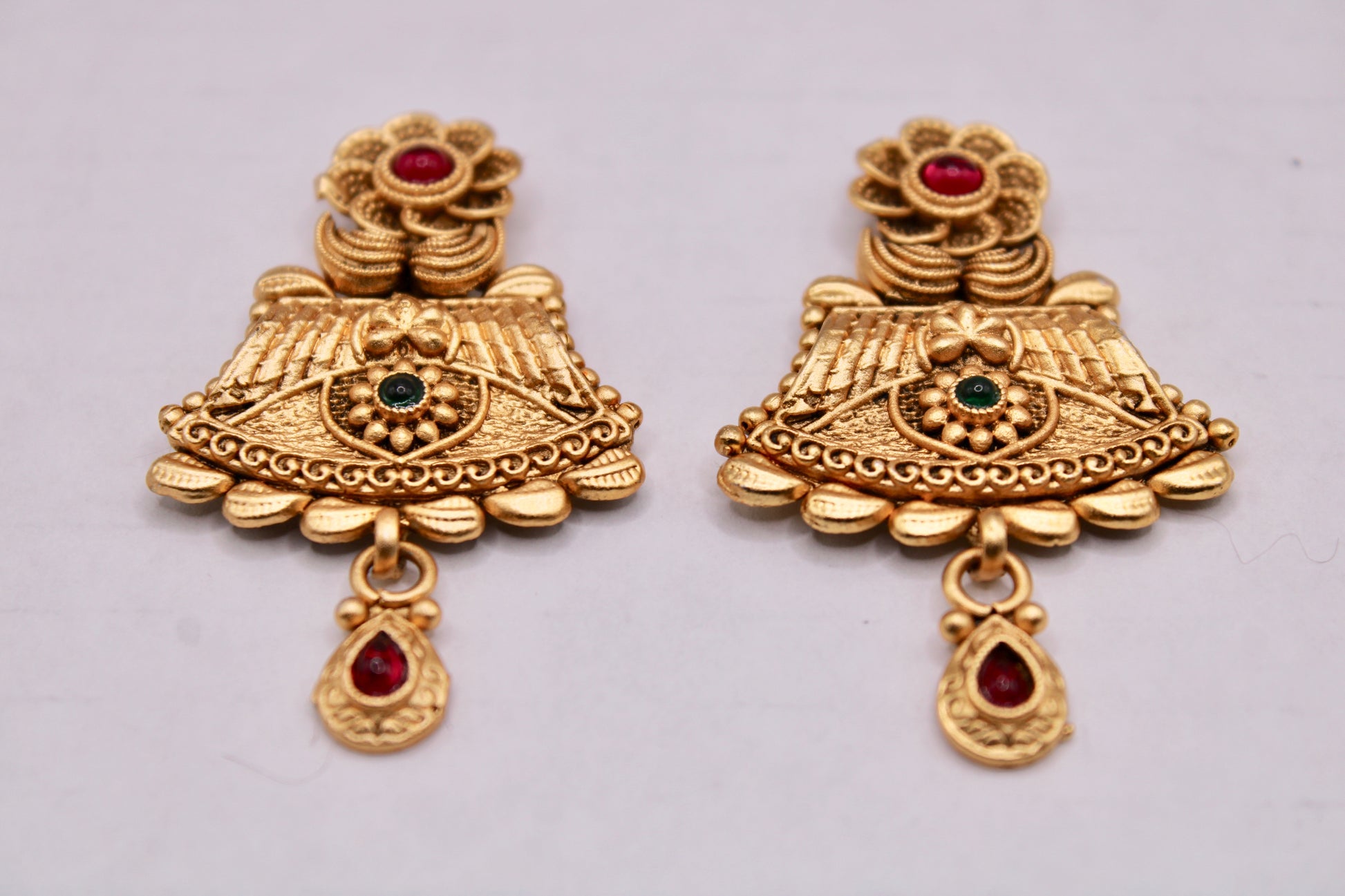 یہ پیچیدہ طریقے سے ڈیزائن کردہ راجوادی بالیاں کسی بھی لباس میں بہترین اضافہ ہیں!
