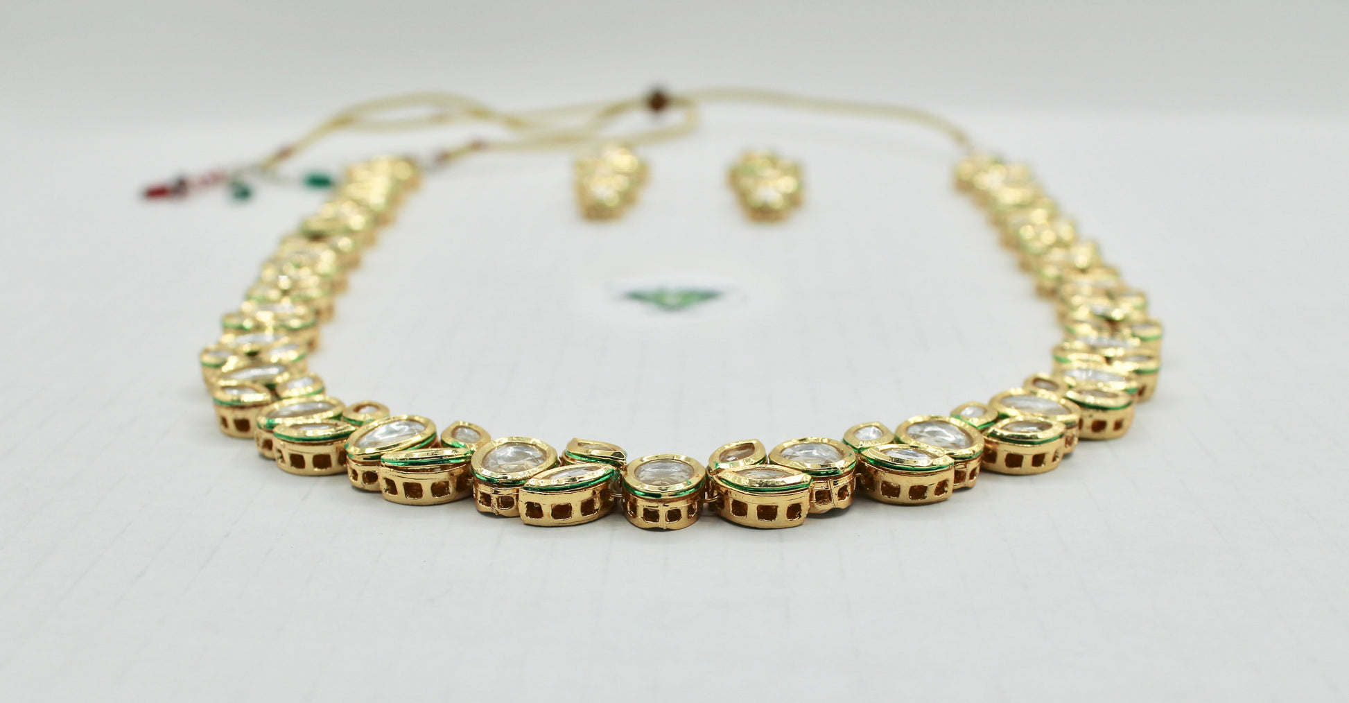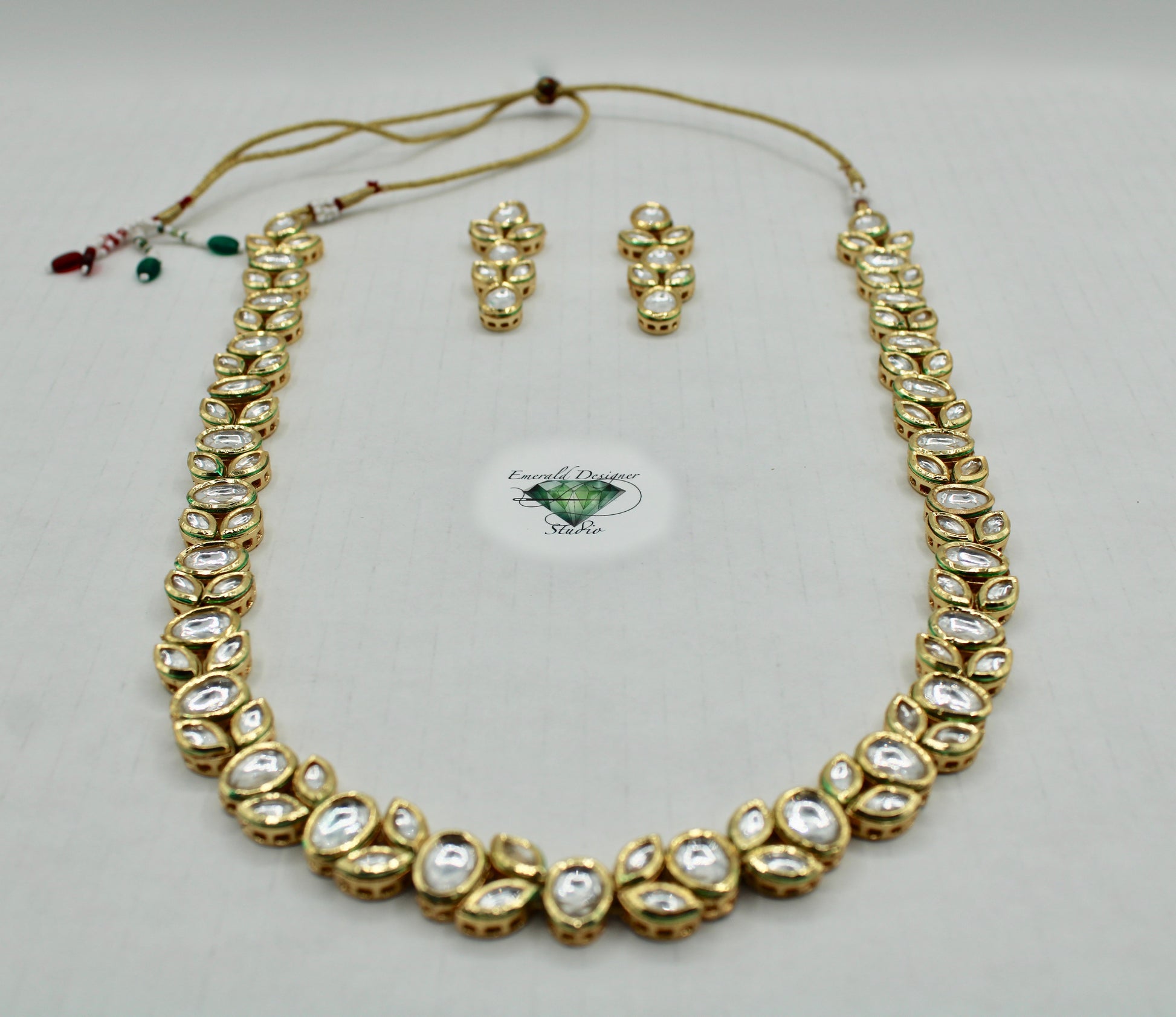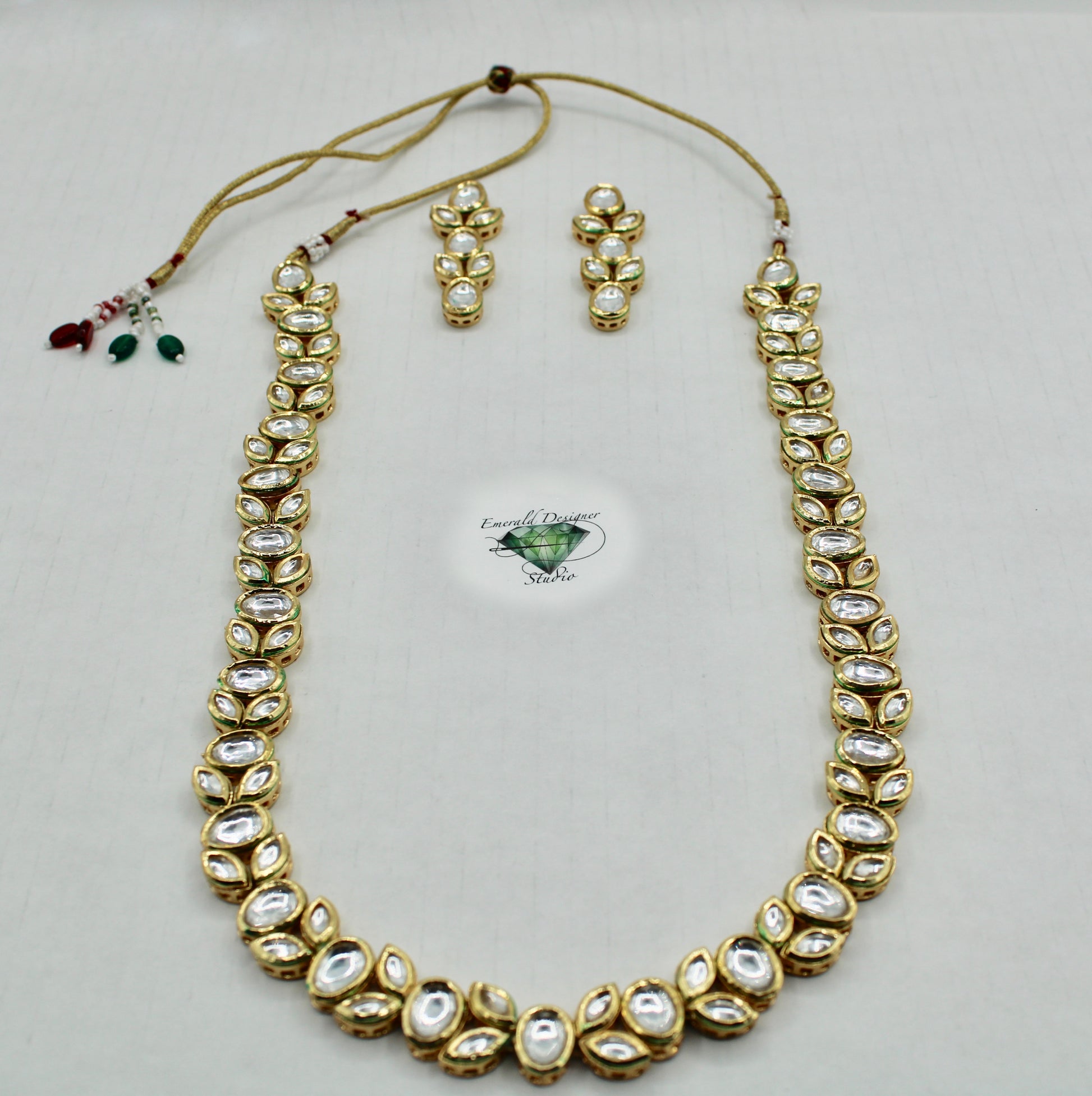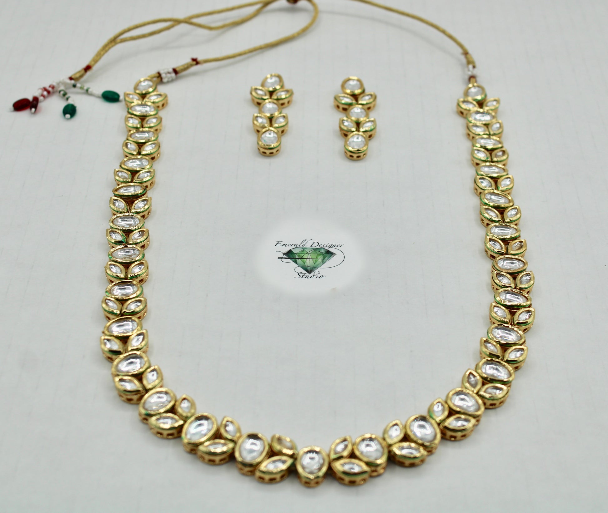 یہ شاندار، بغیر کٹے ہوئے، ہاتھ سے بنایا گیا مینا کاری ہار سیٹ مماثل بالیوں کے ساتھ مکمل ہے۔ یہ سیٹ کسی بھی لباس کے لیے بہترین ہے!