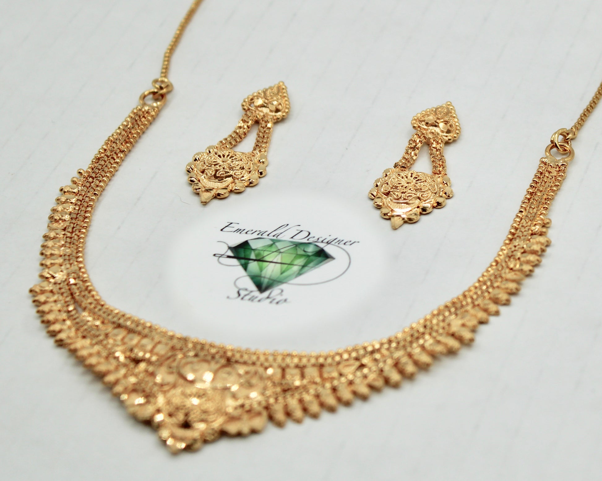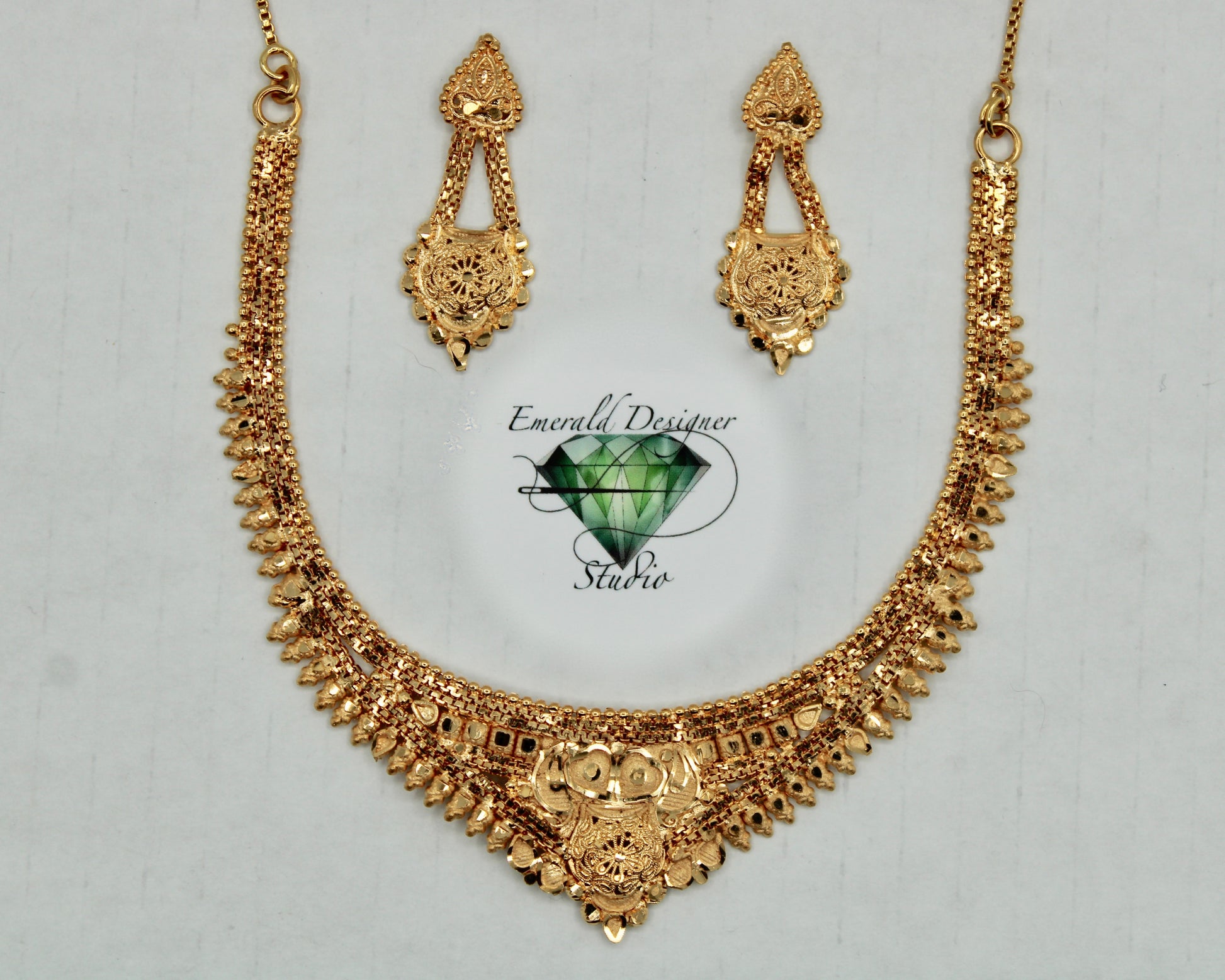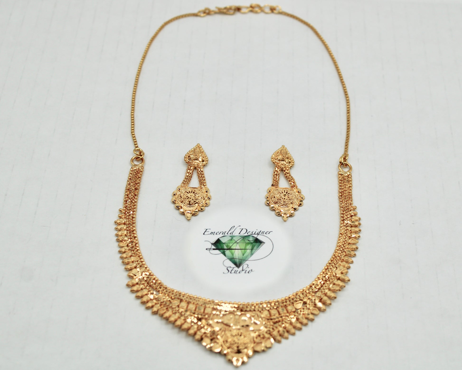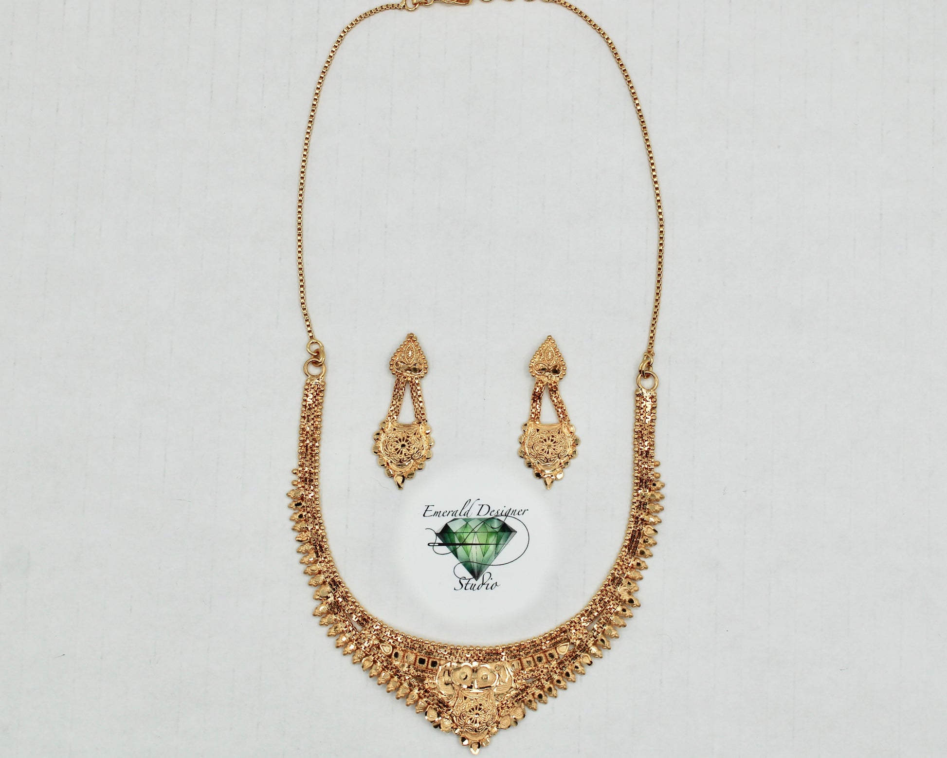 یہ نقلی سونے کا ہار سیٹ تمام مواقع اور تنظیموں کے لیے بہترین لوازمات ہے! مماثل بالیاں کے ساتھ مکمل کریں۔