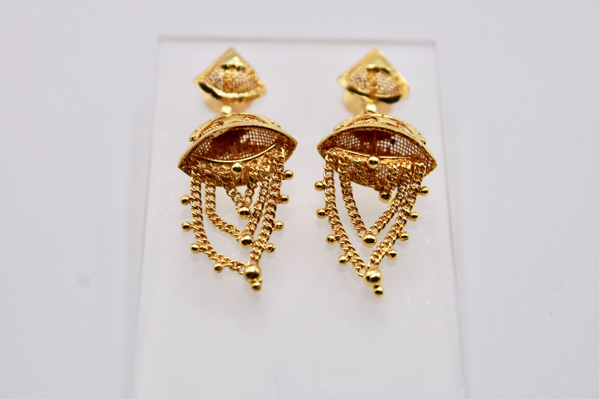 Gold-Tone Jhumkis With Layered Appliqués - E1240