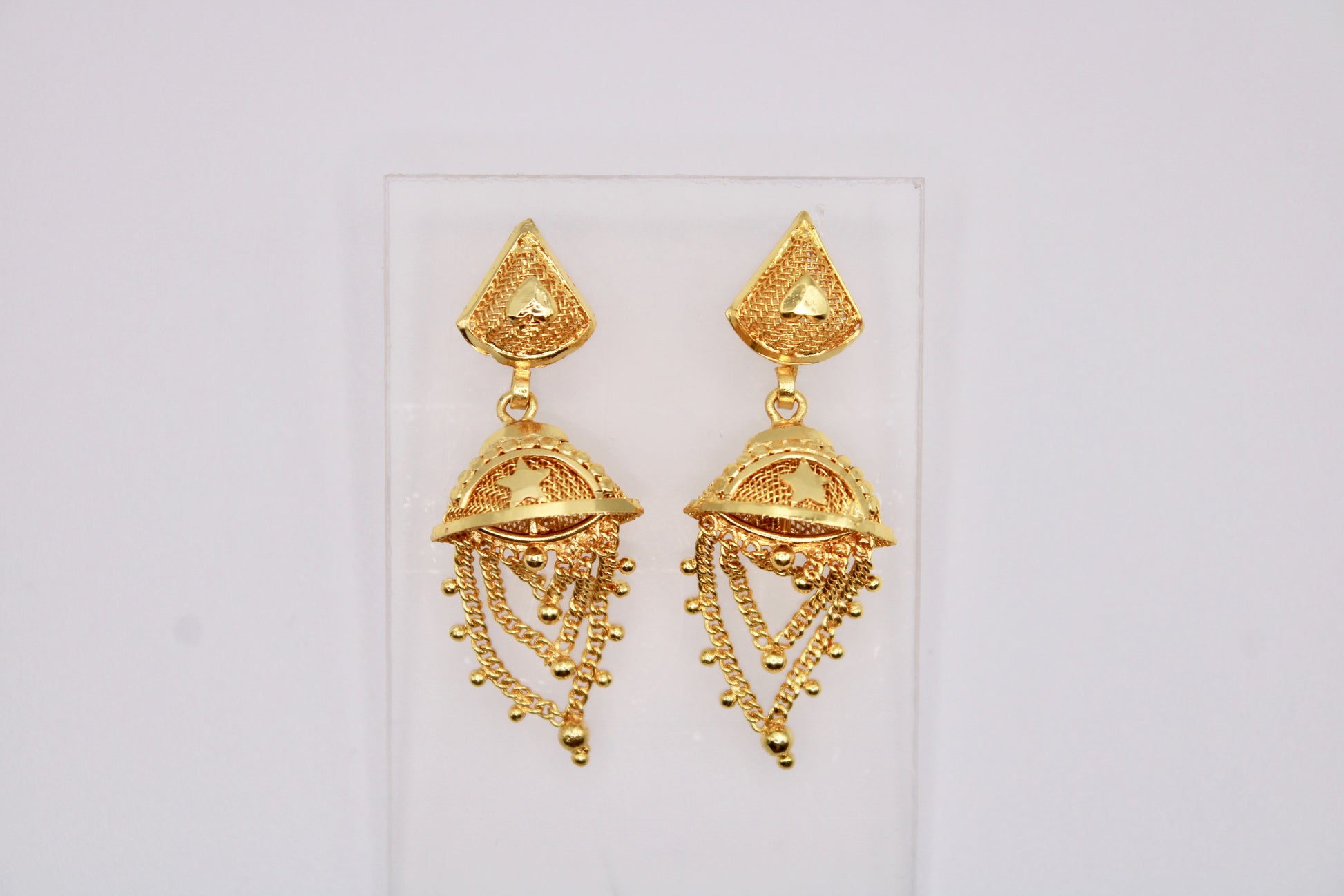 Expertly crafted in traditional South Asian style, these Gold-Tone Jhumkis with Appliqués are the perfect addition to your daily accessories. These lightweight earrings resemble real gold, making them perfect for all ages to wear with comfort and style. Upgrade your look with these timeless jhumki earrings.