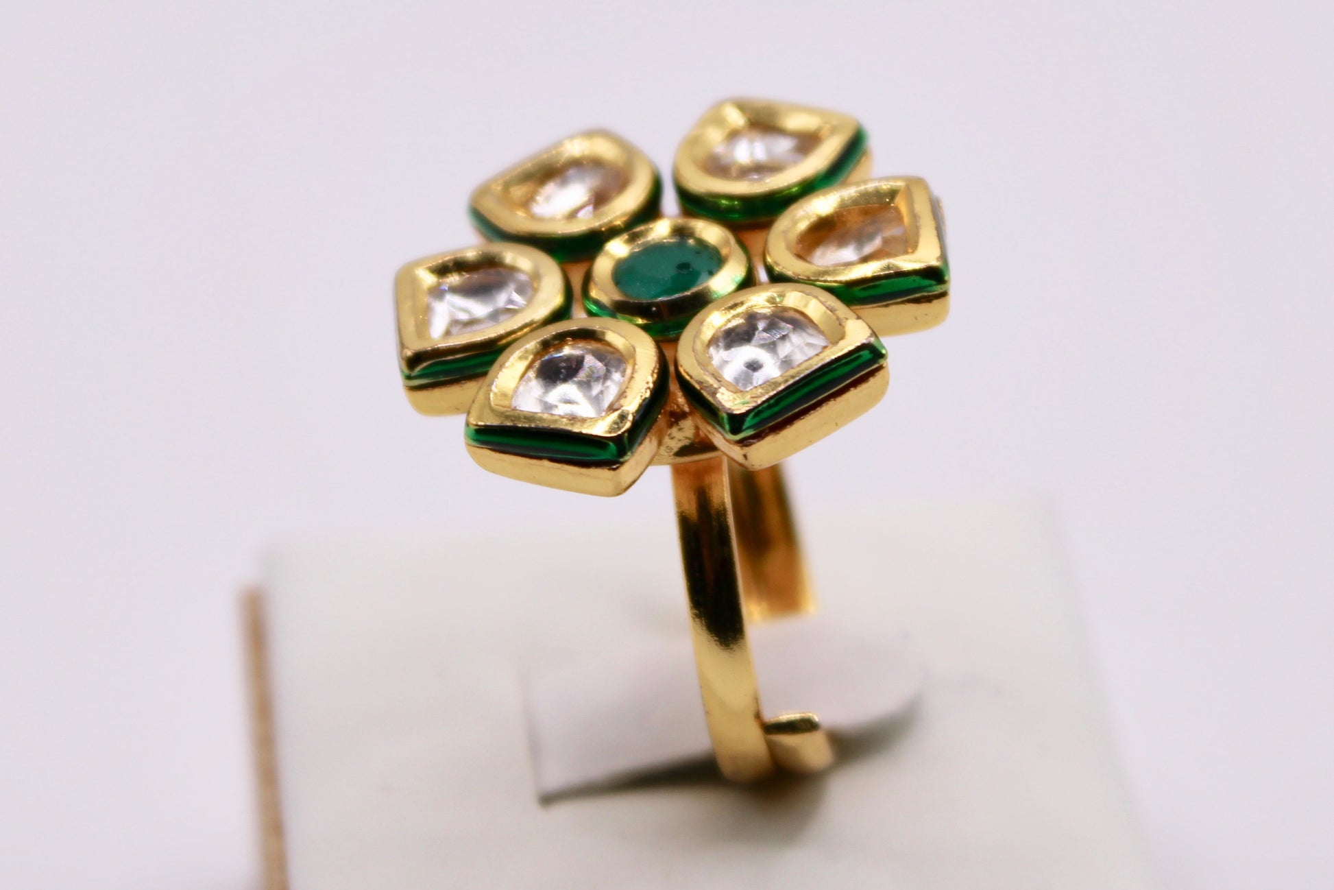 یہ ہاتھ سے بنی کندن کی انگوٹھی آرٹ کا ایک نمونہ ہے، یہ کسی بھی عمر کے لیے بہترین ہے۔ سایڈست، مصنوعات کی زندگی کو بڑھانے کے لئے پیتل سے بنا.