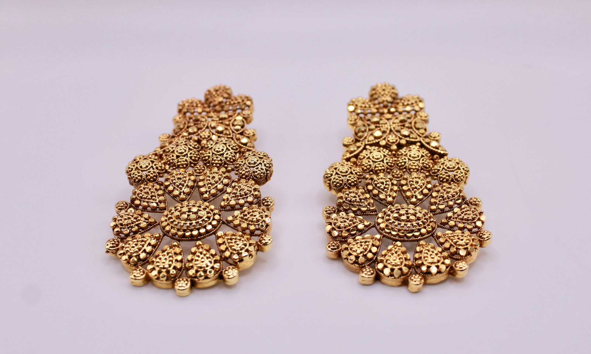 These unique gold-plated earrings are handmade and the perfect addition to any outfit.
