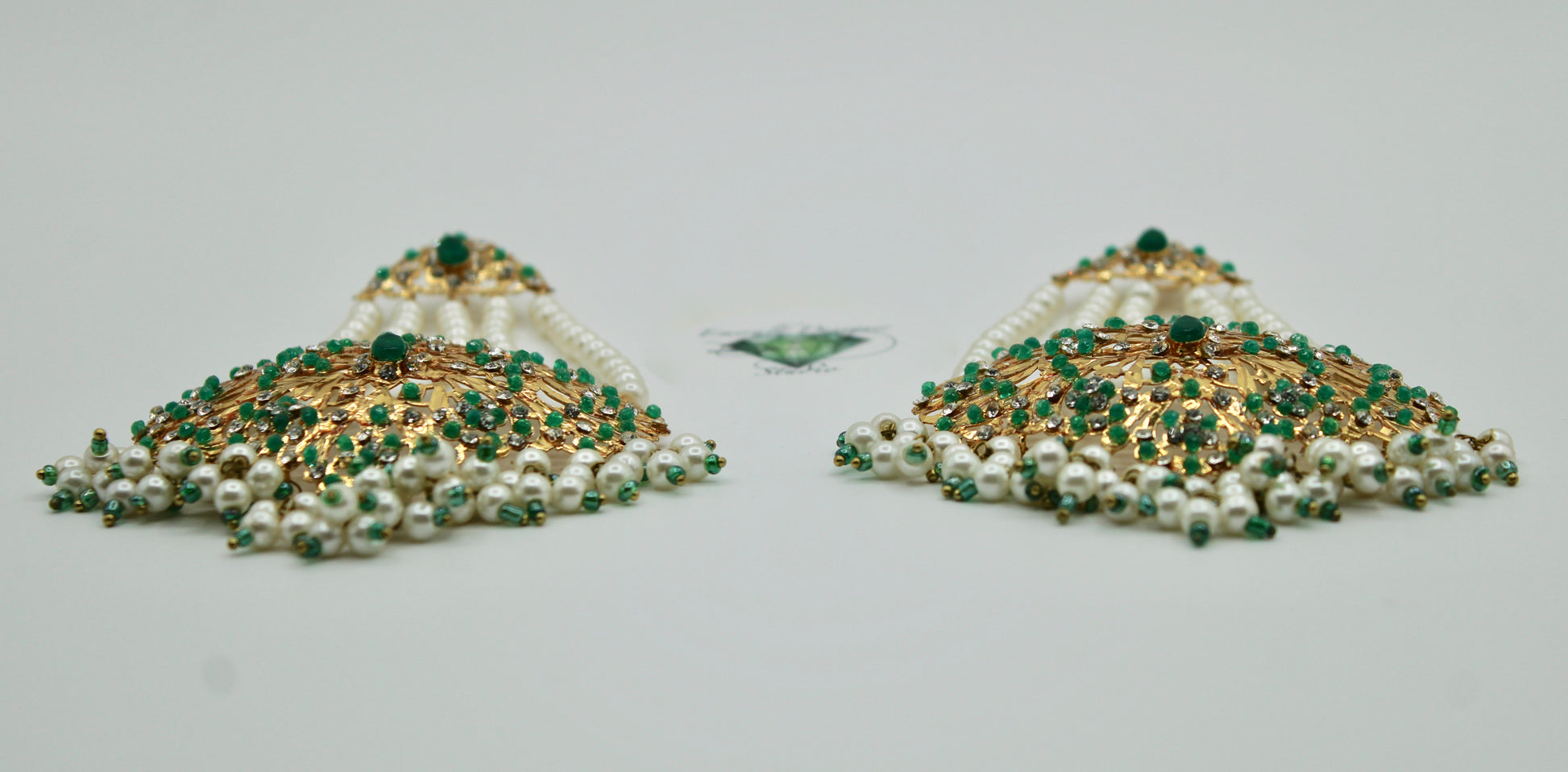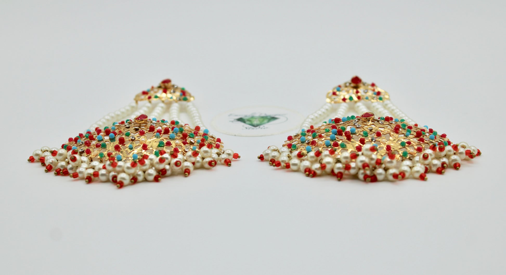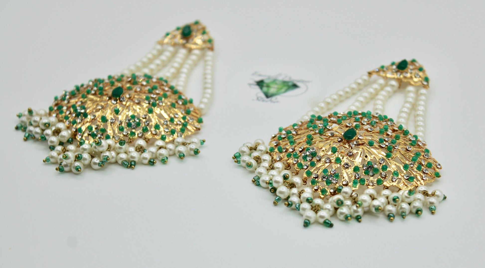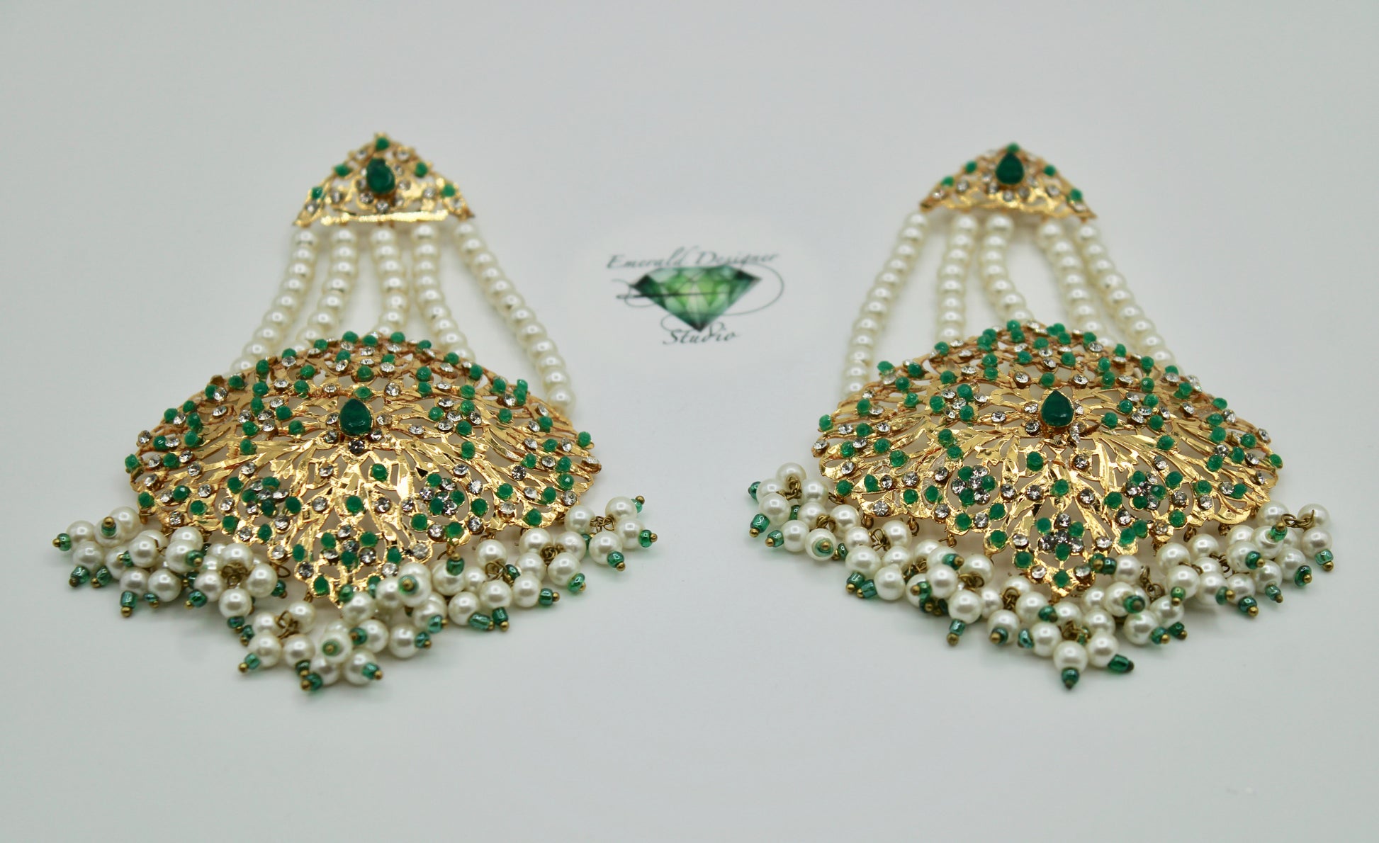 These stunning Hyderabadi jhumer earrings are complete with faux pearl and cubic zirconia detailing throughout. Available in two colours.