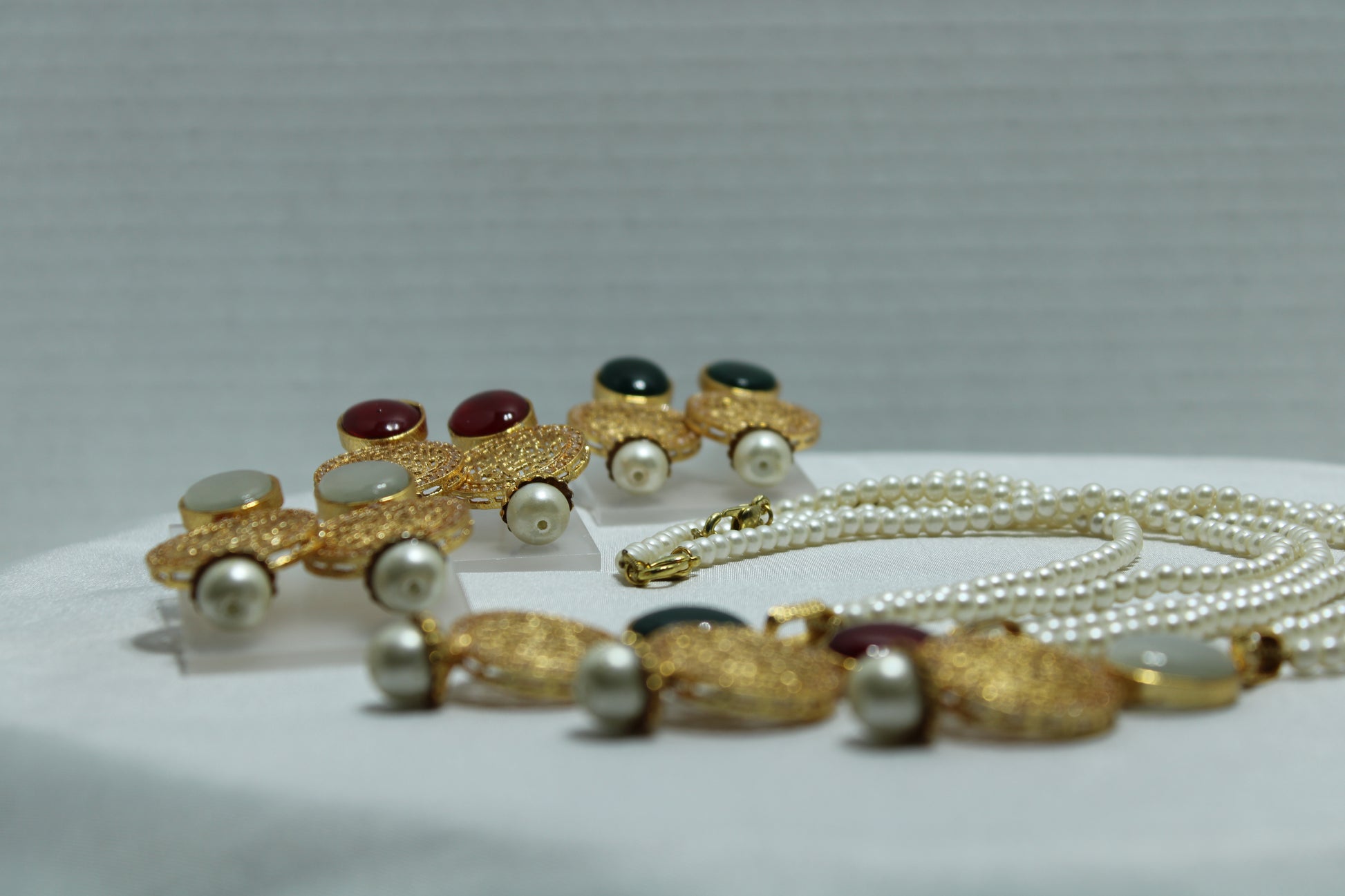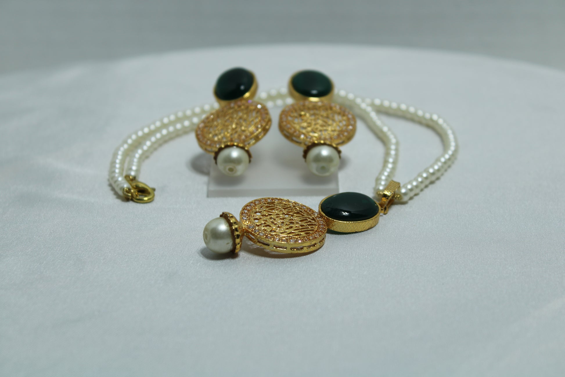کیوبک زرکونیم کے گولڈ ٹون مکس اور موتیوں کے ساتھ تفصیل سے بنایا گیا یہ سیٹ اس کی خوبصورتی کو بیان کرنے کے لیے کسی لفظ کی ضرورت نہیں ہے۔