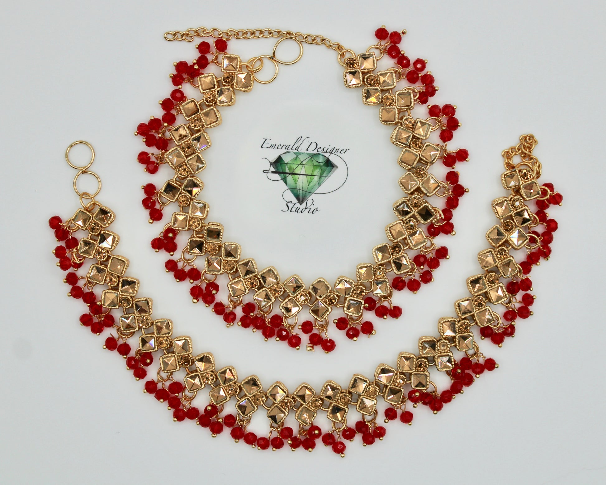 غلط موتیوں، rhinestones، اور کرسٹل موتیوں کے امتزاج کے ساتھ ہاتھ سے بنی کندن پازیب۔ آپ کے پسندیدہ لباس سے ملنے کے لیے مختلف رنگوں میں دستیاب ہے!