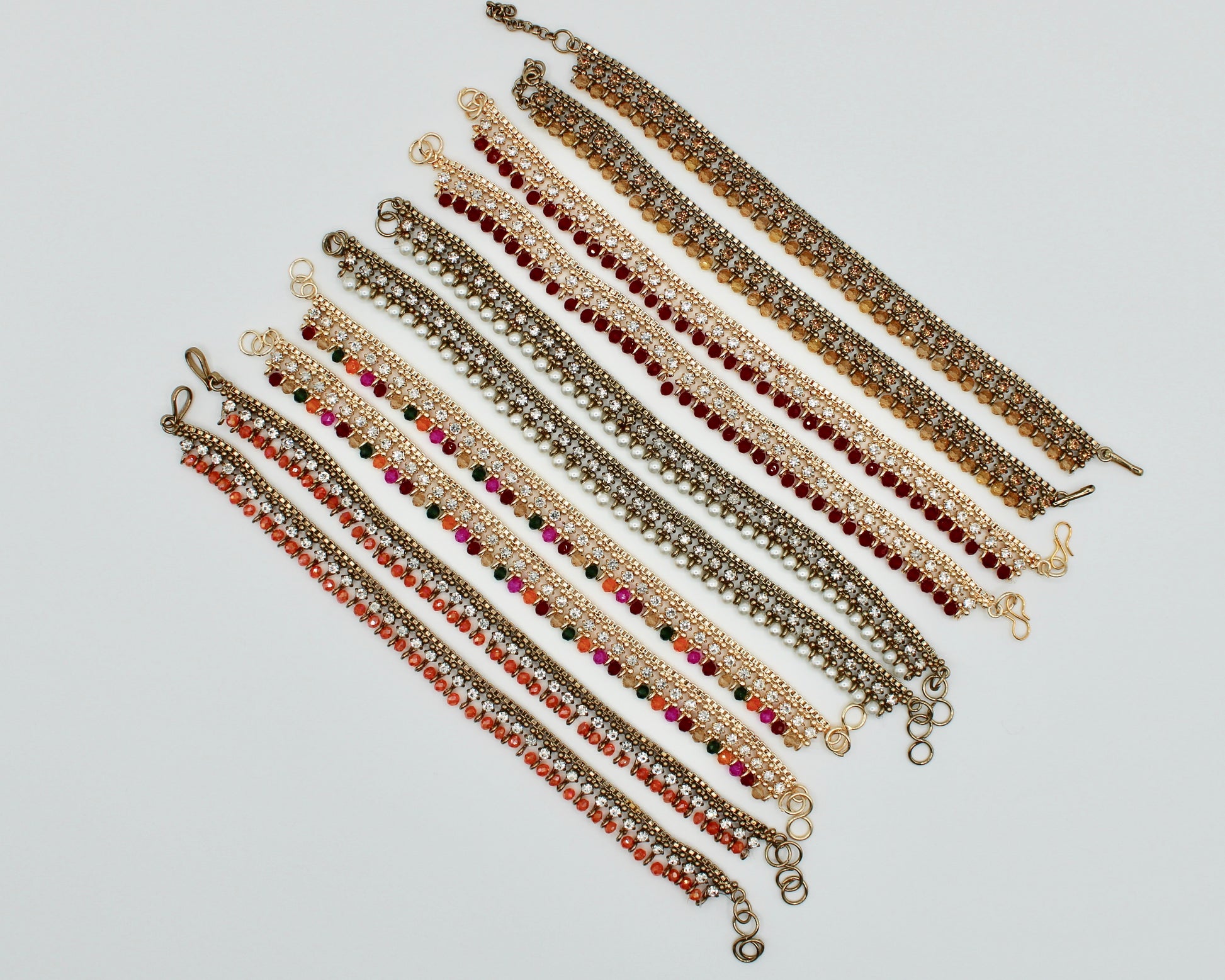 غلط موتیوں، rhinestones، اور کرسٹل موتیوں کے امتزاج کے ساتھ ہاتھ سے بنی منجو پازیب۔ آپ کے پسندیدہ لباس سے ملنے کے لیے مختلف رنگوں میں دستیاب ہے!