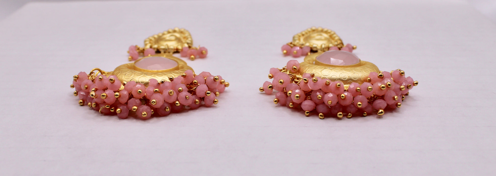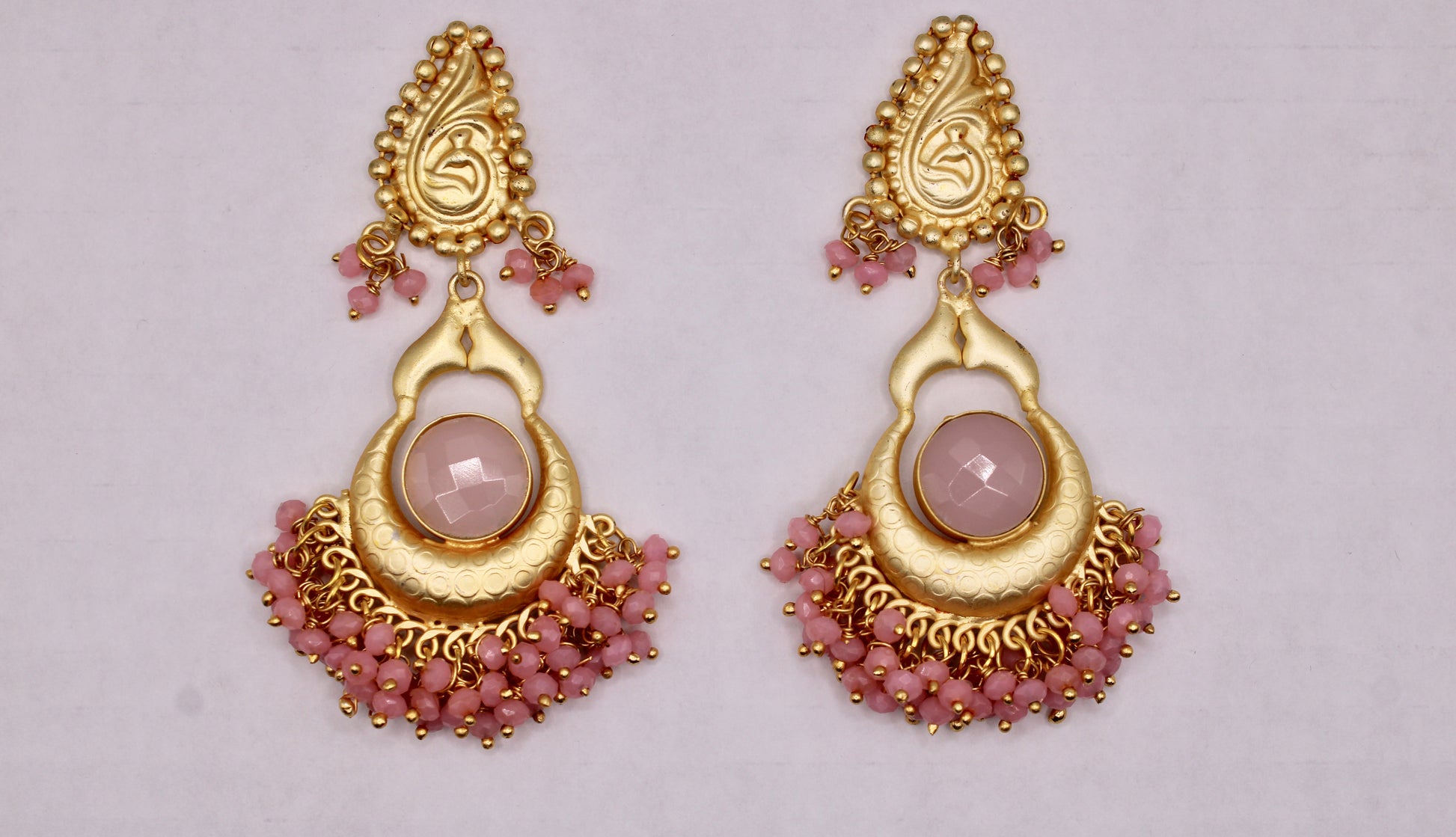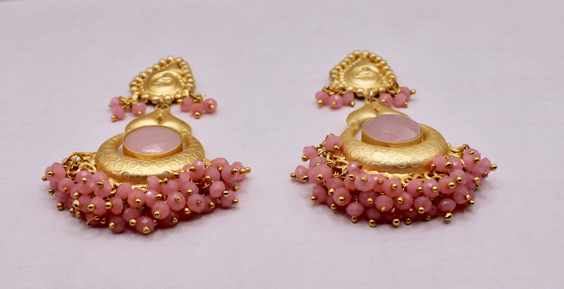 یہ سجیلا بالیاں دھندلا اور غلط آڑو موتیوں اور پتھر کی تفصیلات کے ساتھ مکمل ہیں۔