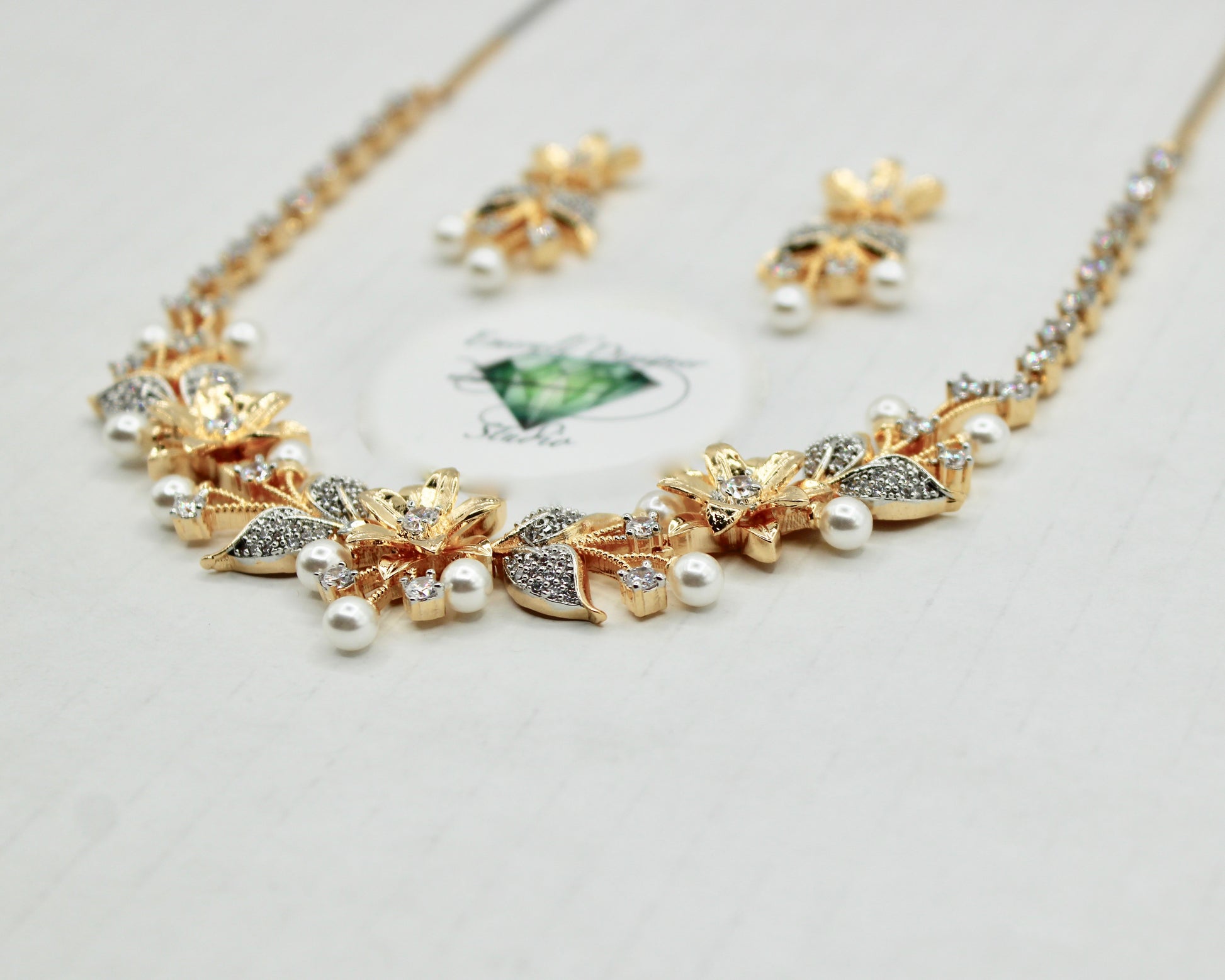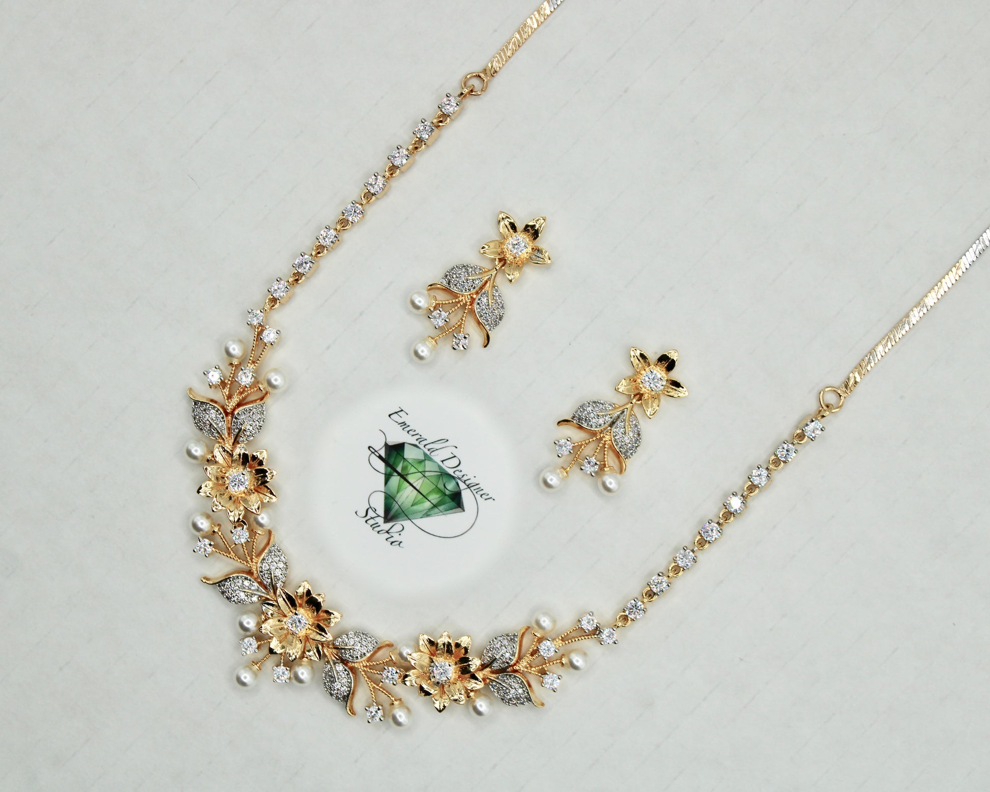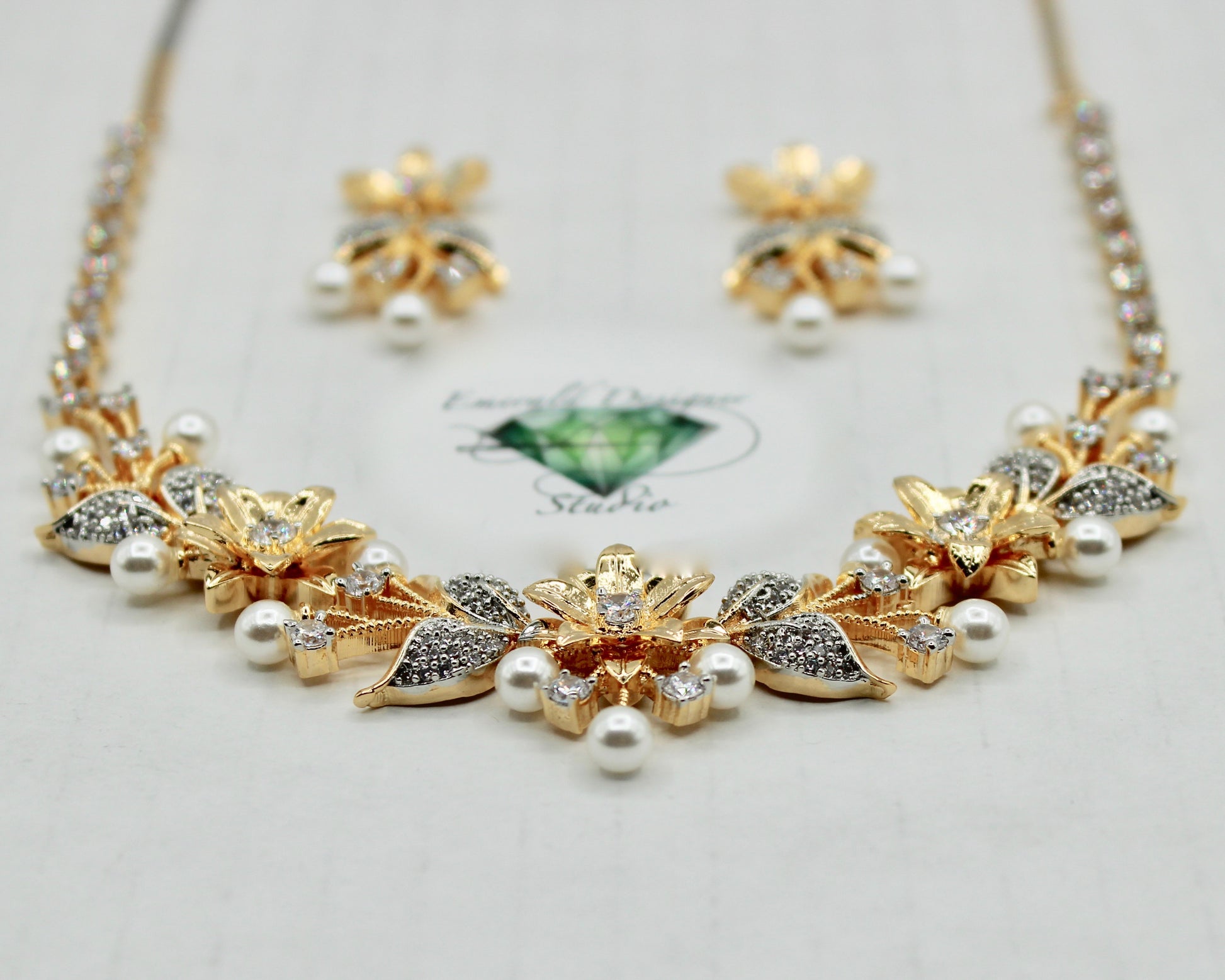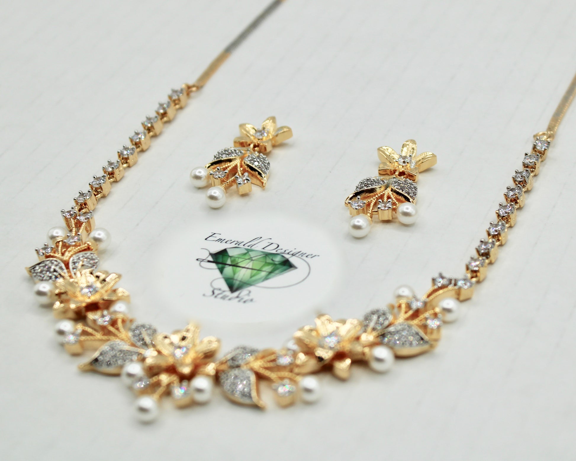 غلط پرل اور کیوبک زرکونیا ہار سیٹ - E856