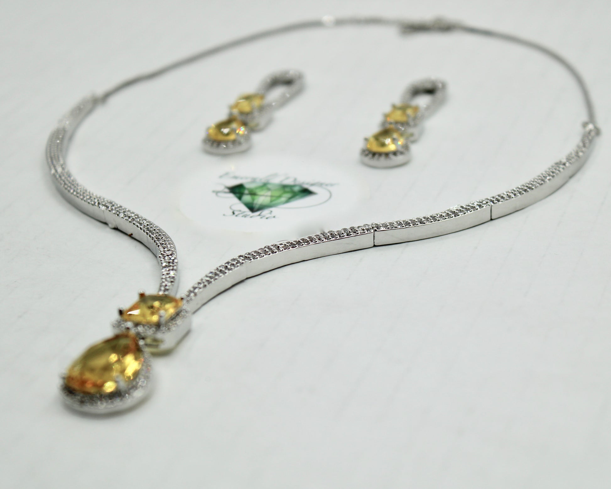 یہ شاندار ہار سیٹ واقعی ایک خواب ہے! یہ مختلف قسم کے کیوبک زرکونیا کے کٹوں اور مماثل بالیاں کے ساتھ مکمل ہے۔ یہ مشرقی یا مغربی دونوں شکلوں کو حاصل کرنے کے لیے بہترین سیٹ ہے۔