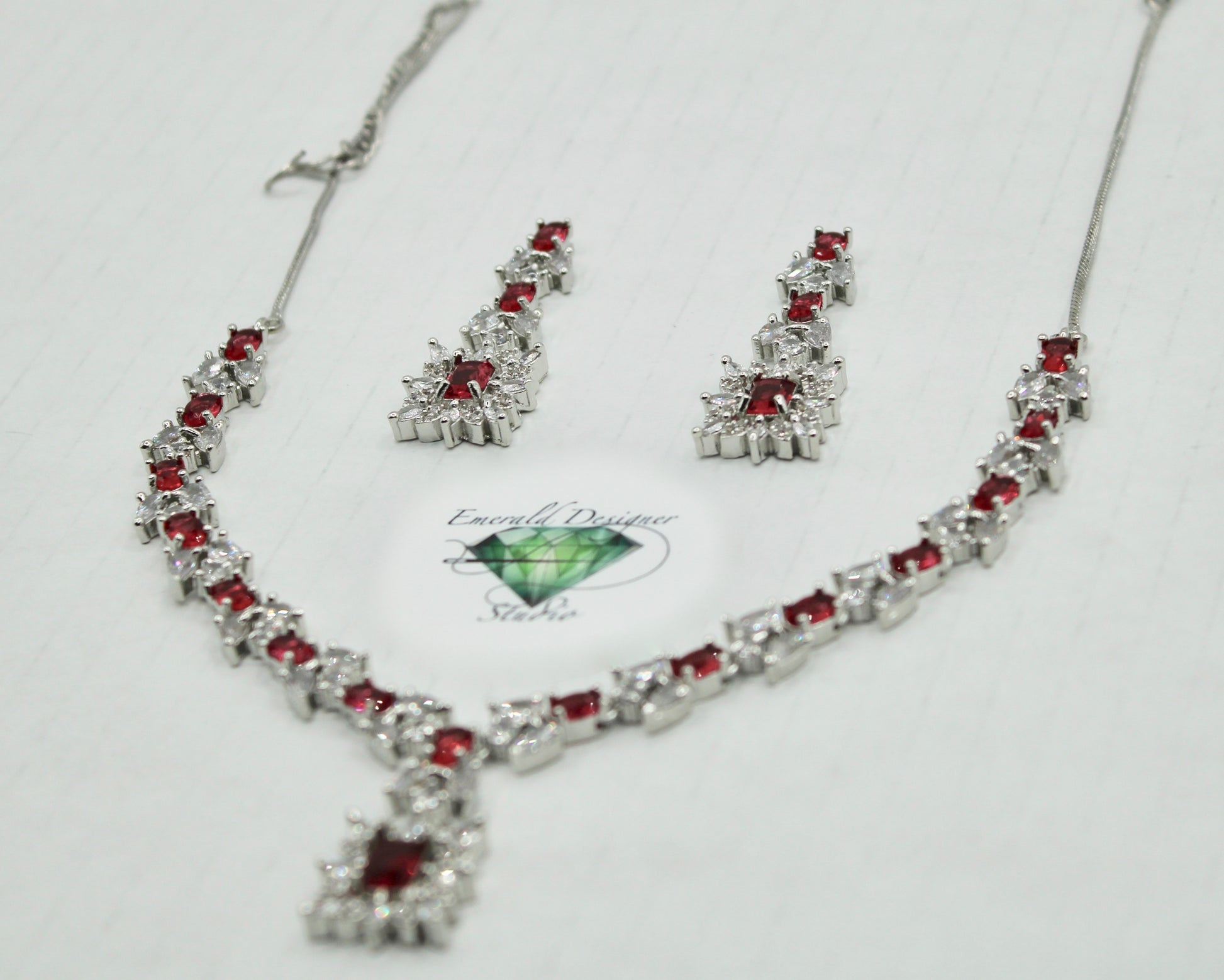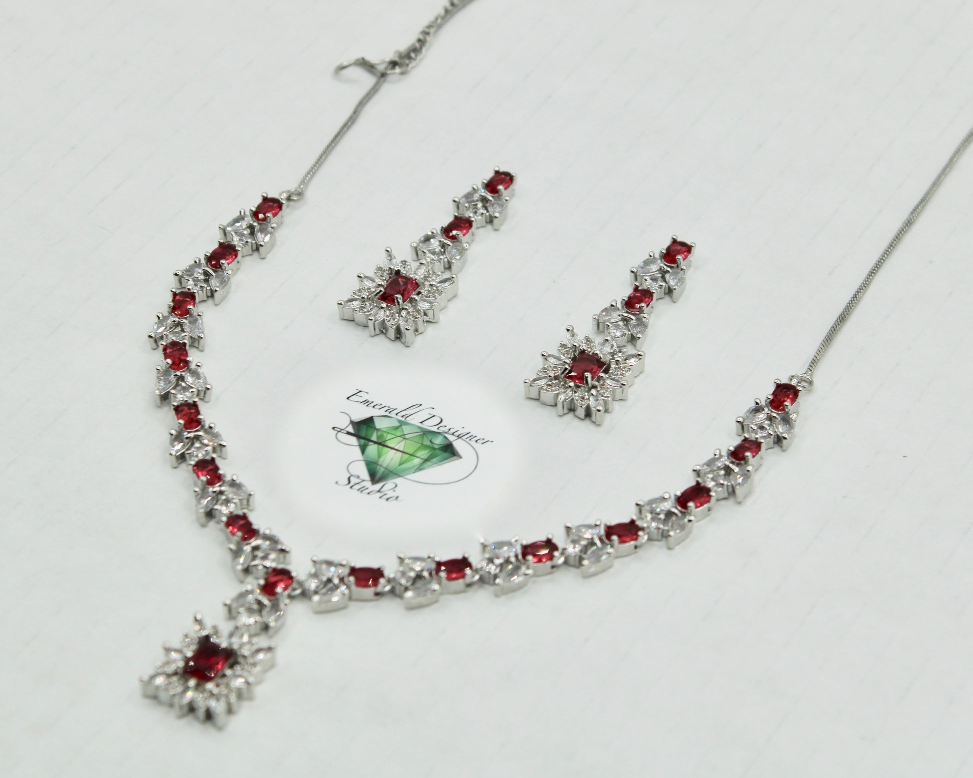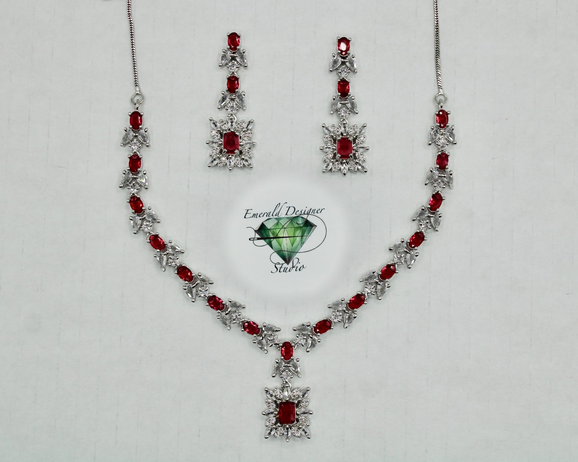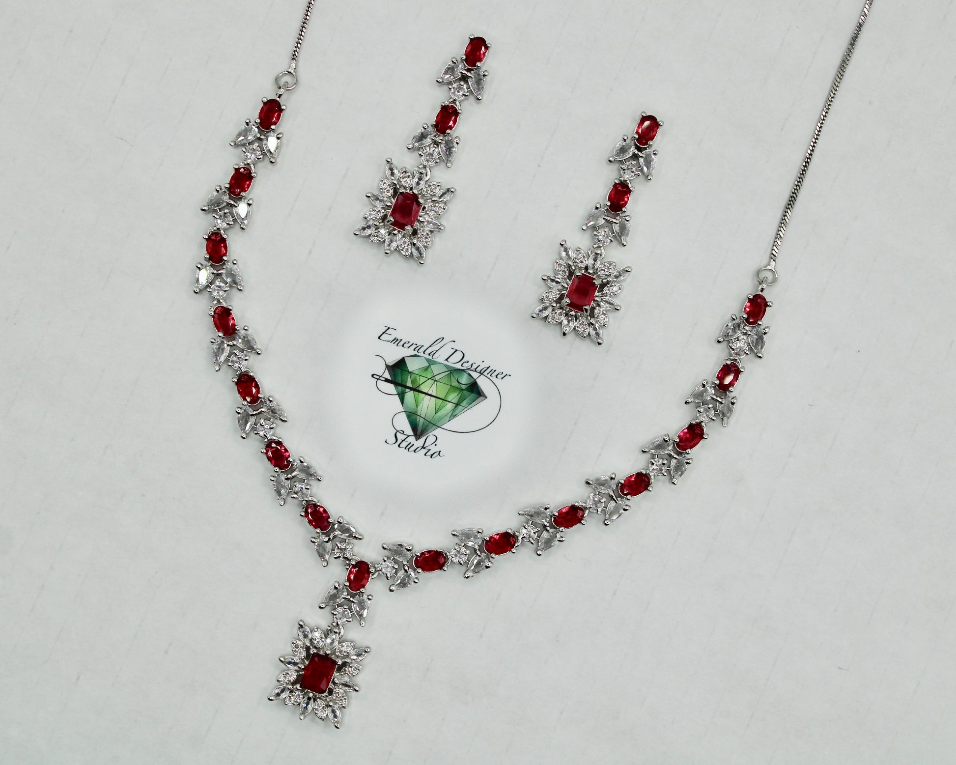 یہ نفیس ہار سیٹ بیضوی کٹ اور زمرد سے کٹے کیوبک زرکونیا کے امتزاج کے ساتھ مکمل ہے، جس میں مماثل بالیاں شامل ہیں۔ یہ سیٹ دو رنگوں میں دستیاب ہے۔