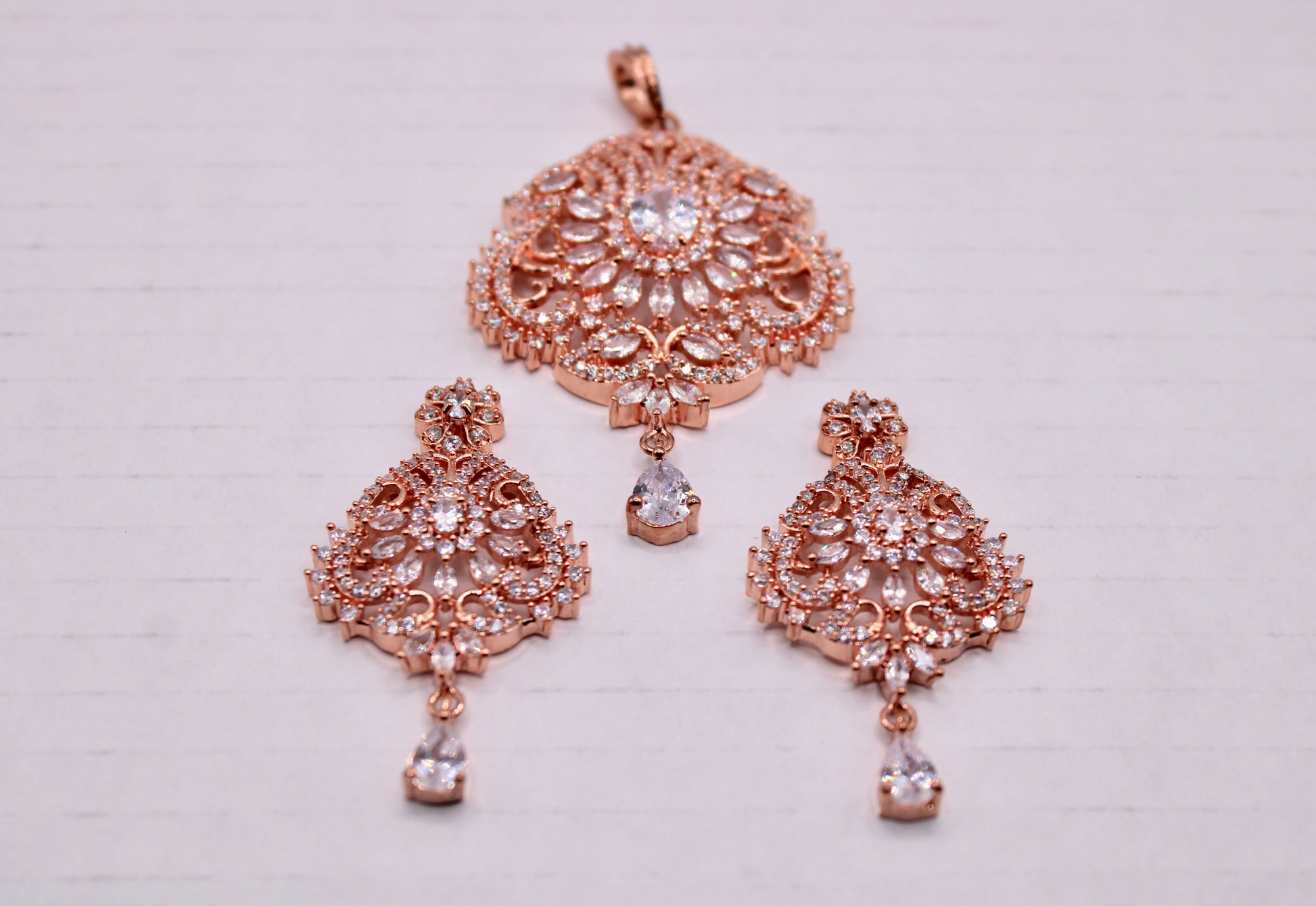 یہ حیرت انگیز لٹکن سیٹ واقعی مرنے کے لئے ہے! یہ کیوبک زرکونیا کے مختلف کٹس کے ساتھ مکمل ہے اور اس میں مماثل بالیاں شامل ہیں۔ یہ کسی بھی شکل کو بلند کرنے کے لیے بہترین سیٹ ہے۔