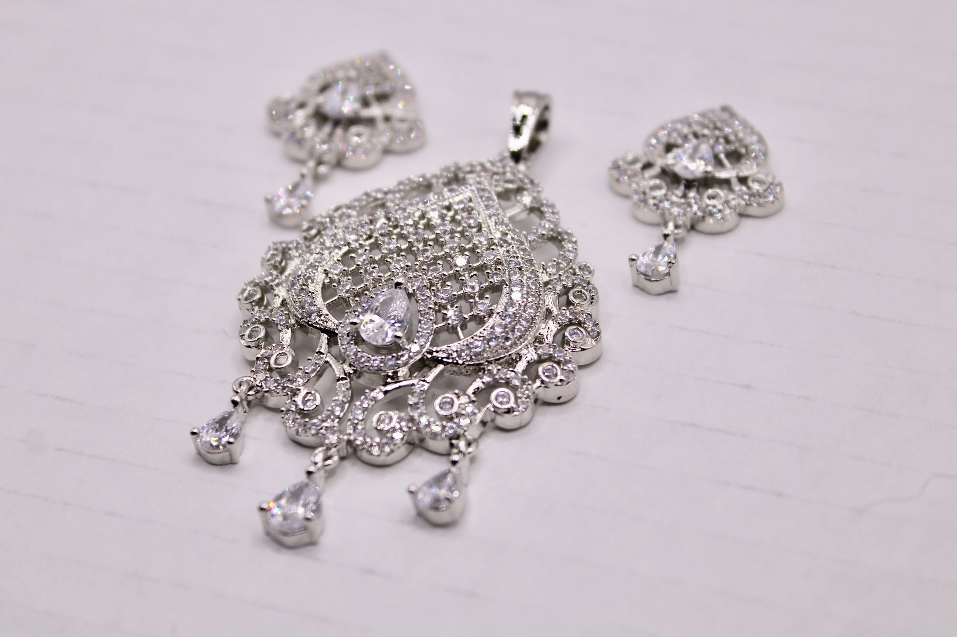 یہ دلکش خوبصورت لٹکن سیٹ مکمل طور پر کیوبک زرکونیا کے ساتھ تفصیلی ہے اور کم سے کم لوگوں کے لیے ضروری ہے۔ یہ شاندار سیٹ مماثل جڑوں اور چین کے ساتھ مکمل کیا گیا ہے۔ مصنوعات کی زندگی بھر میں اضافہ کرنے کے لیے پیتل سے بنا ہے۔