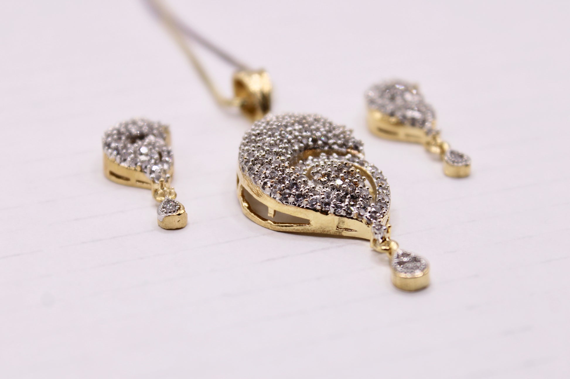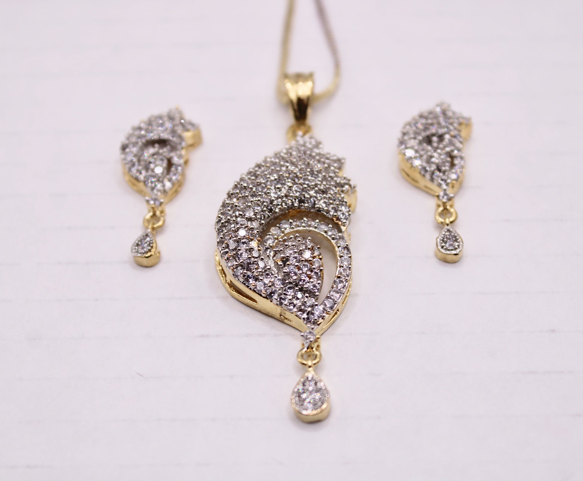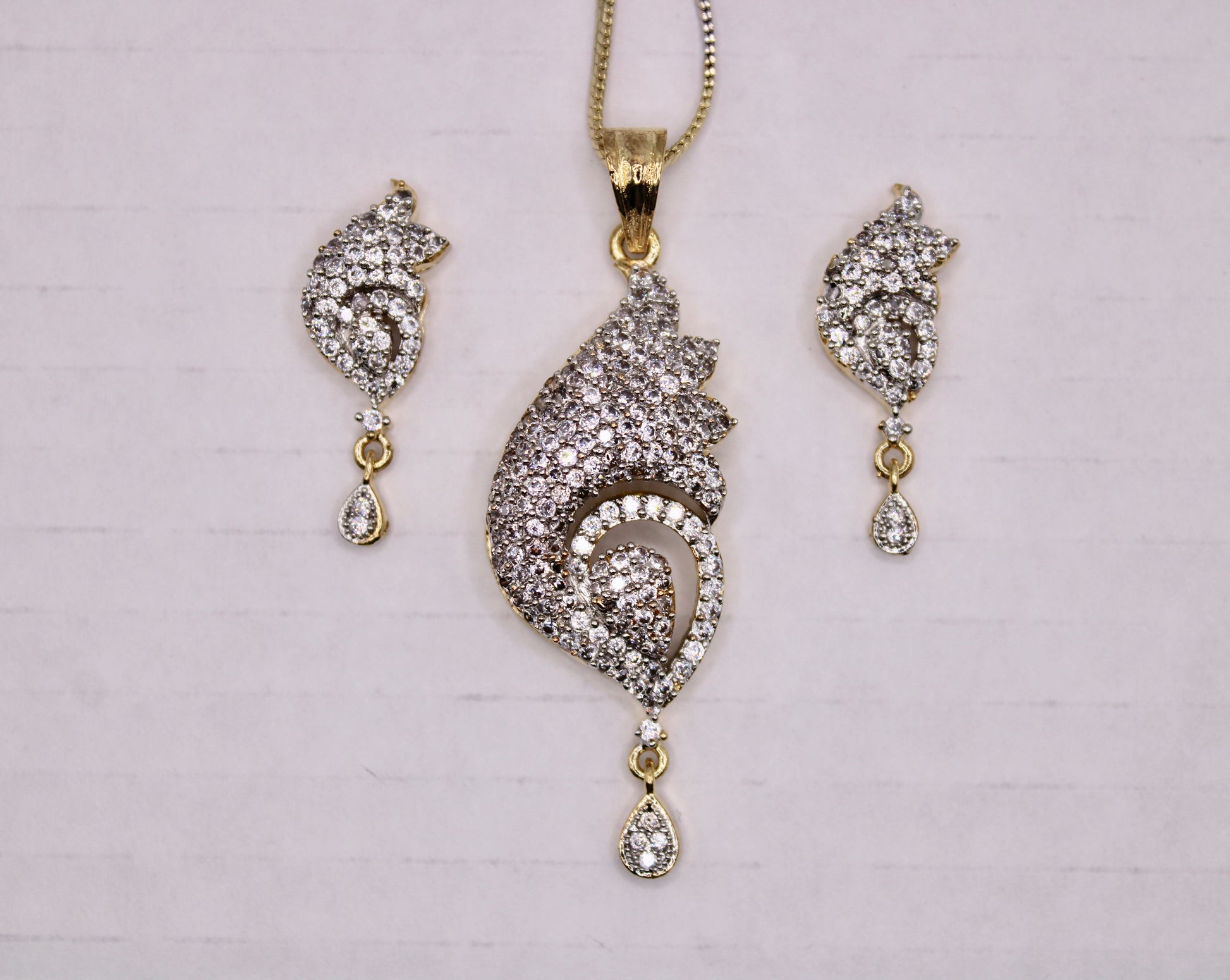 یہ منفرد اور سجیلا لٹکن سیٹ روزمرہ کی شکل کے لیے بہترین ہے، اس سیٹ میں مماثل سٹڈز اور ایک چین شامل ہے۔ مصنوعات کی زندگی بھر میں اضافہ کرنے کے لیے پیتل سے بنا ہے۔