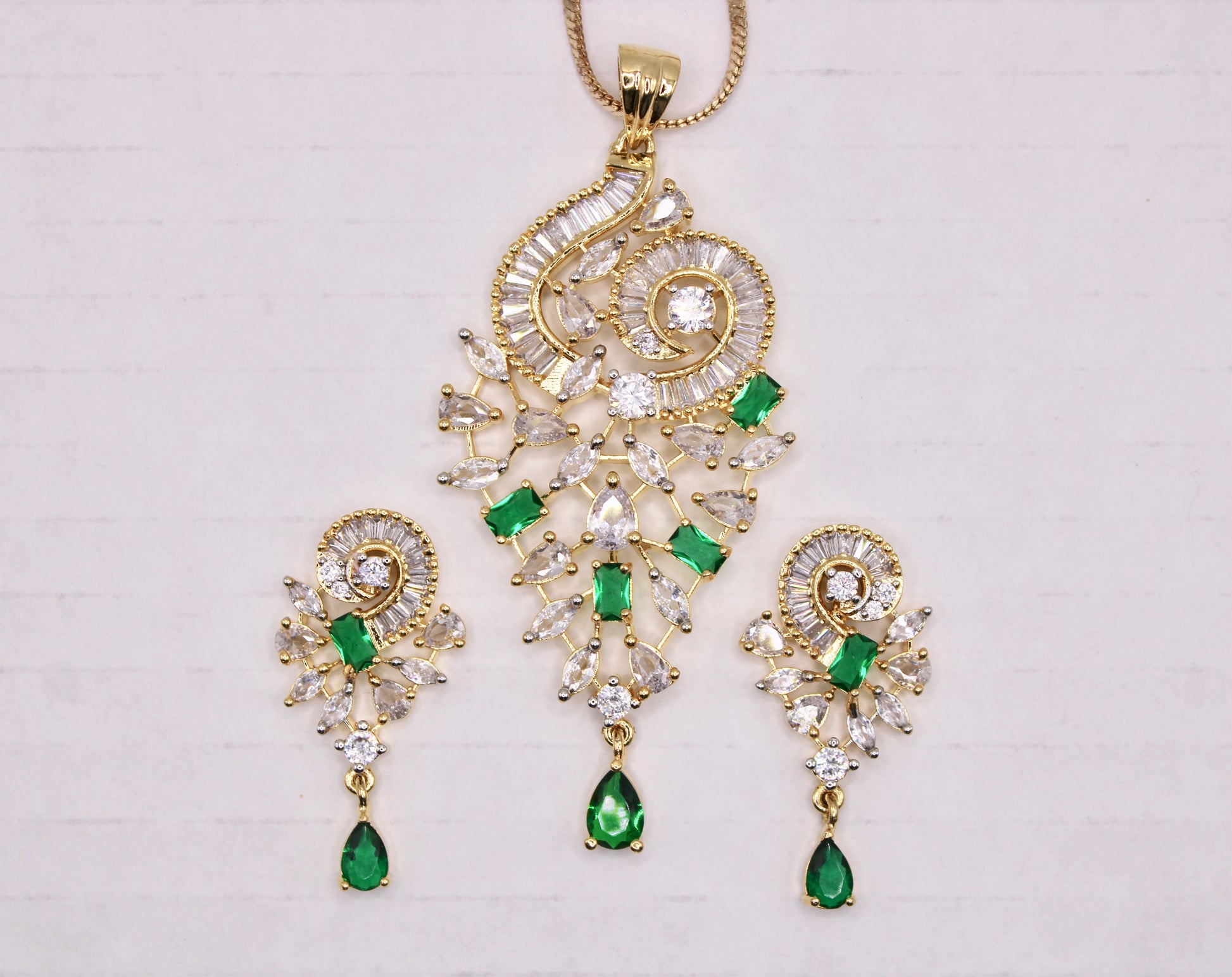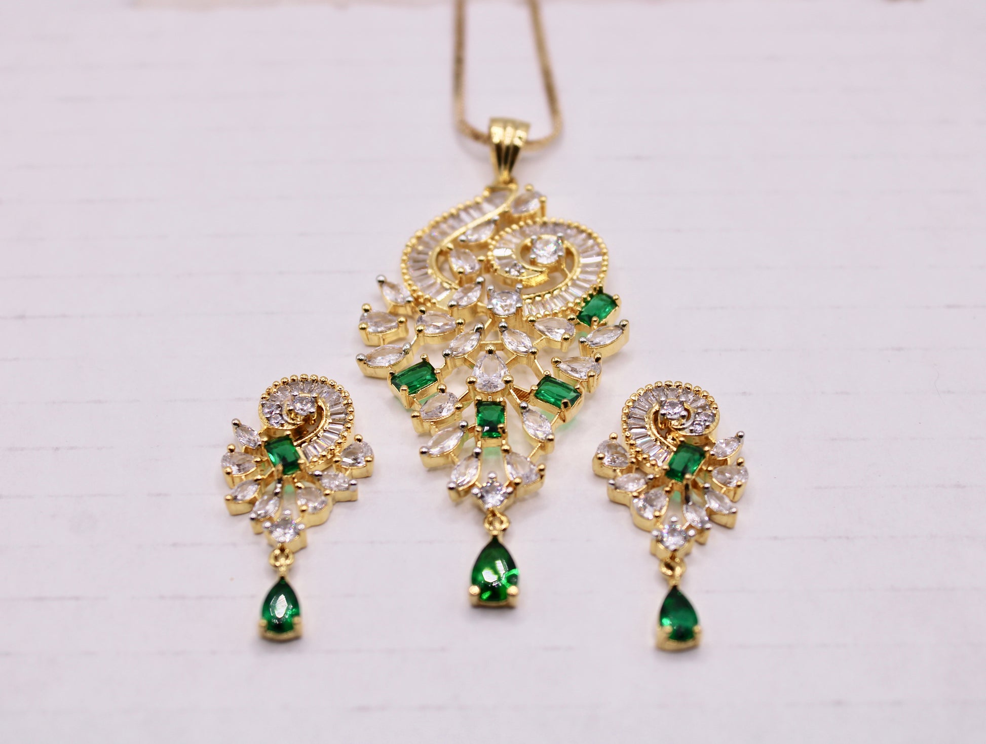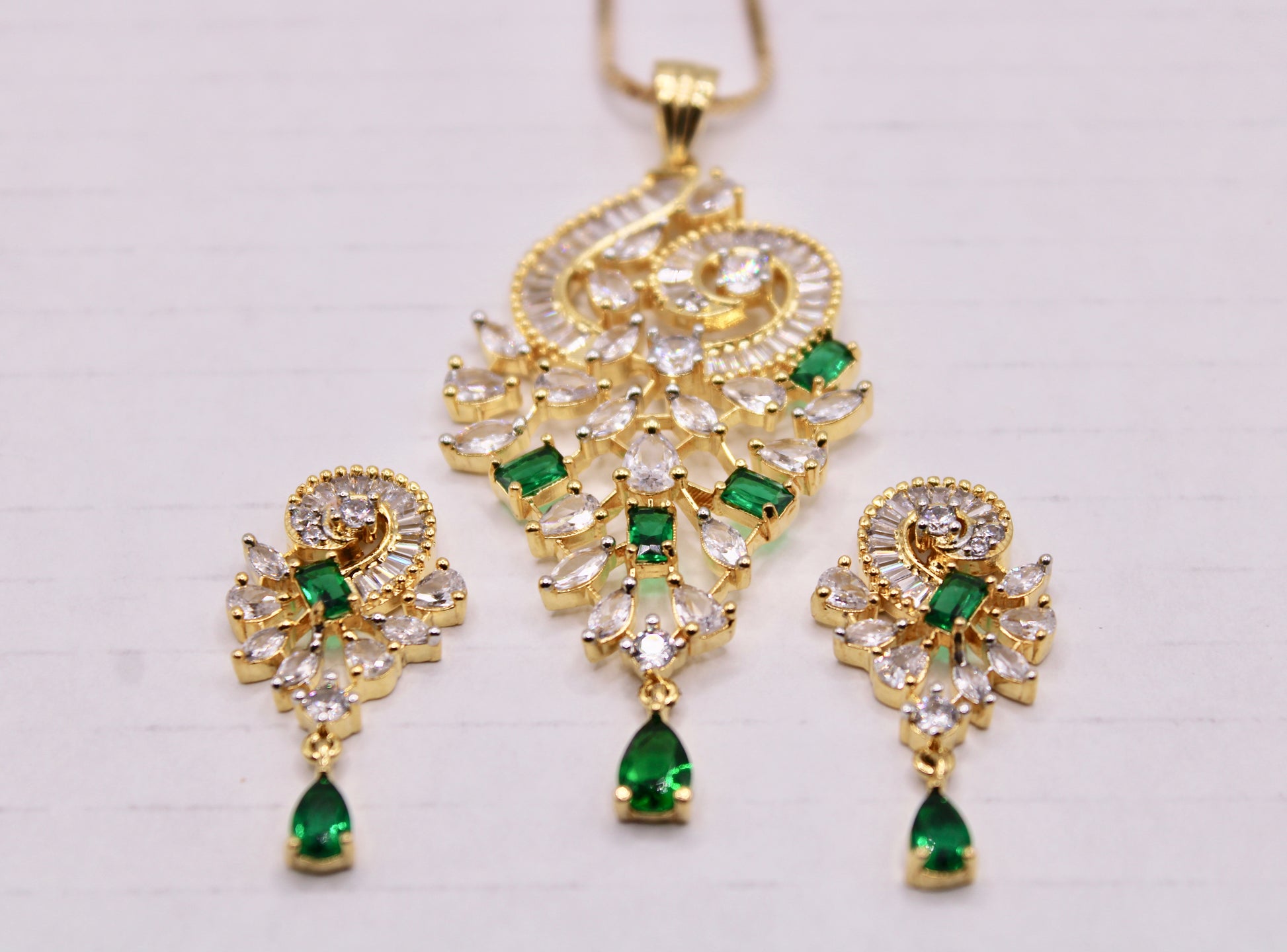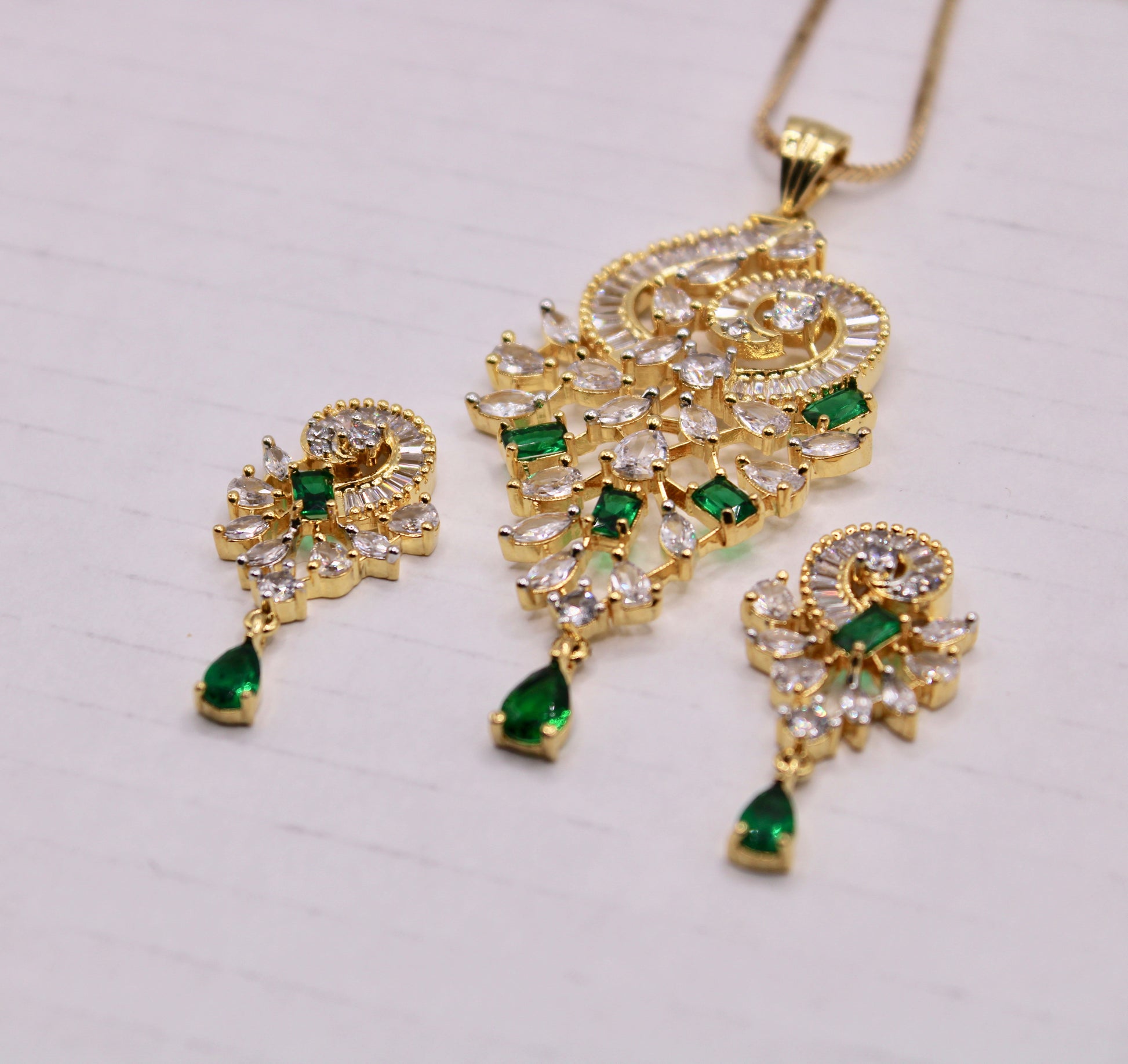یہ خوبصورت کیوبک زرکونیا لاکٹ سیٹ آپ کے منتخب کردہ لباس کے ساتھ پہننے کے لیے بہترین ہے۔ مماثل جڑوں اور ایک زنجیر کے ساتھ مکمل کریں۔ مصنوعات کی زندگی بھر میں اضافہ کرنے کے لیے پیتل سے بنا ہے۔