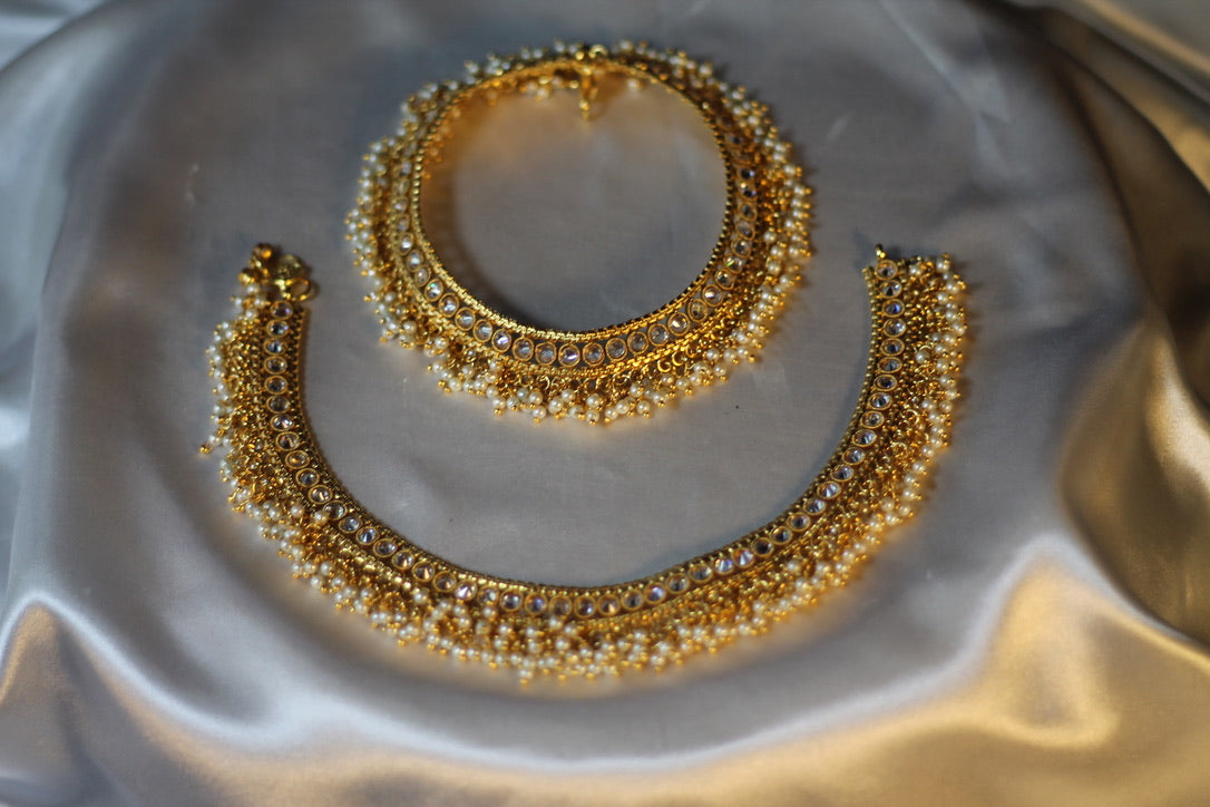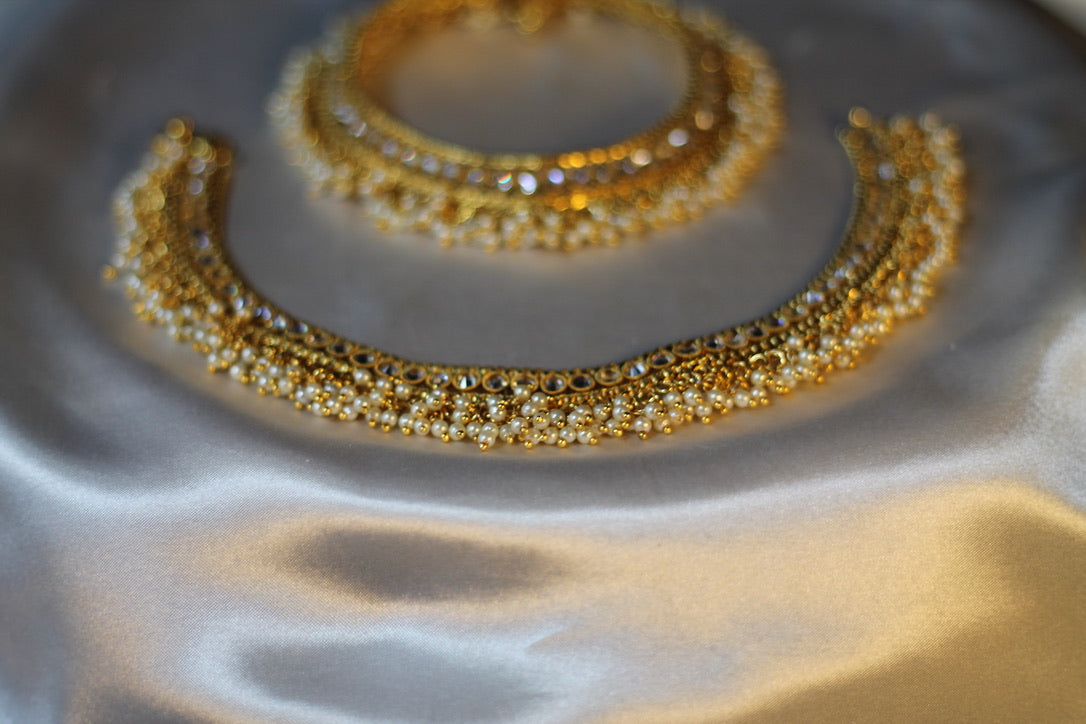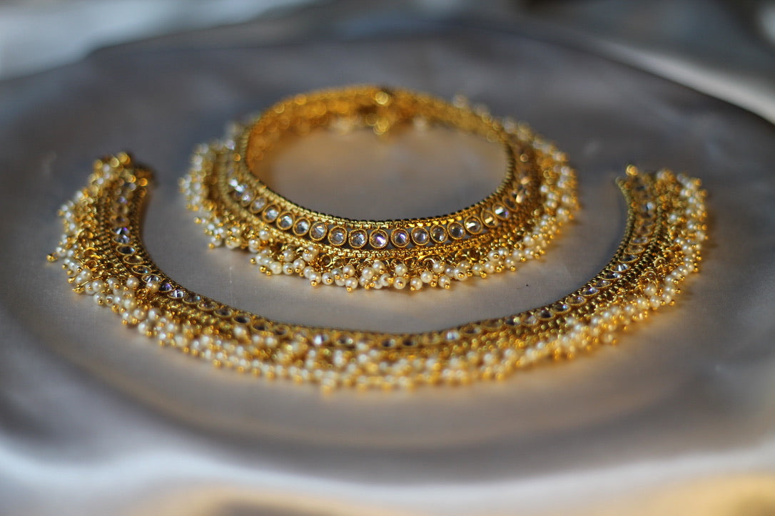 یہ مستند ہندوستانی پازیب پیچیدہ پولکی اور موتیوں کی تفصیل کے ساتھ مکمل ہیں۔ یہ خوبصورت برائیڈل پازیب دلہنوں کے لیے بہترین ہیں۔ مصنوعات کی زندگی بھر میں اضافہ کرنے کے لیے پیتل سے بنا ہے۔