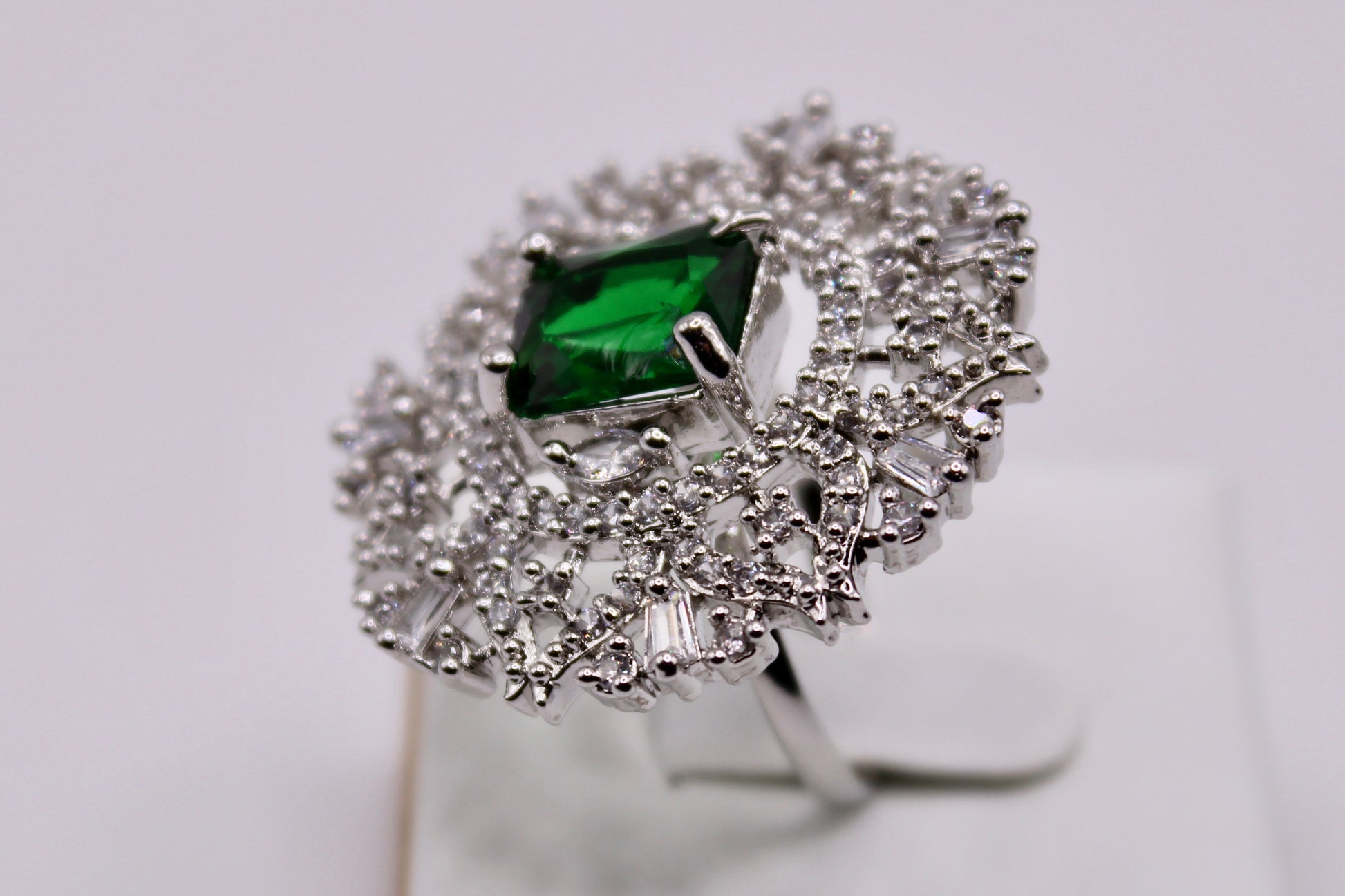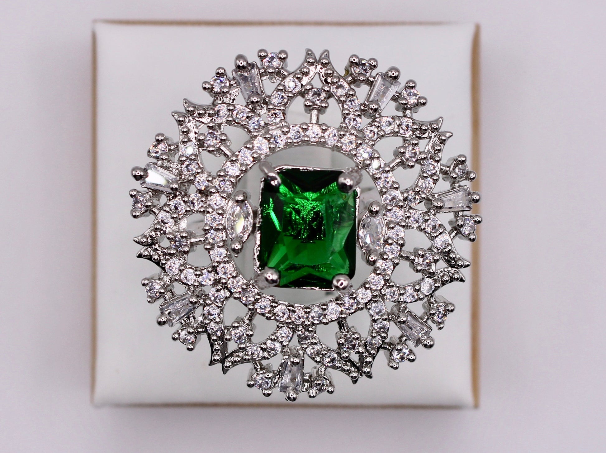 یہ پیچیدہ طریقے سے ڈیزائن کیا گیا جاڈاو کیوبک زرکونیا کاک ٹیل رنگ ایک قسم کا ہے۔ مصنوعات کی زندگی بھر میں اضافہ کرنے کے لیے پیتل سے بنا ہے۔