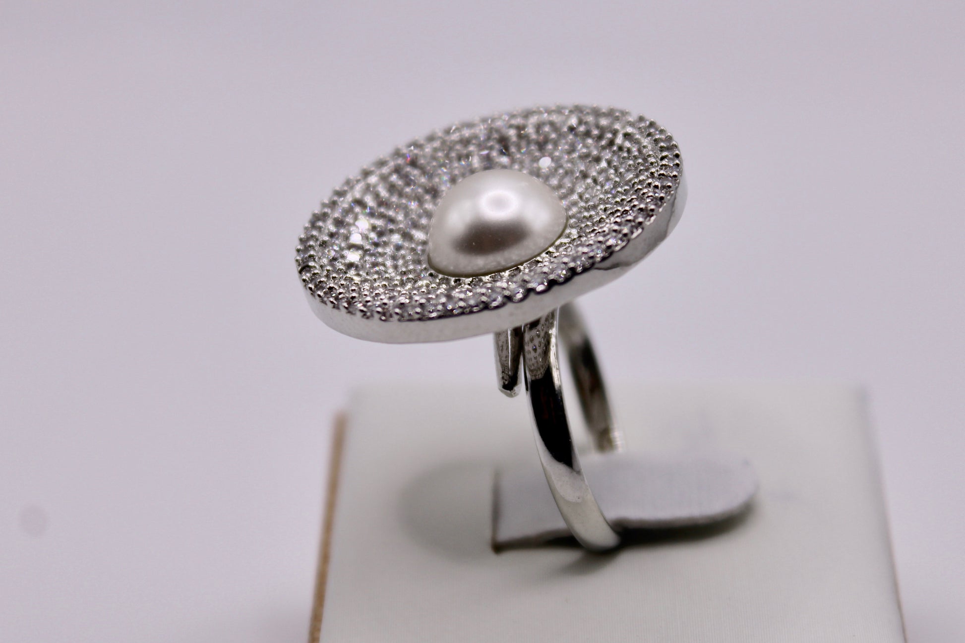 یہ شاندار کاک ٹیل رنگ چاندی اور سونے دونوں میں دستیاب ہے، یہ غلط موتی اور کیوبک زرکونیا کی تفصیلات کے ساتھ مکمل ہے۔