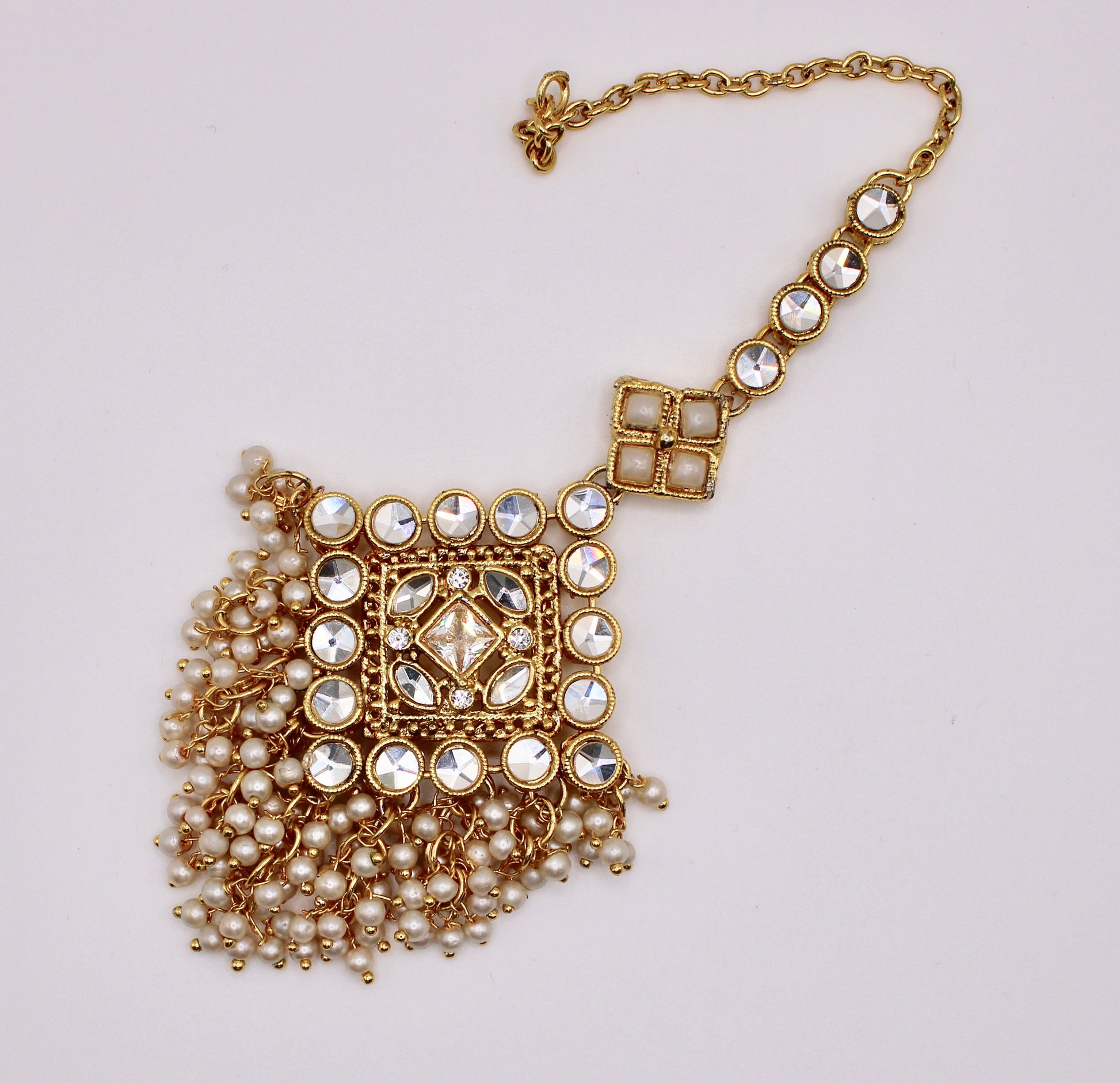 Sheesha Kundan and Faux Pearl Teeka - E970
