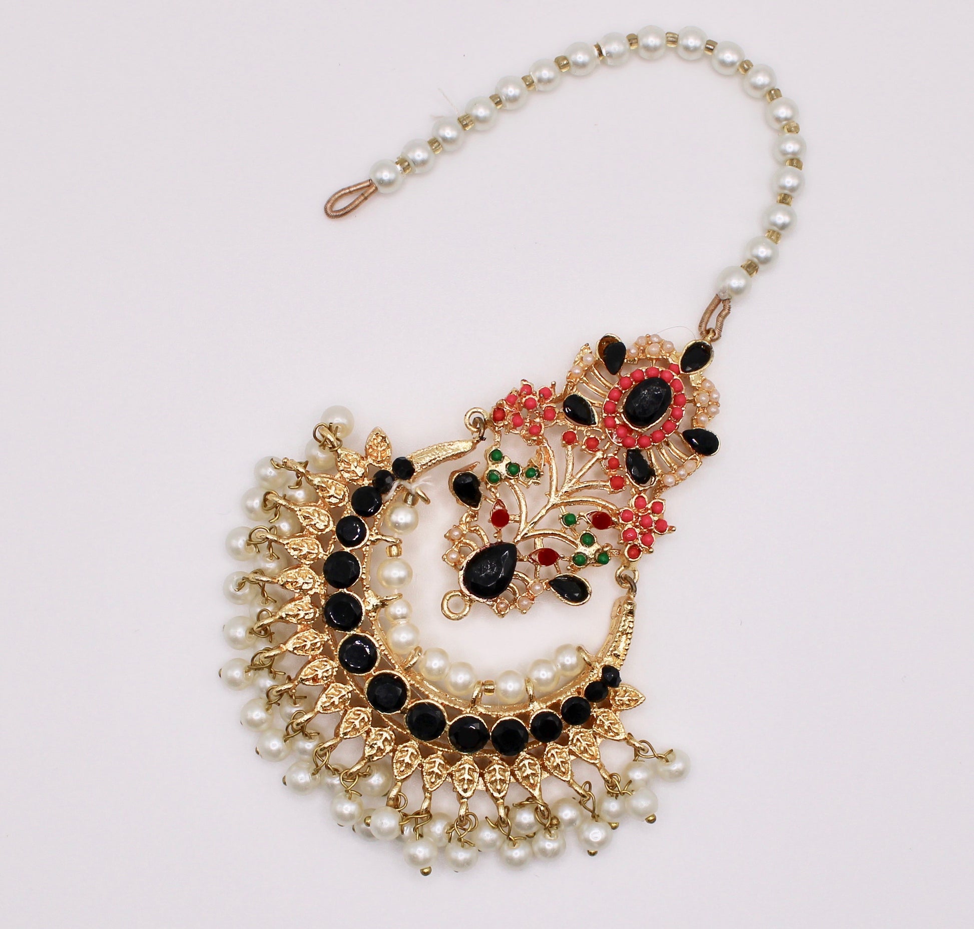 This beautiful teeka is complete with faux pearl and gem detailing, and is available in 4 variations.