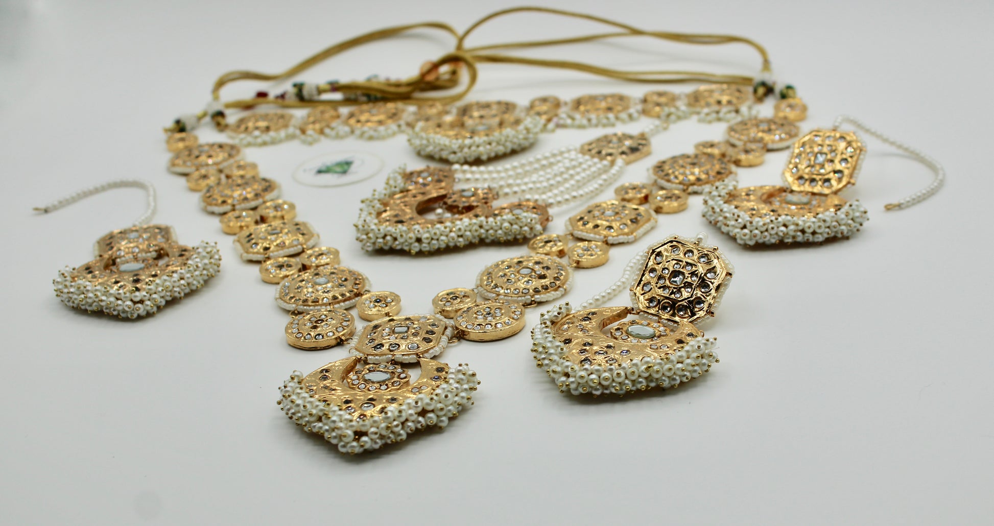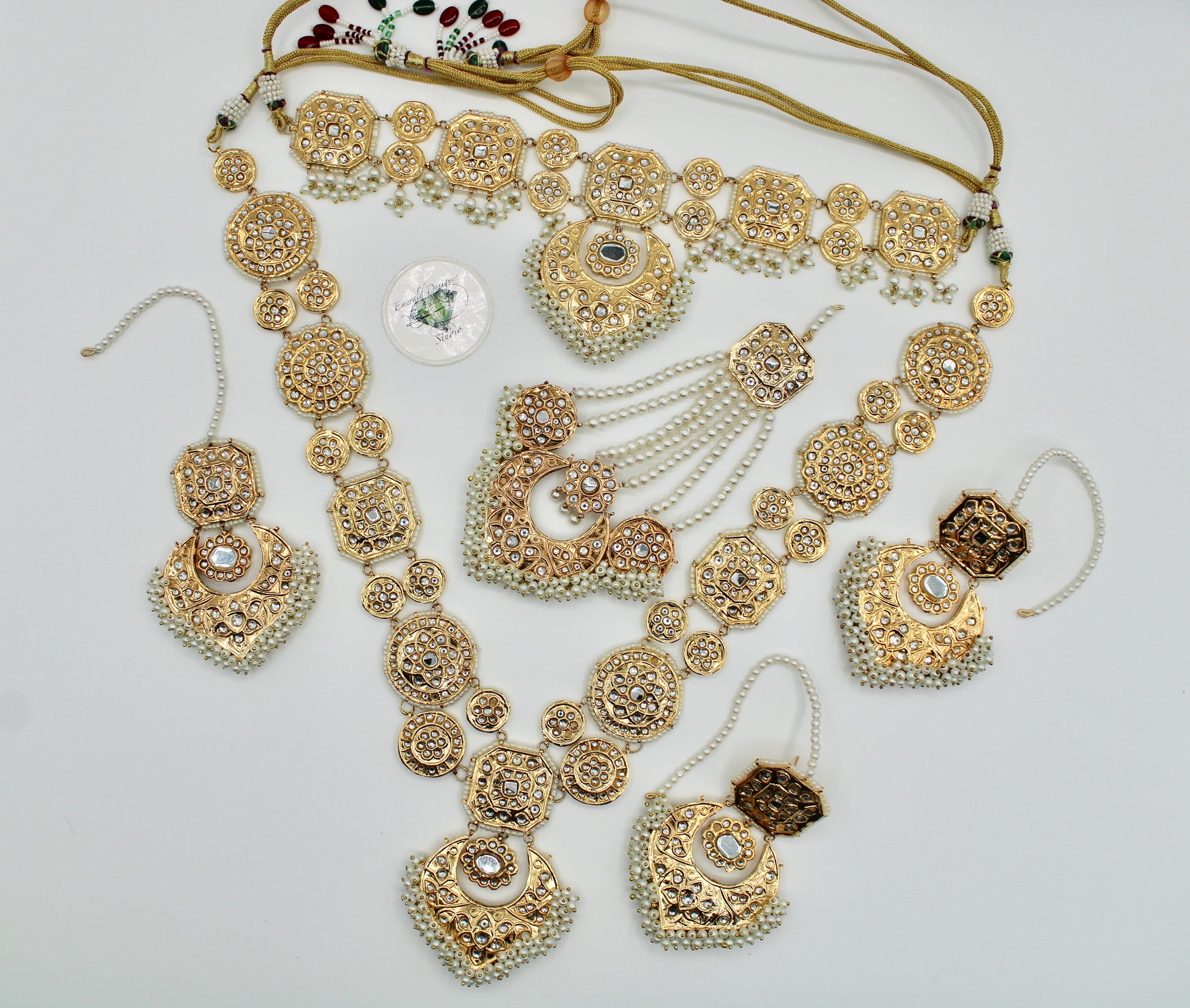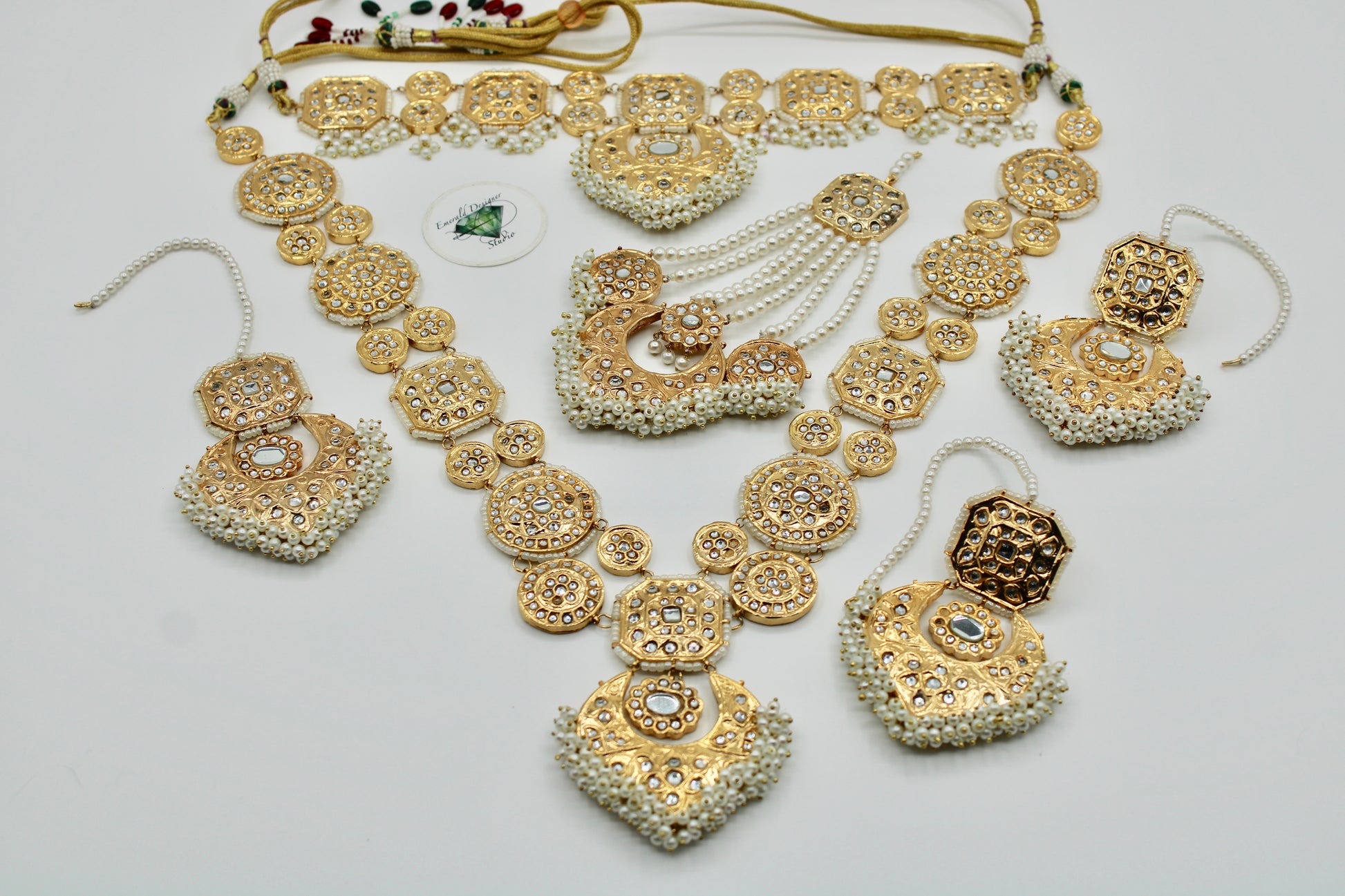 یہ ہاتھ سے بنایا گیا، مکمل طور پر اپنی مرضی کے مطابق، گولڈ چڑھایا پاکستانی تھپا کندن ہیوی برائیڈل سیٹ آپ کو شہنشاہوں اور مہارانیوں کے دور میں واپس لے جائے گا۔ آرٹ کا یہ ٹکڑا سوچ سمجھ کر منتخب کیا گیا ہے اور آپ کے لیے بنایا گیا ہے۔