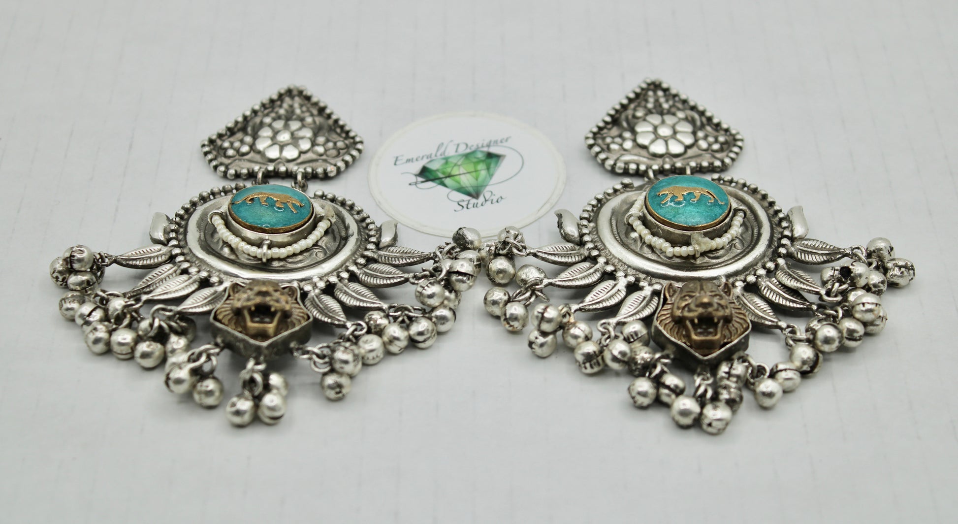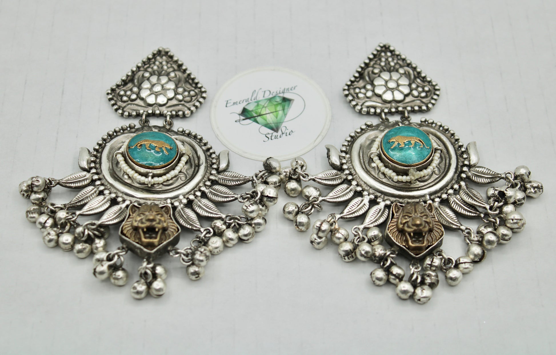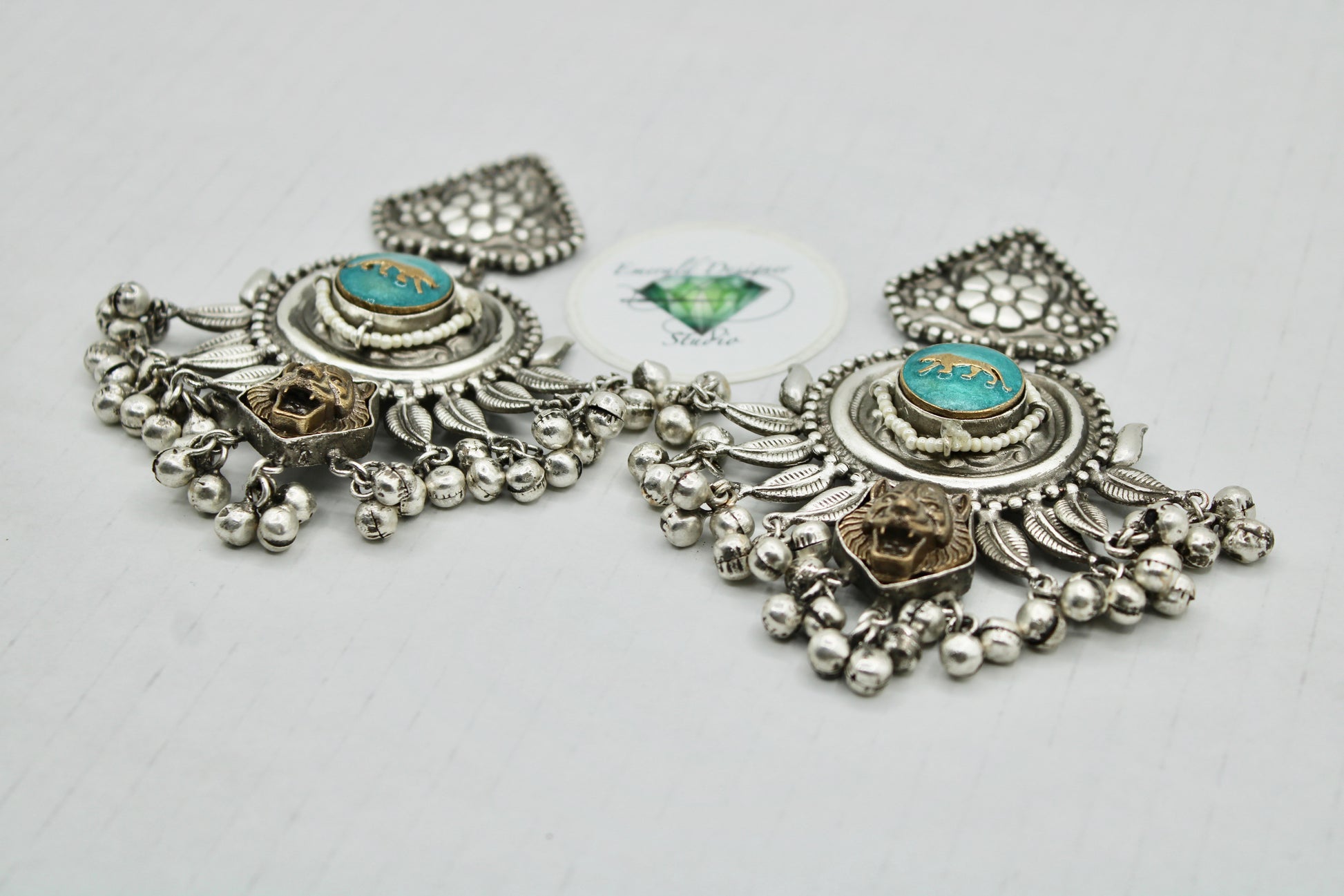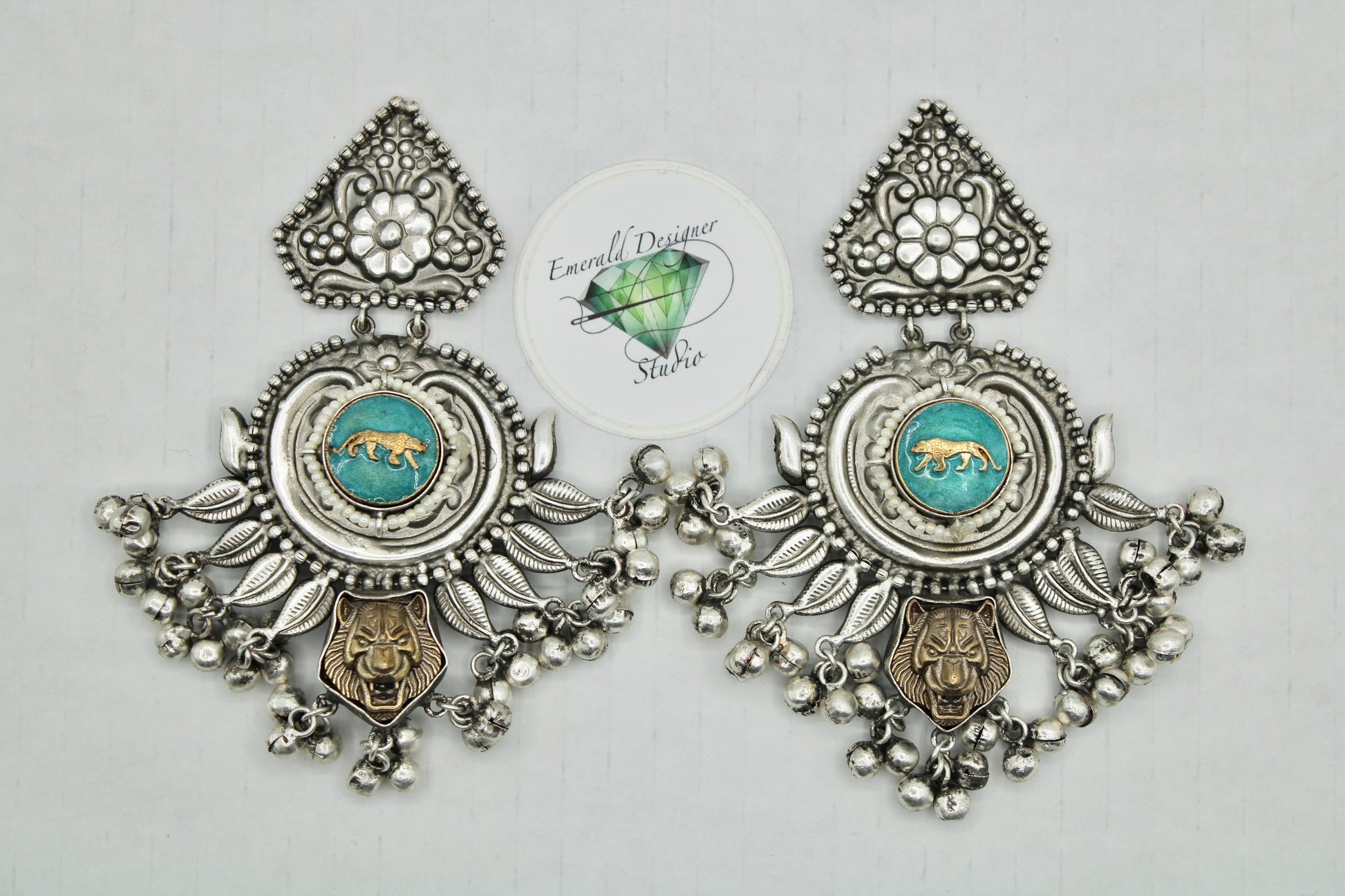 These unique two-toned oxidized earrings are complete with ghungroo detailings. Each earring has a lion design on them, and can be styled with both Western and Eastern outfits.