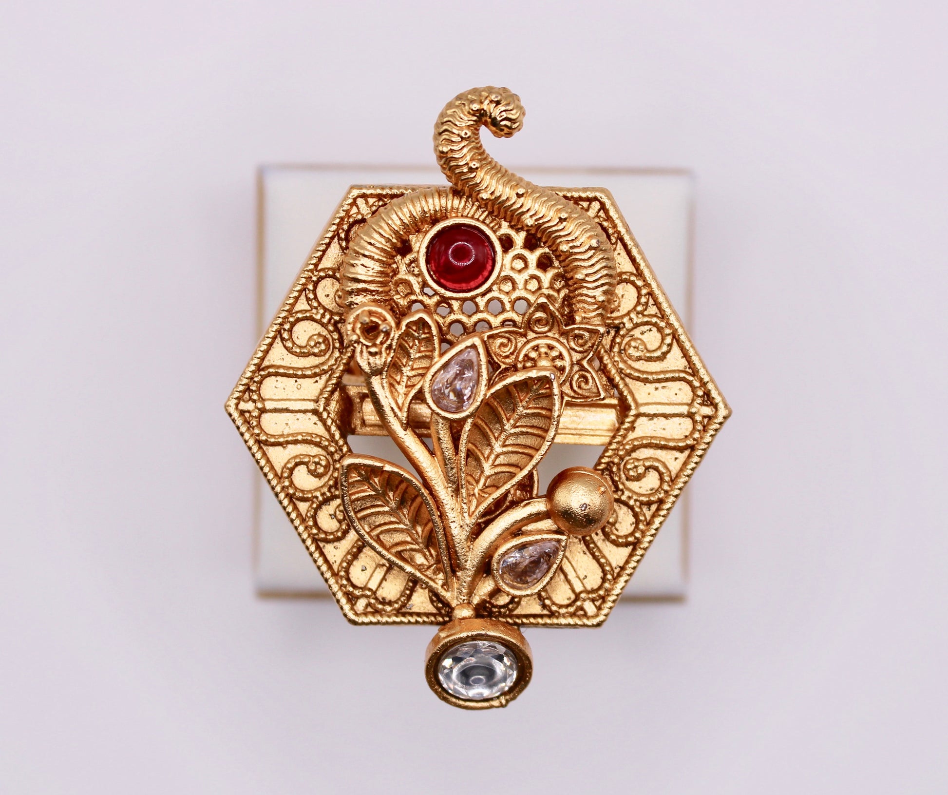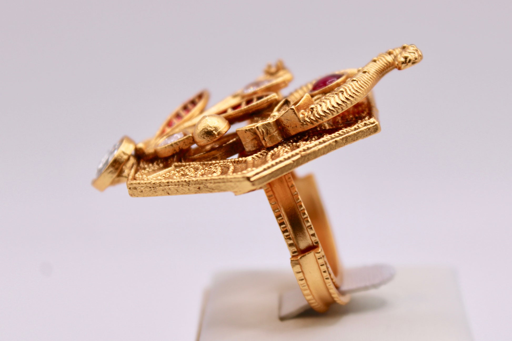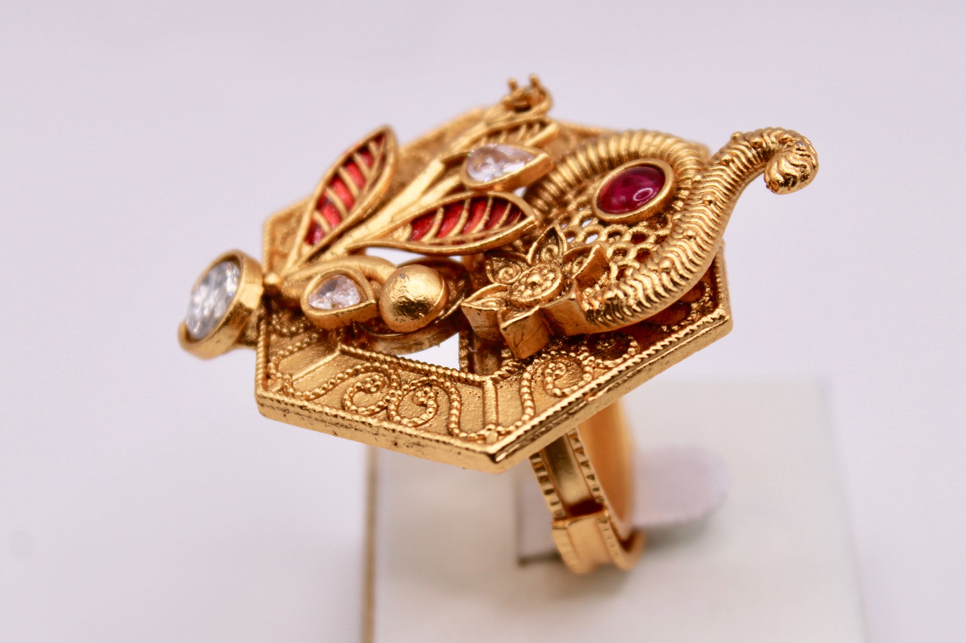 یہ ہاتھ سے پینٹ راجواڑی کی انگوٹھی بہترین بیان کا ٹکڑا ہے۔ دو رنگوں میں دستیاب ہے۔