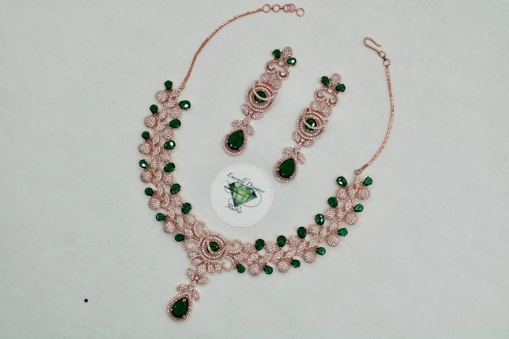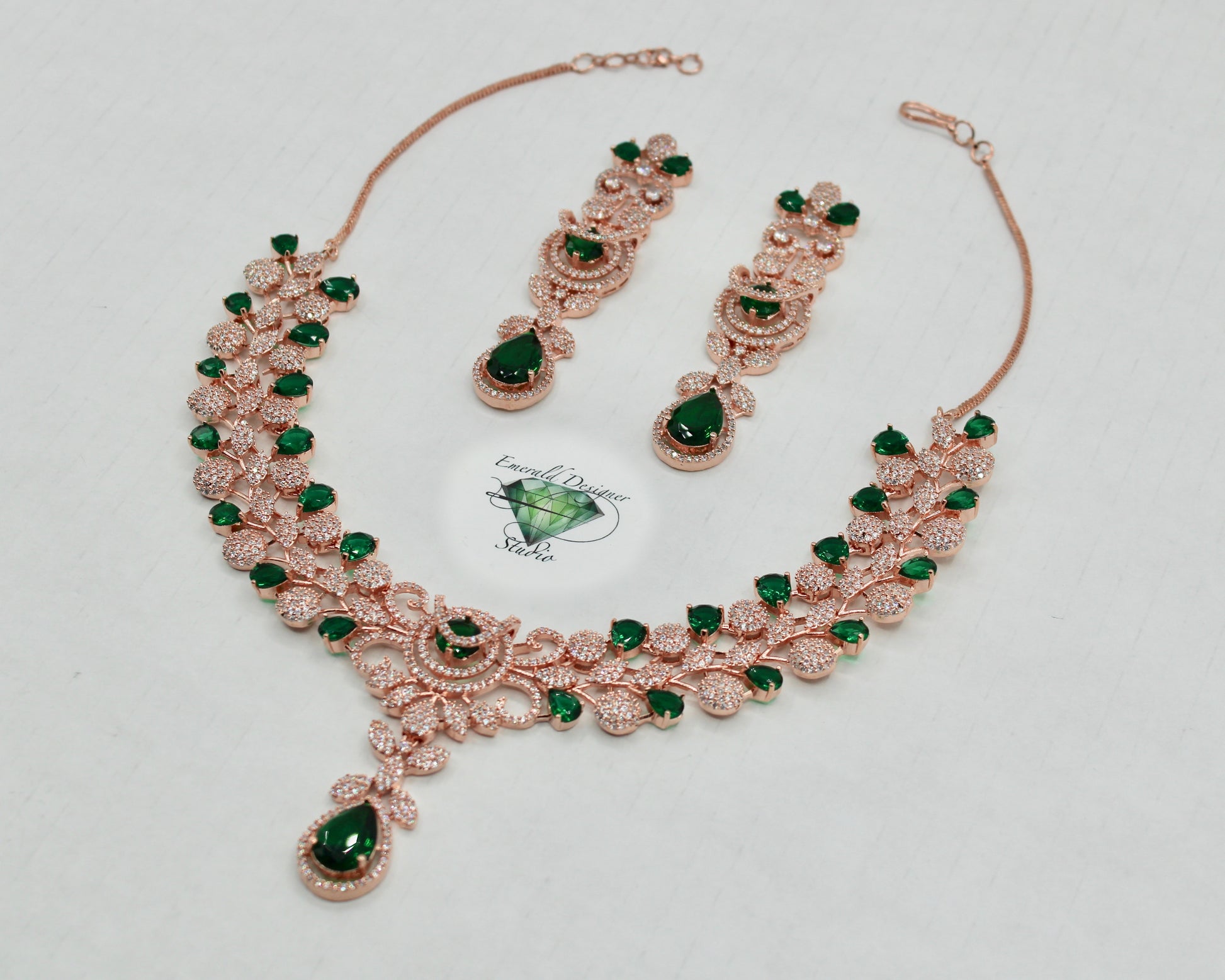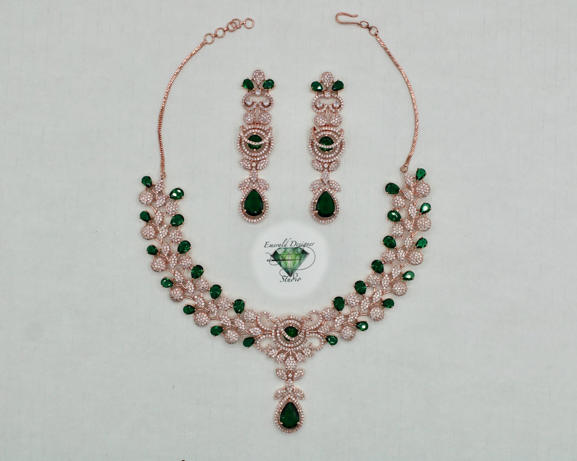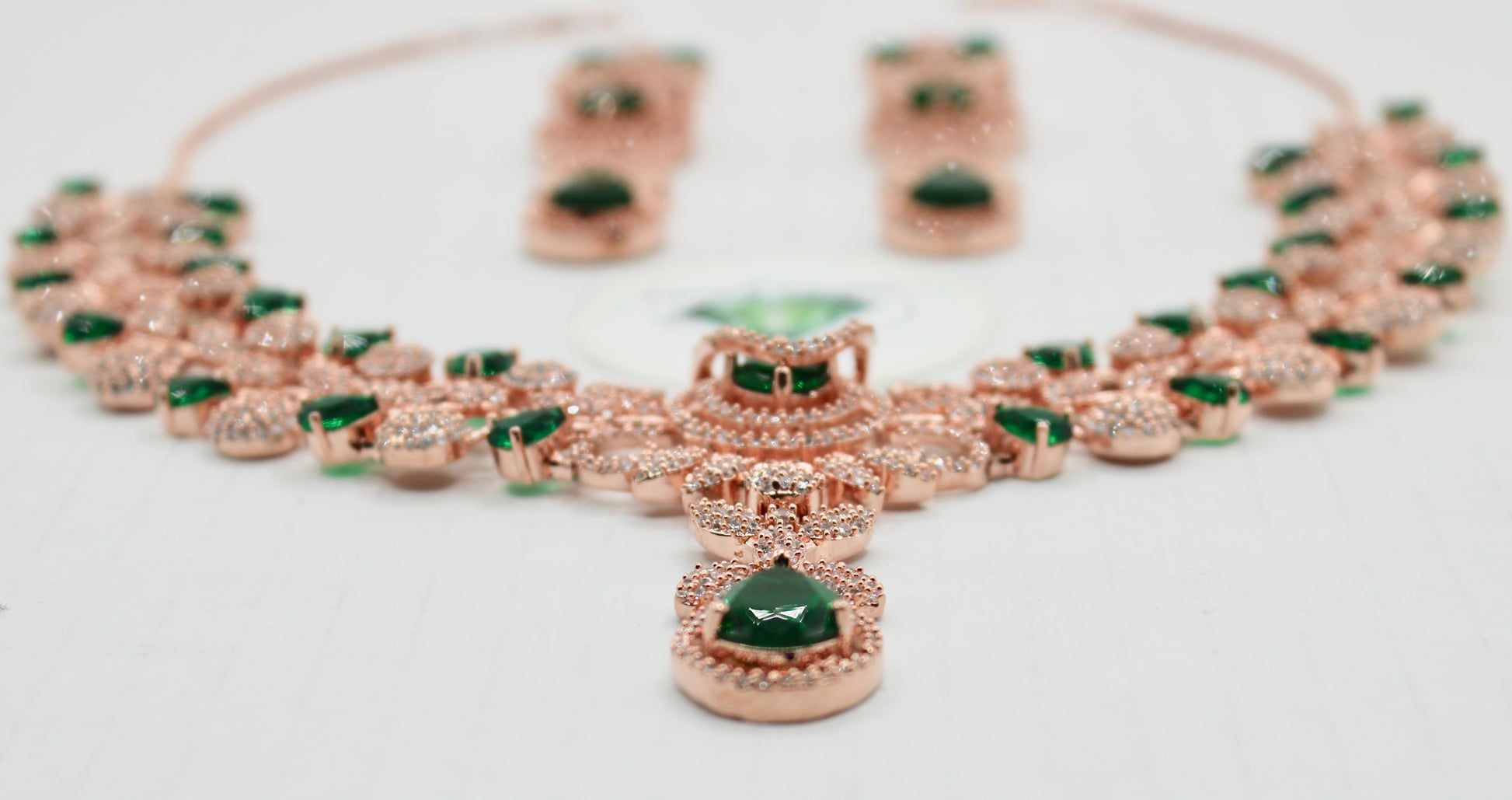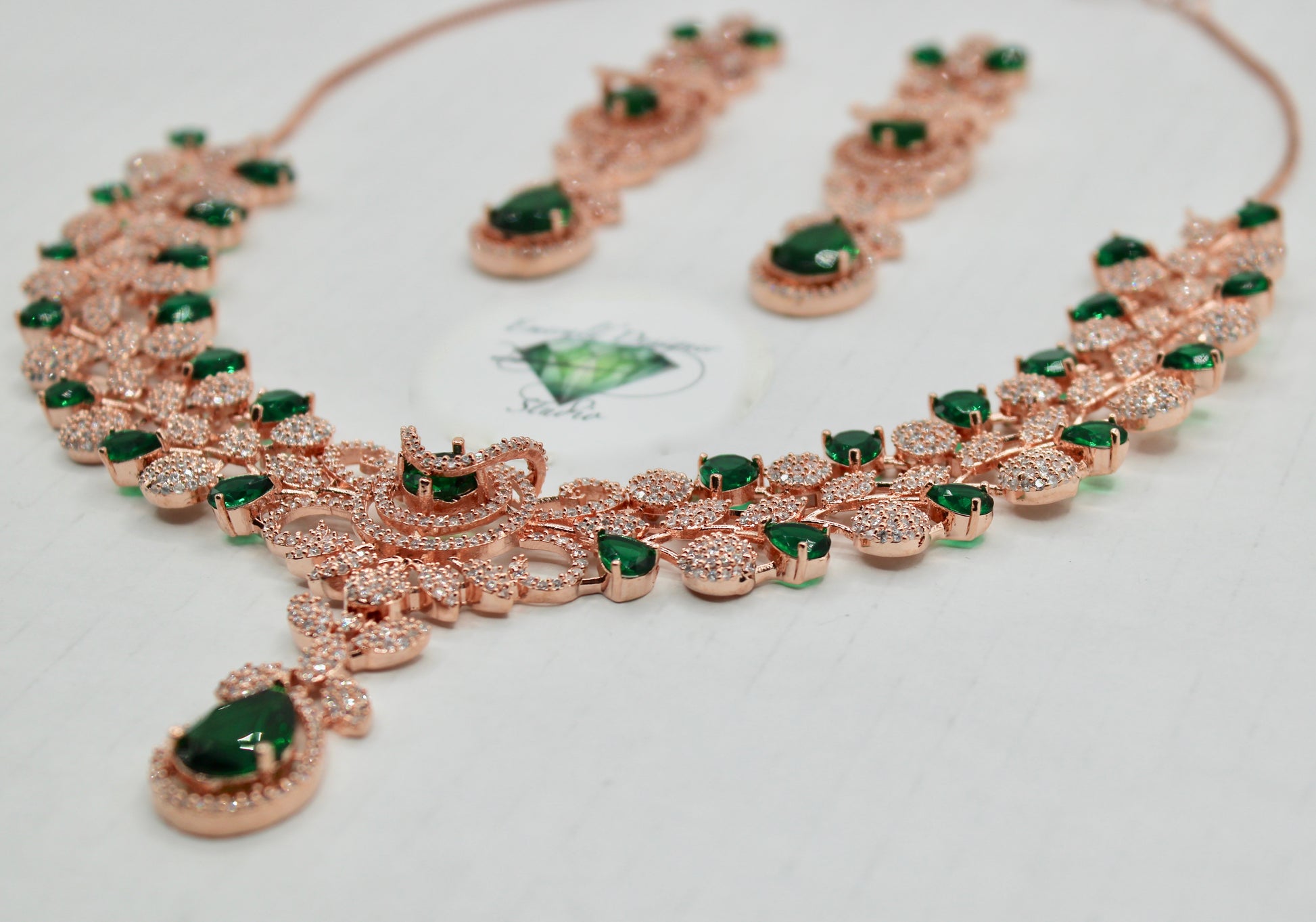 یہ حیرت انگیز ٹکڑا گلاب سونے کا ہے جس میں زمرد کے کرسٹل اور کیوبک زرکونیا کا مجموعہ ہے۔ سیٹ شاندار لمبی بالیاں کے ساتھ ختم ہو گیا ہے. مصنوعات کی زندگی بھر میں اضافہ کرنے کے لیے پیتل سے بنا ہے۔